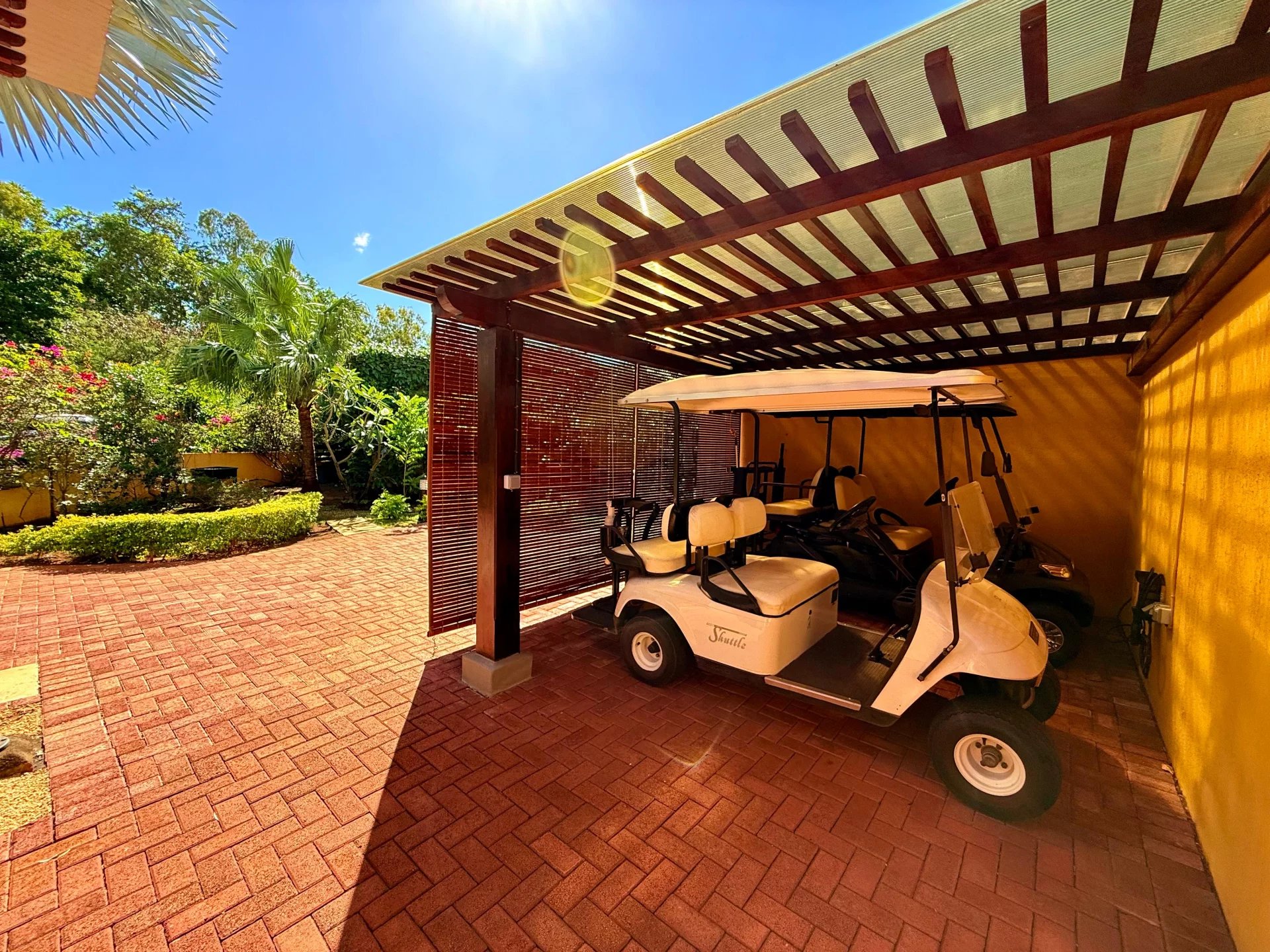 Parmi les atouts supplémentaires : un garage double à porte automatique, deux grandes citernes d’eau, un générateur autonome pour 4 jours d’électricité, ainsi que deux voiturettes de golf incluses pour se déplacer facilement dans le domaine.
