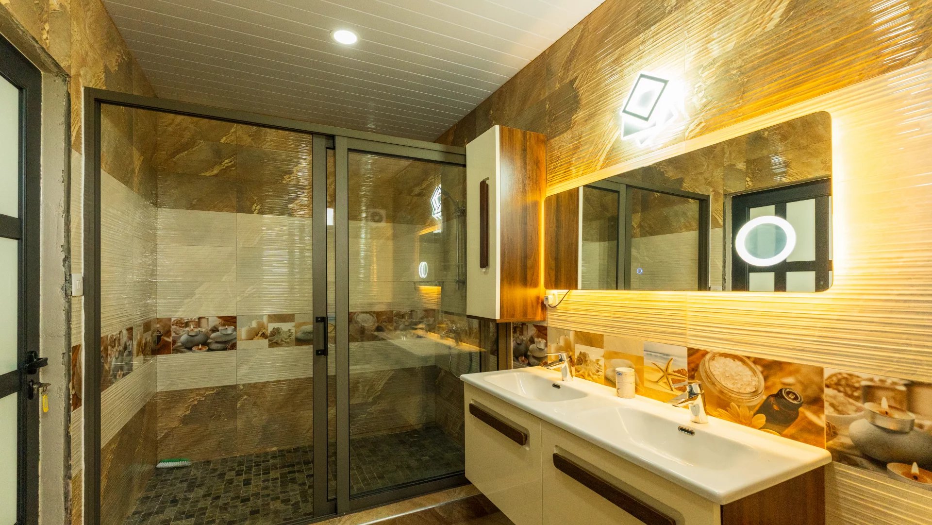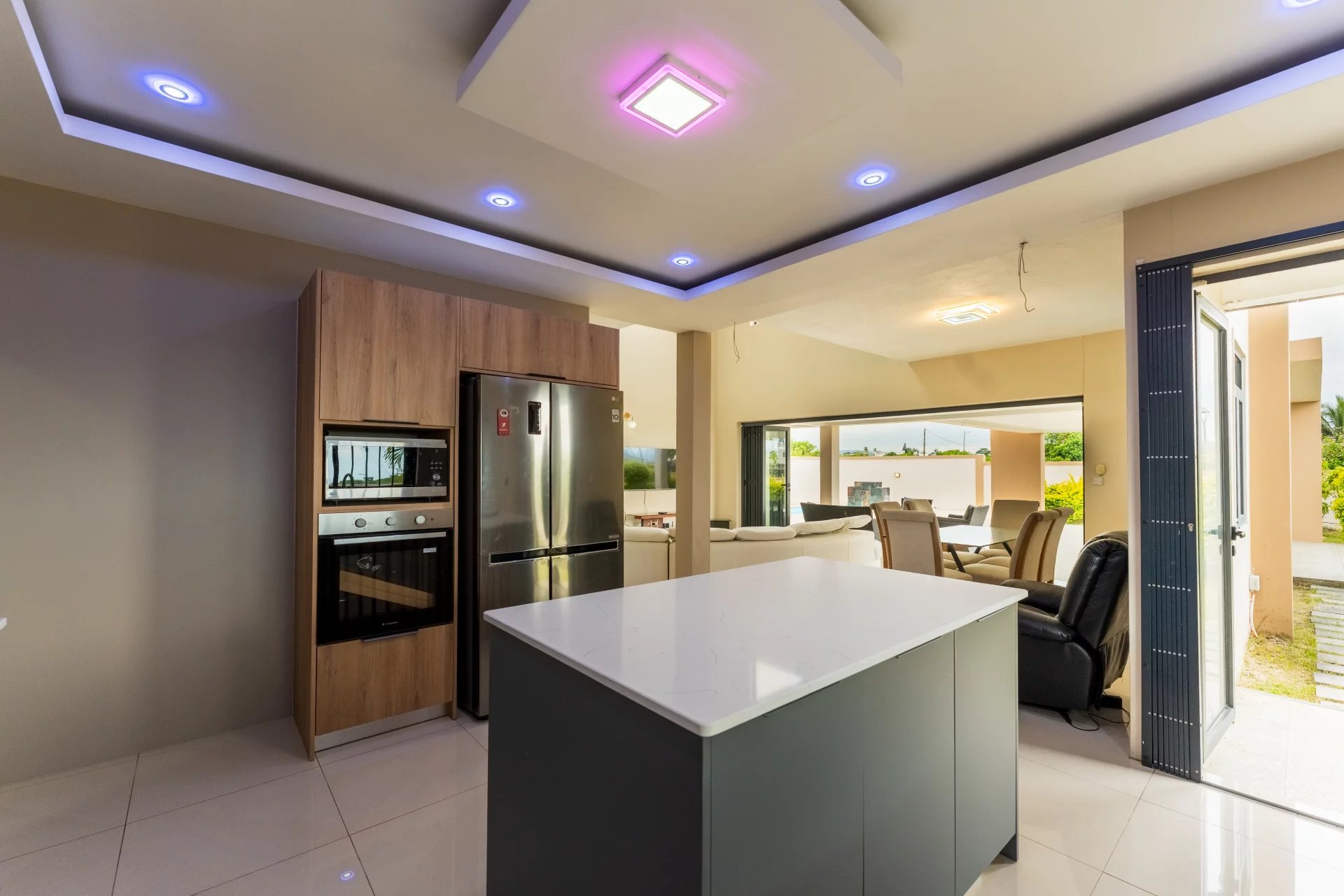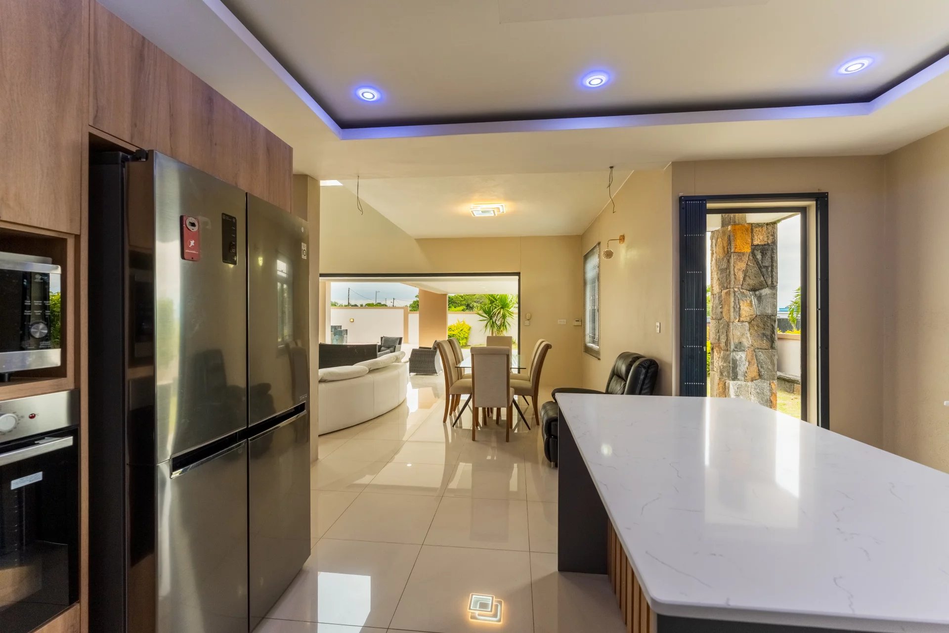 La cuisine principale, entièrement équipée, neuve et moderne, est accompagnée d’une cuisine secondaire attenante, pensée pour plus de fonctionnalité au quotidien.