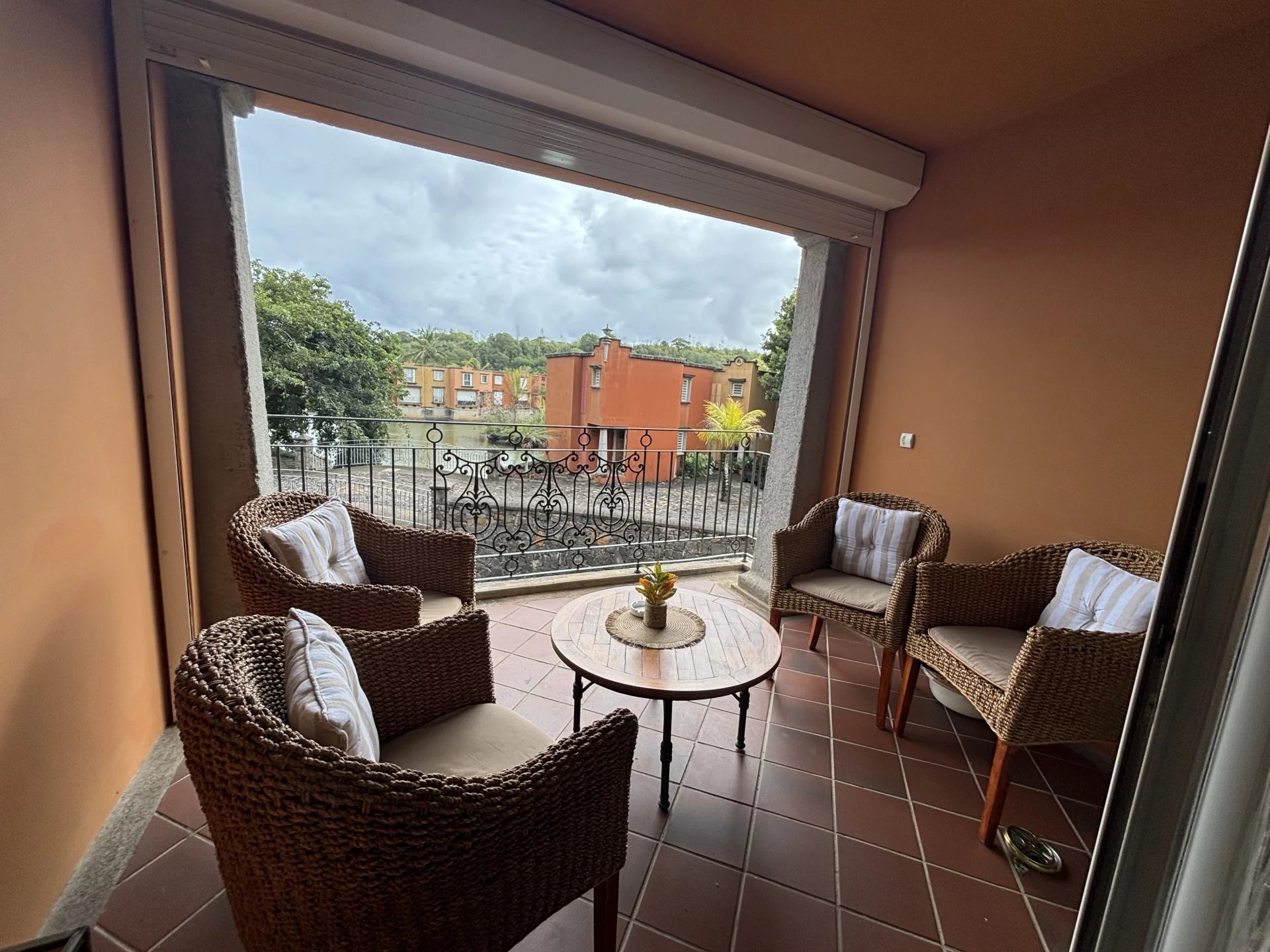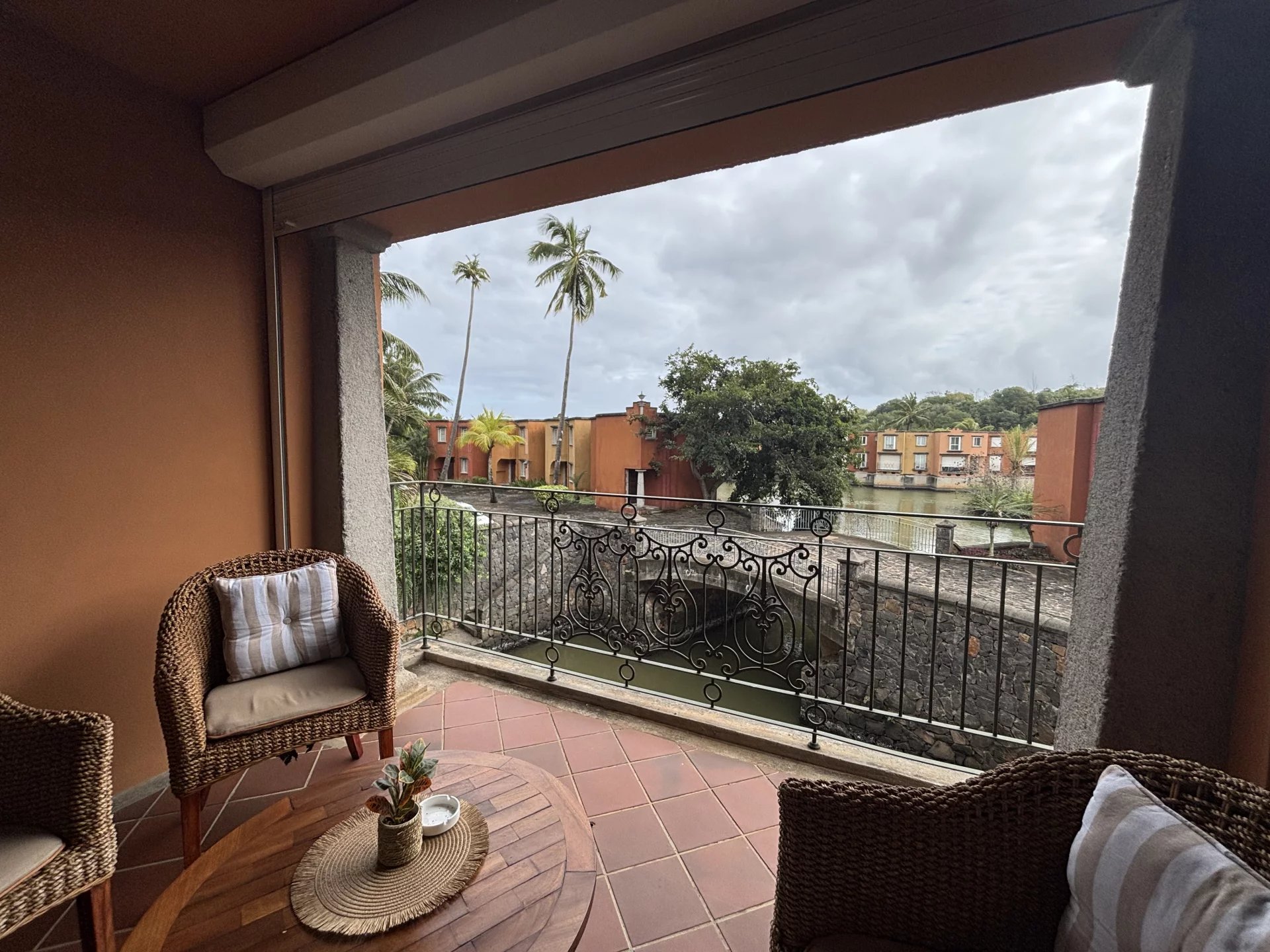 It features two air-conditioned en-suite bedrooms upstairs, as well as a bright air-conditioned living/dining area on the ground floor, a fully equipped kitchen, and a private terrace or balcony offering a beautiful unobstructed view of the river.