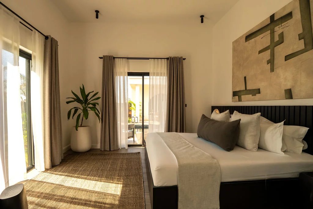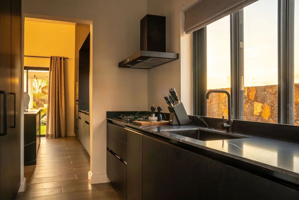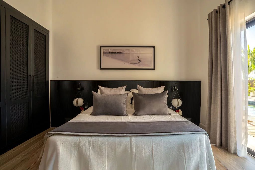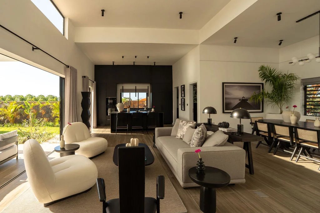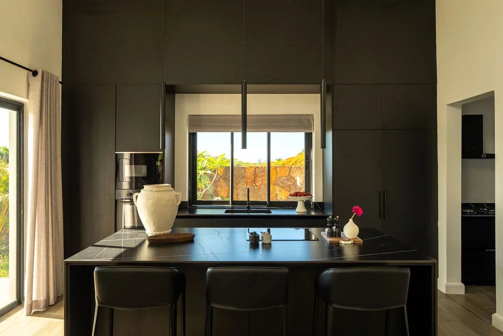 Located within the prestigious Royal Park gated estate, this brand-new architect-designed villa, completed in 2025, stands out for its contemporary design, generous proportions, and high-end finishes. Fully furnished and equipped, it has been decorated by luxury interior designers with carefully selected Italian furniture. Offering approximately 400 square meters of living space on a beautifully landscaped 1,100 square meter plot, the villa features four en-suite bedrooms (or three bedrooms plus a convertible office), including an impressive master suite with a bathtub, double vanity, and a spacious walk-in closet. The bright living areas include two lounges, two dining rooms, and two kitchens, with a modern open-plan kitchen complemented by a back kitchen, laundry room, and patio. Outdoors, the garden features a 10-meter by 4-meter stone swimming pool, a kiosk, and an elegant terrace, creating the perfect setting for entertaining. Pool and garden maintenance are included. Available for long-term rental at Rs 250,000 per month, this exceptional property offers a rare opportunity to enjoy luxury living in Mauritius.