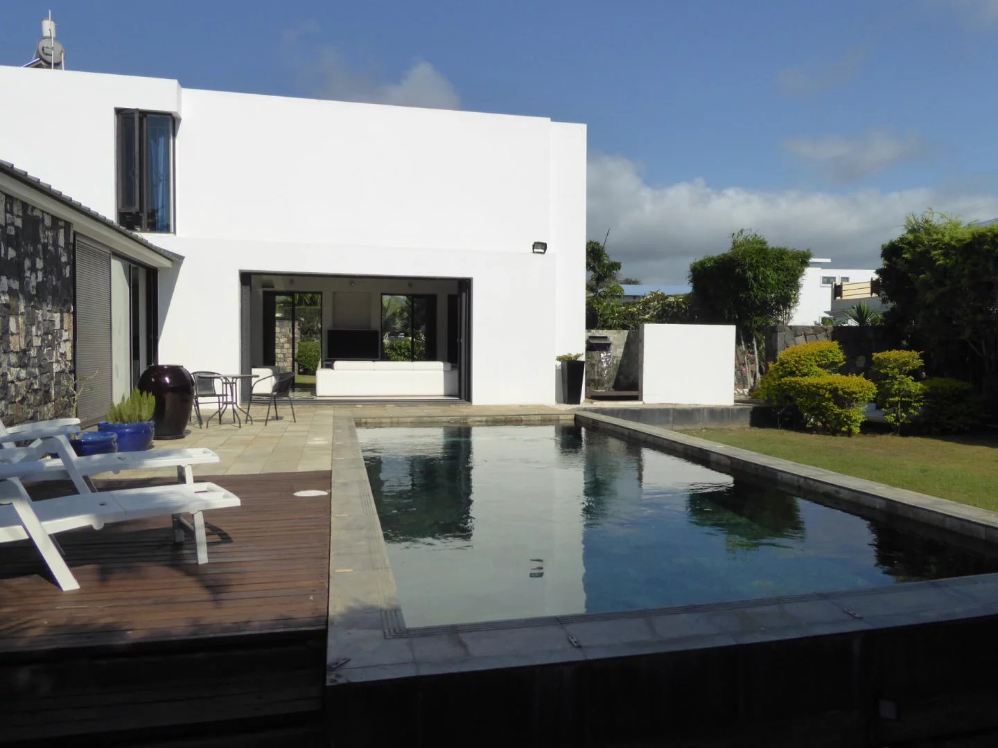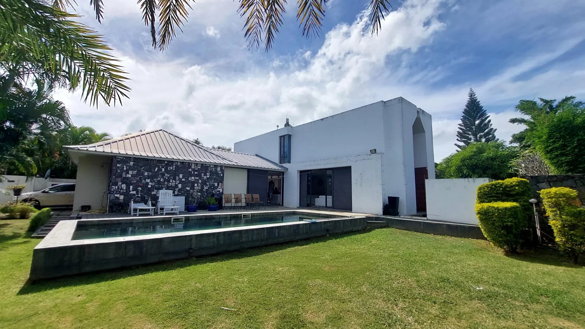 The villa also features a double garage. The landscaped garden is completely enclosed, offering perfect privacy to enjoy convivial moments in the fresh air. Pets are welcome. Ideally located, the villa is just 1 km from Balaclava beach, and 5 minutes from several 5-star hotels.
