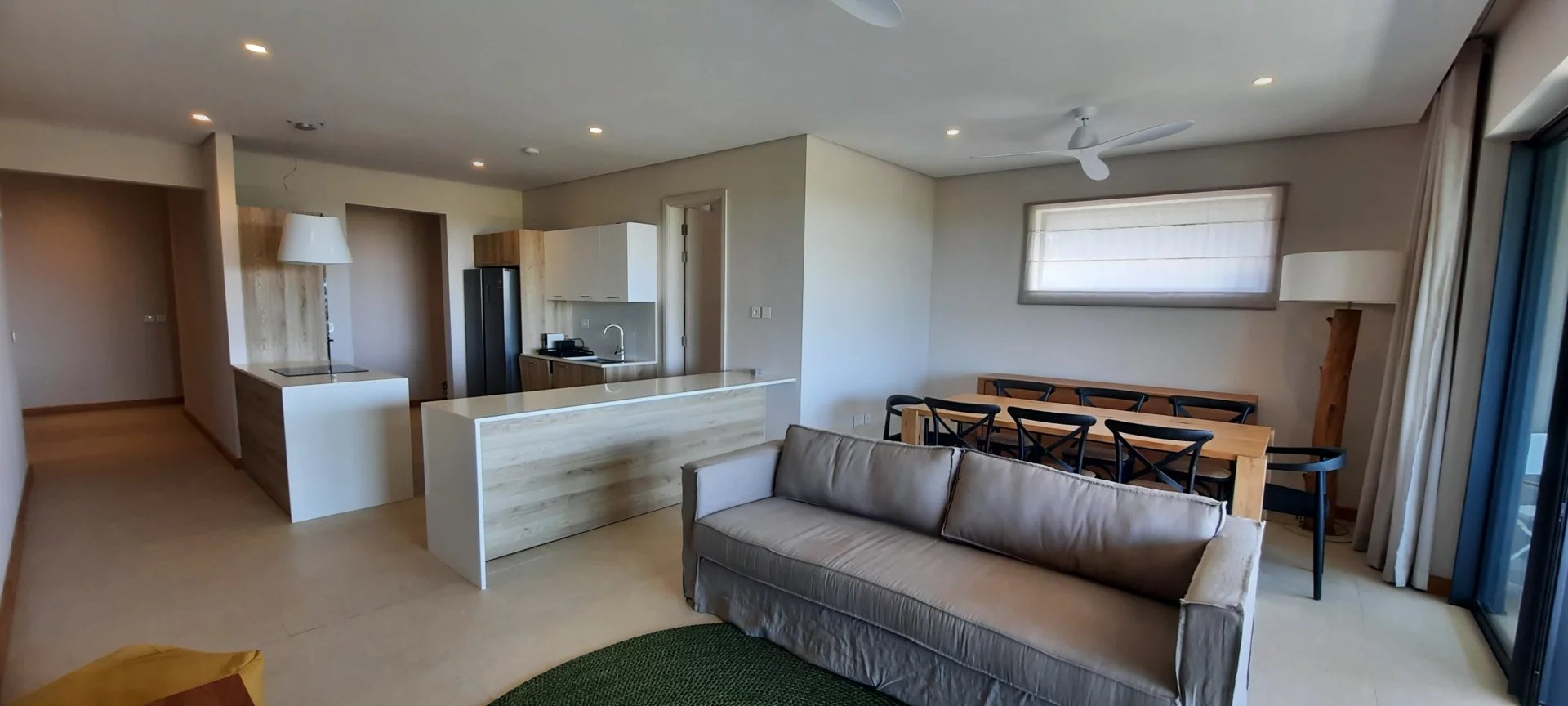 HILLSIDE - This 210m² brand new apartment is located in an upscale and fully secured complex with a beautiful tropical garden, just 5 minutes from schools and shops. The apartment, which is on the 1st floor, offers a superb view of the sugarcane fields, the city, and the ocean in the background. It comprises an entrance hall, a tastefully furnished and luminous living area with a living room and dining area, an open-plan kitchen, a laundry room, and a guest toilet. The terrace serves as a second living space with a dining table and cozy corner, ideal for entertaining. There are 4 bedrooms with en-suite bathrooms, all fully air-conditioned. The main bedroom opens onto the terrace and features a large dressing room and an amazing bathroom. The apartment also includes an exterior storage area and a wine cellar.