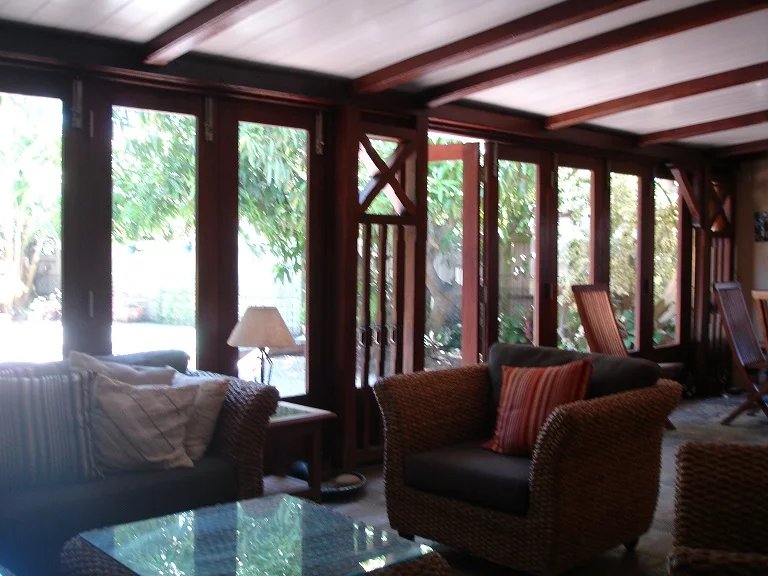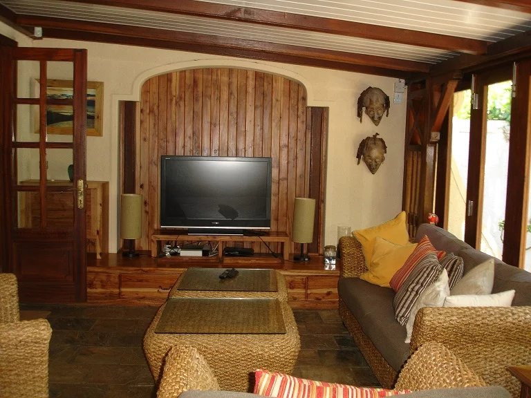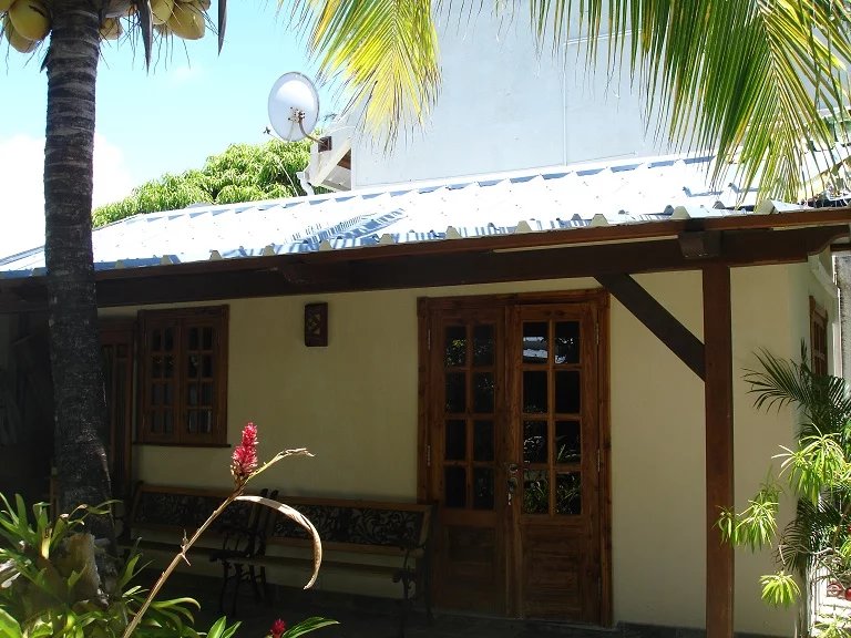 This small house, furnished with wood finishes, offers an air-conditioned bedroom with dressing room, a second bedroom in the mezzanine, a kitchen, bathroom and living area opening onto the pool and garden.