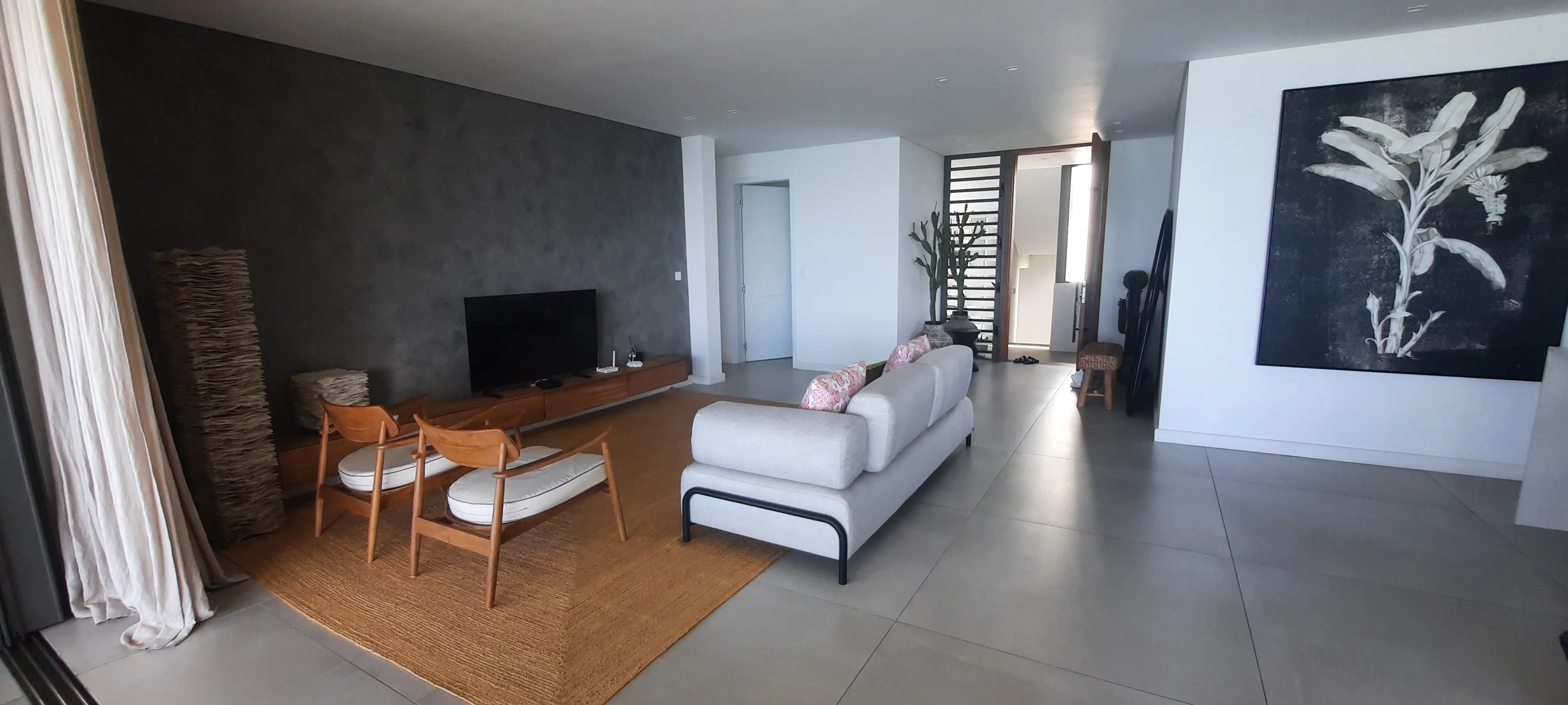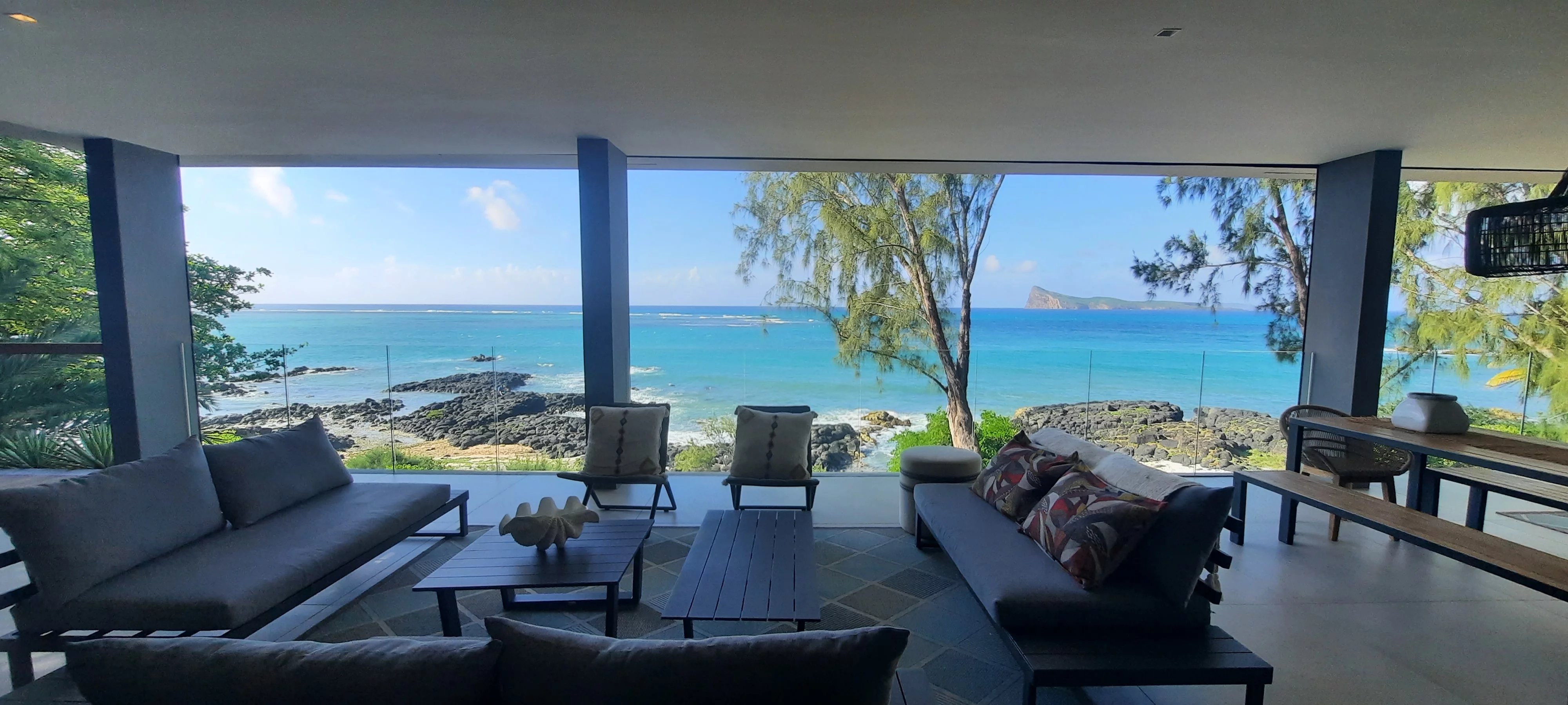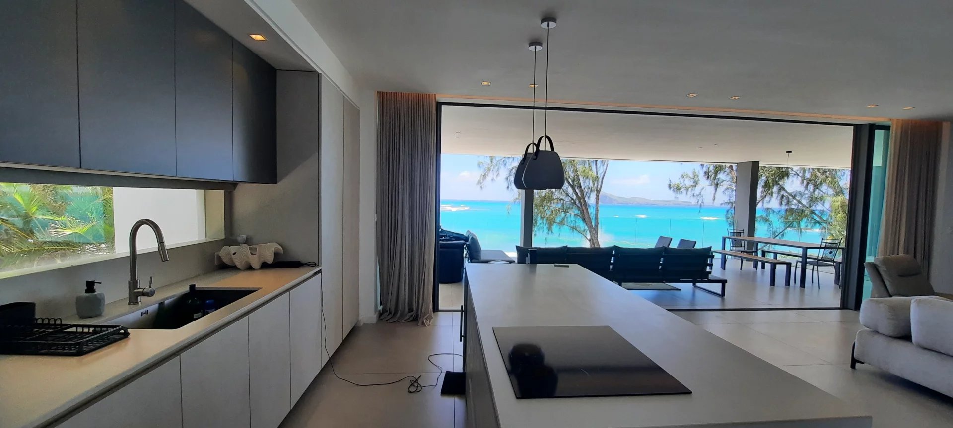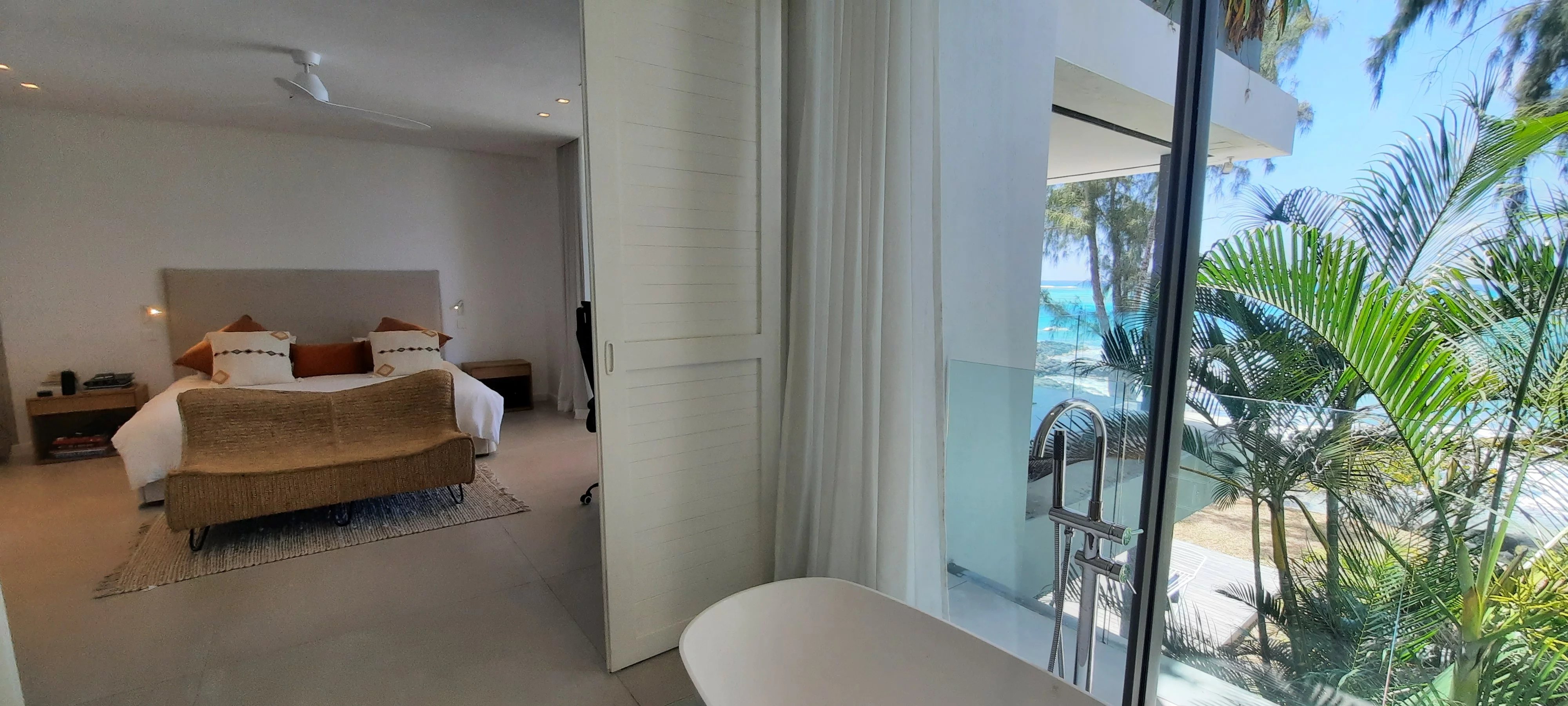 Located on the BEACHFRONT, this amazing 290m² apartment overlooks the ocean with its breathtaking view of the islands to the north. Situated in a very private, quiet, and secure block of 3 apartments in the upscale area of Cap Malheureux. On the 1st floor, the apartment is tastefully furnished and very luminous, offering a spacious living area that includes an entrance hall, a living and dining room, an open-plan kitchen, a back kitchen/laundry room, and a guest toilet. The main attraction of this property is the magnificent terrace with a breathtaking view that serves as a second living area, complete with a living and dining table and a private splash pool. The 3 bedrooms, each with en-suite bathrooms and dressing areas, are fully air-conditioned. The master bedroom opens onto the terrace, facing the view of the sea and the beach below. The apartment also offers a covered garage and storage space.
