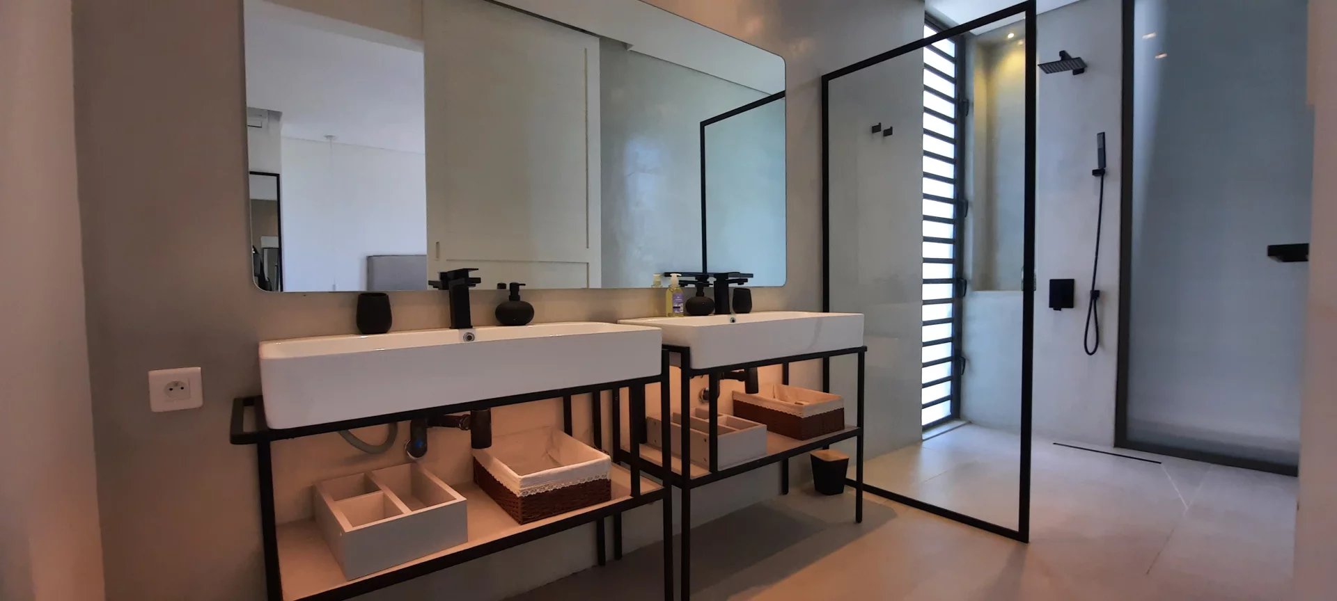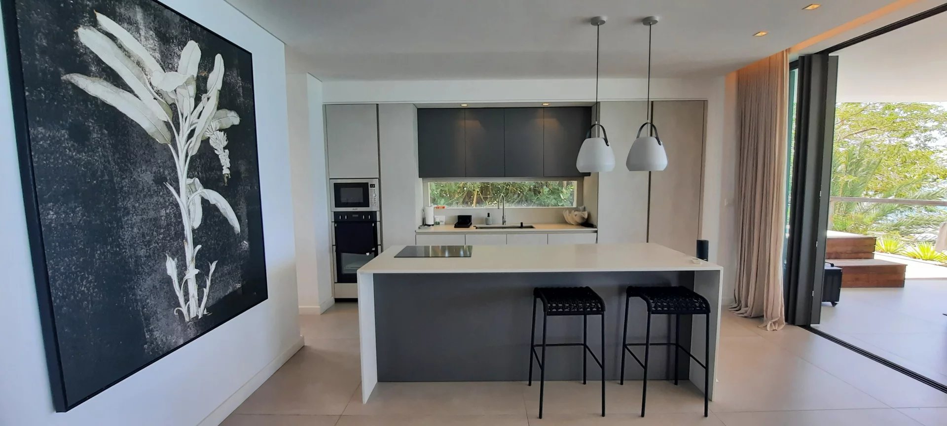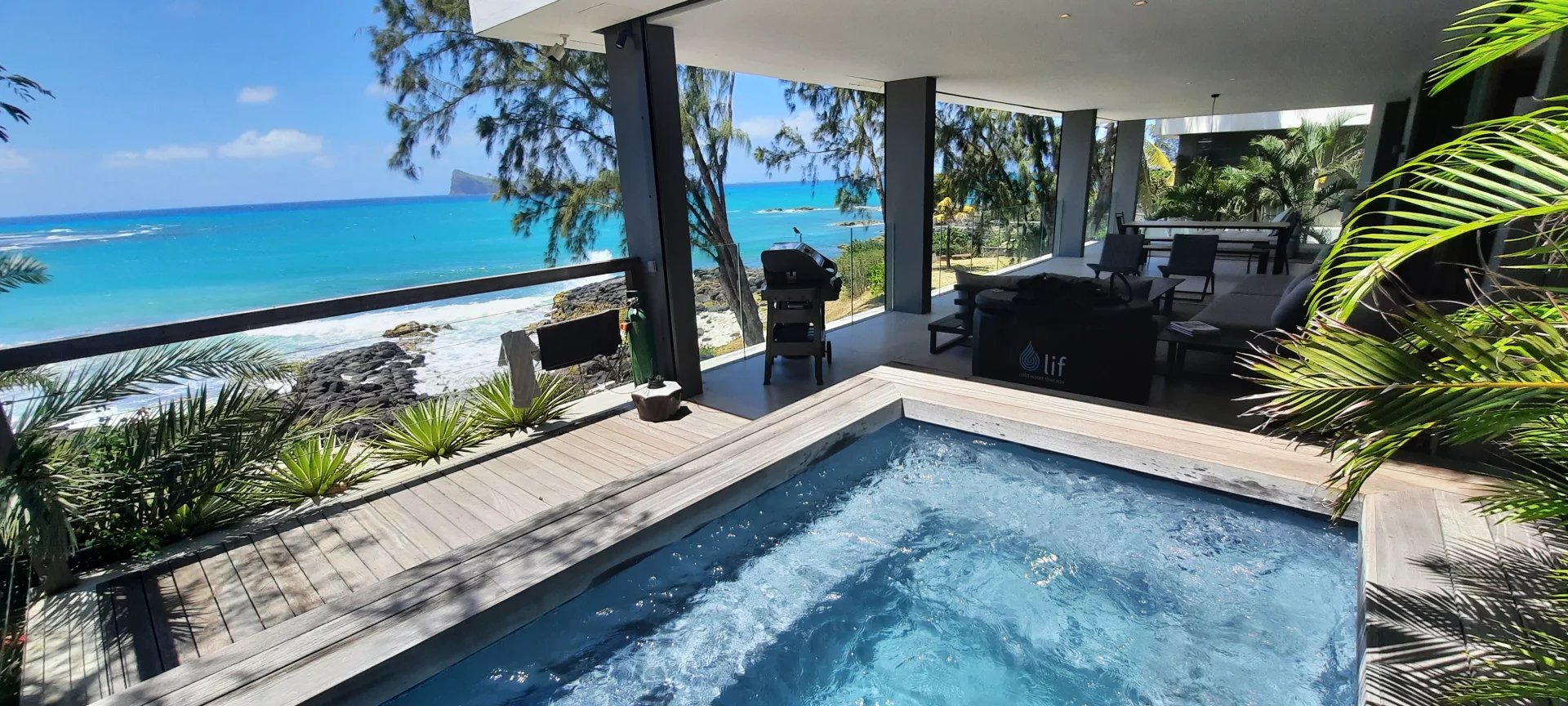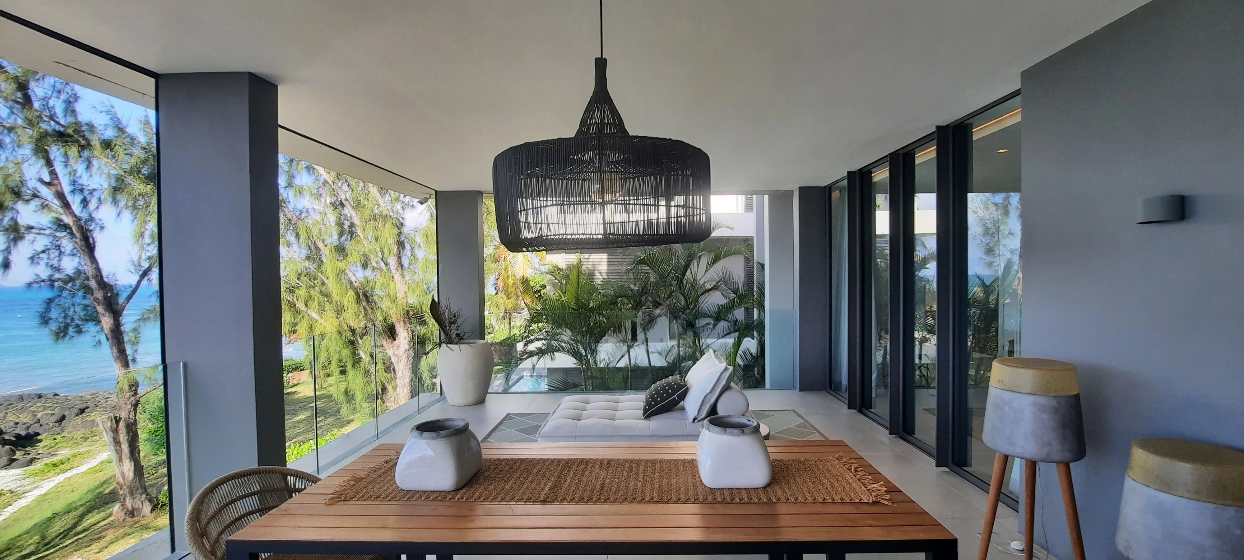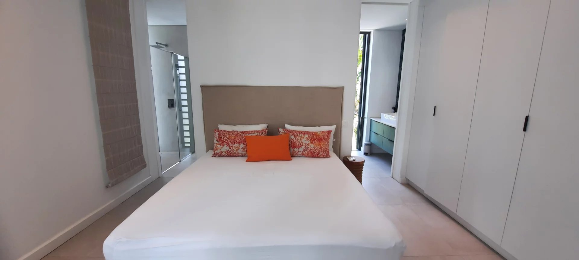 Located on the BEACHFRONT, this amazing 290m² apartment overlooks the ocean with its breathtaking view of the islands to the north. Situated in a very private, quiet, and secure block of 3 apartments in the upscale area of Cap Malheureux. On the 1st floor, the apartment is tastefully furnished and very luminous, offering a spacious living area that includes an entrance hall, a living and dining room, an open-plan kitchen, a back kitchen/laundry room, and a guest toilet. The main attraction of this property is the magnificent terrace with a breathtaking view that serves as a second living area, complete with a living and dining table and a private splash pool. The 3 bedrooms, each with en-suite bathrooms and dressing areas, are fully air-conditioned. The master bedroom opens onto the terrace, facing the view of the sea and the beach below. The apartment also offers a covered garage and storage space.