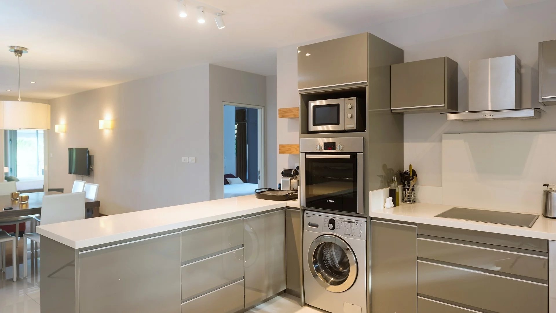 This modern 158 m² apartment is located in a secure complex with direct access to the most beautiful beach of Pointe d'Esny, not far from the amenities.
