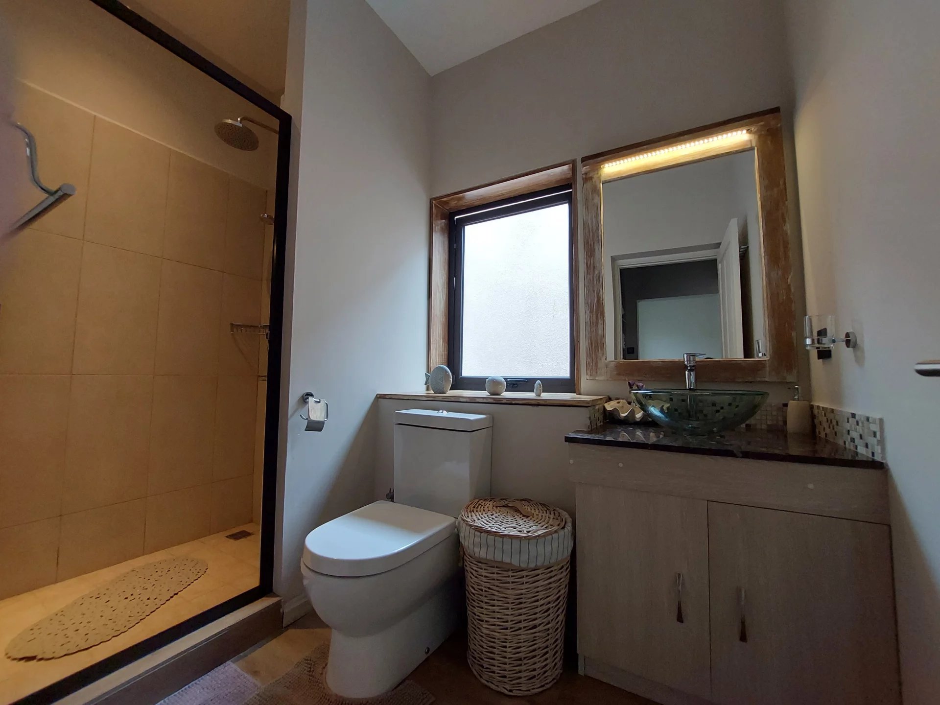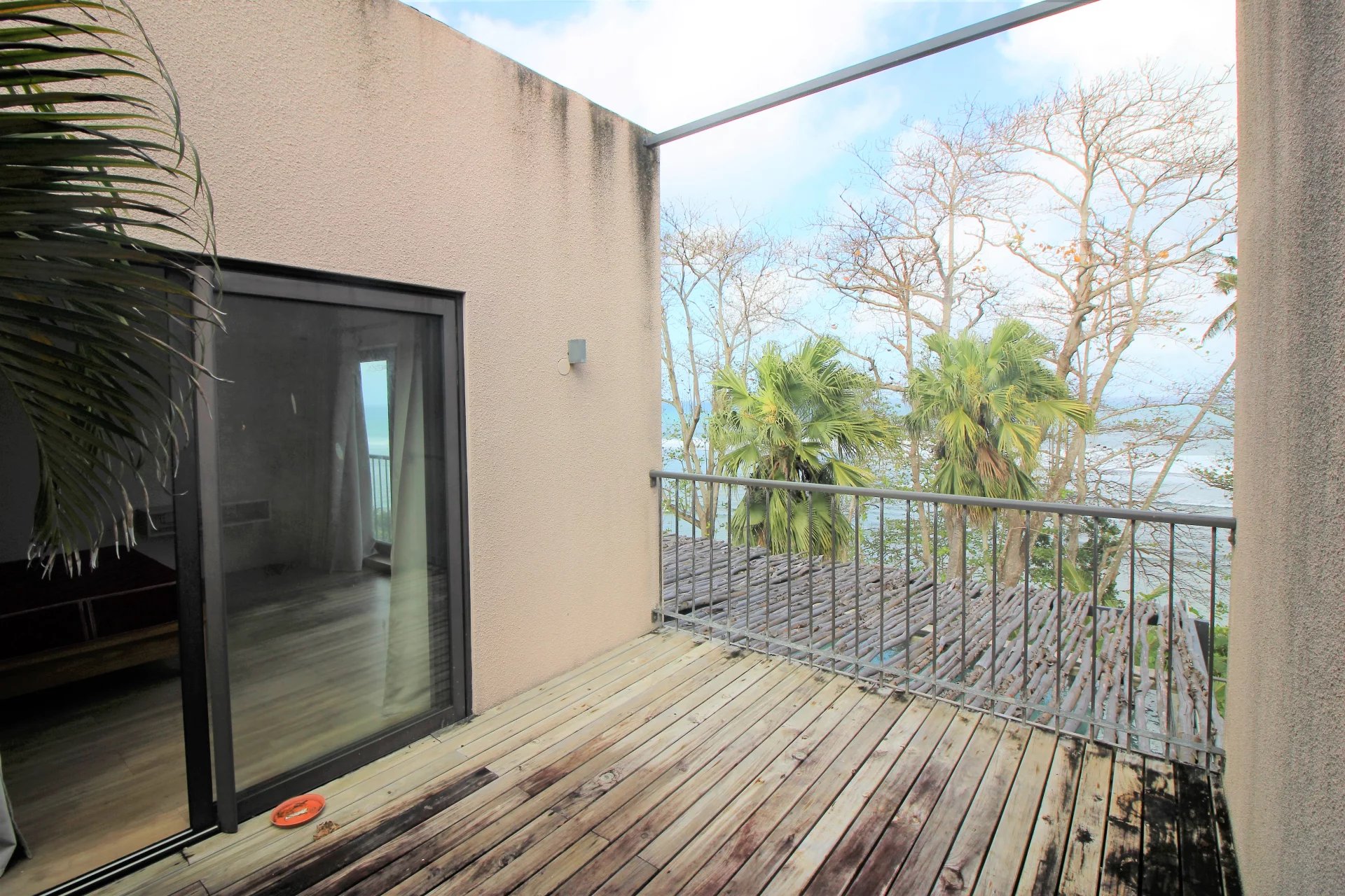 On the ground floor, you will find an en suite bedroom, an open-plan kitchen, and a bright living space that opens onto a terrace offering breathtaking ocean views. The first floor houses two bedrooms, each with its own bathroom, of which the master bedroom also benefits from a terrace with ocean views.