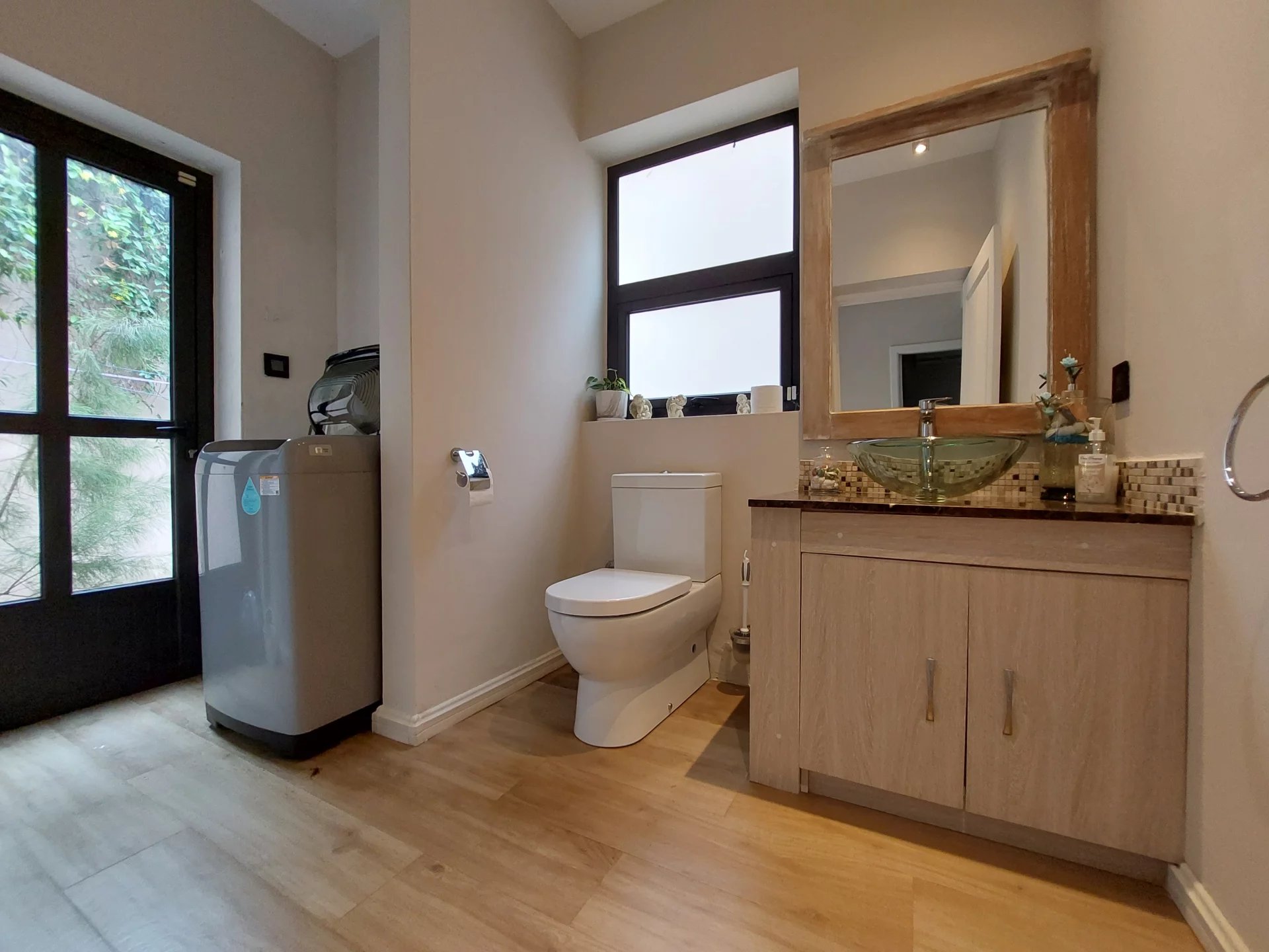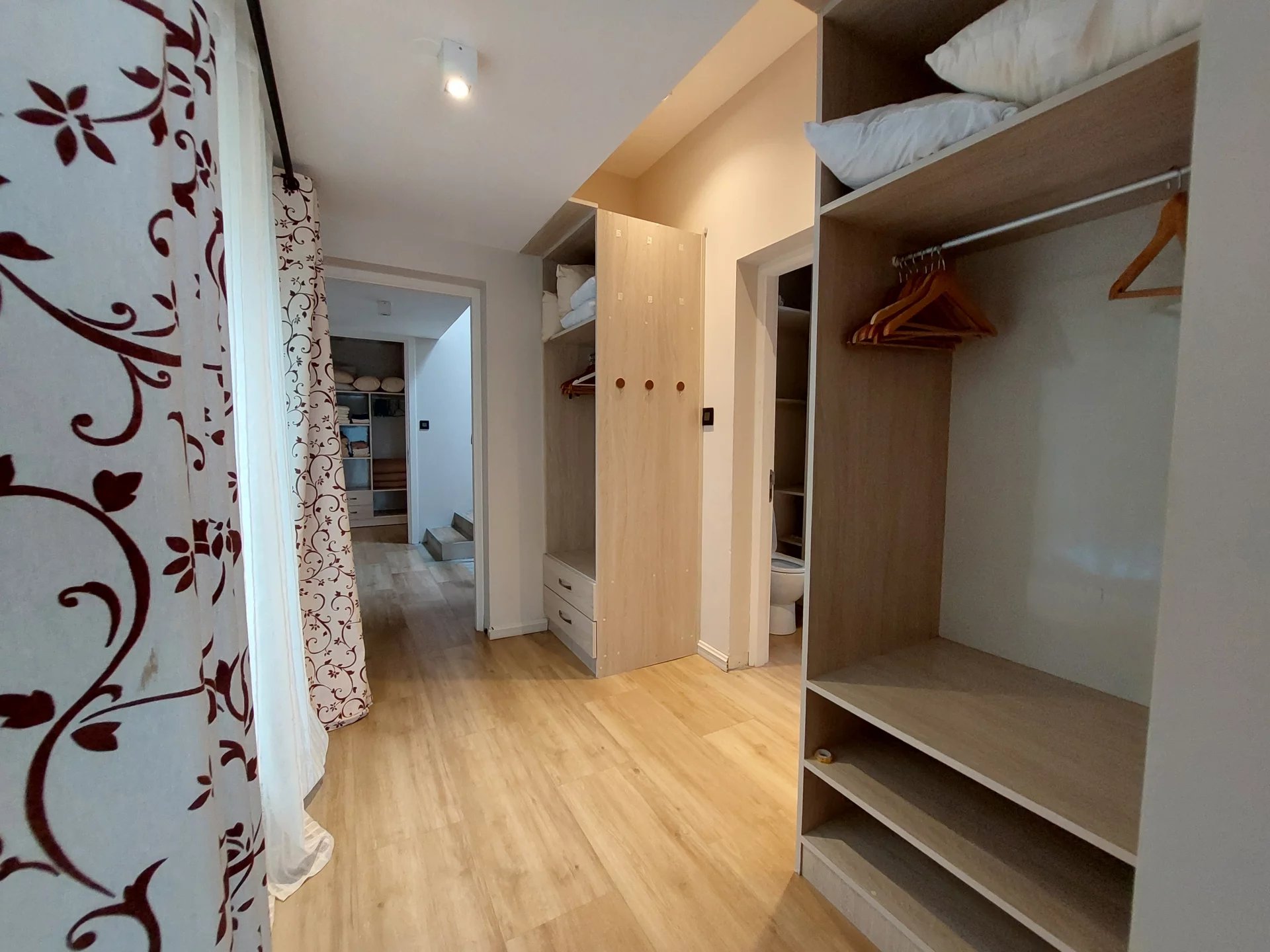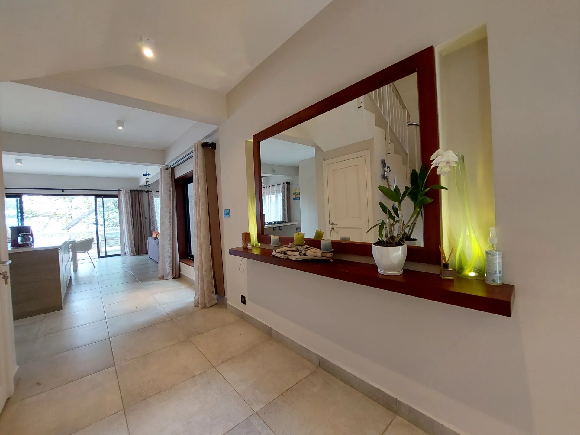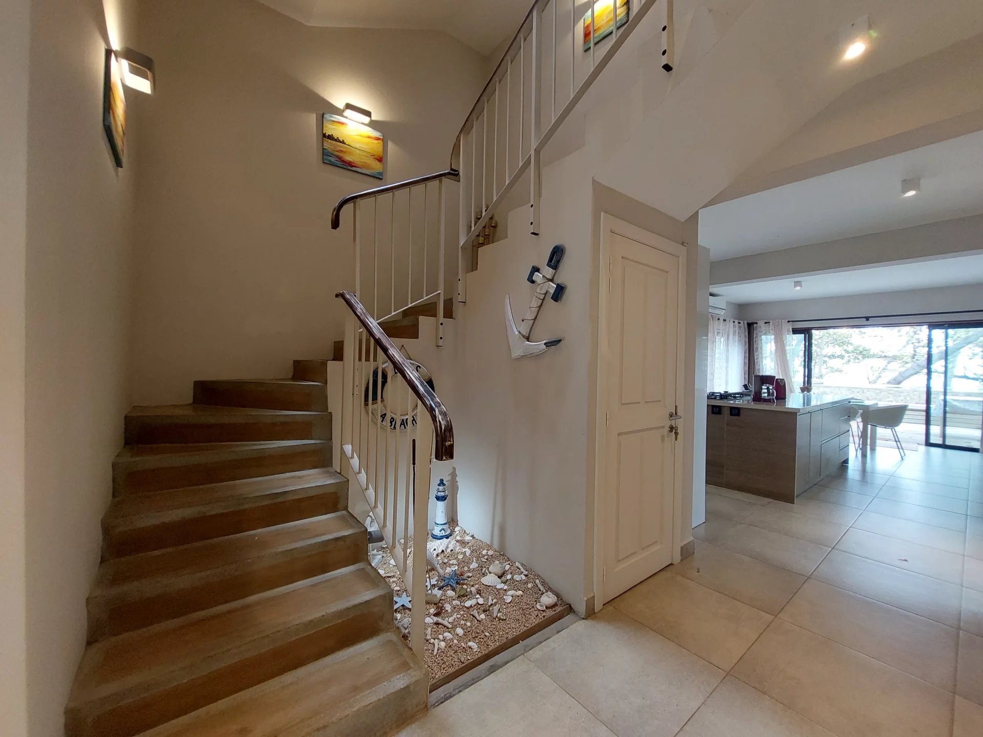 The duplex has a shared rear garden, equipped with an electric gate, and private parking is available for each unit, with an alarm system for security. Beach access is also close at hand.