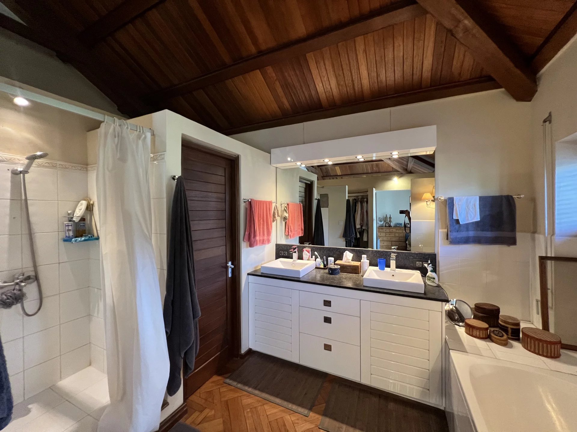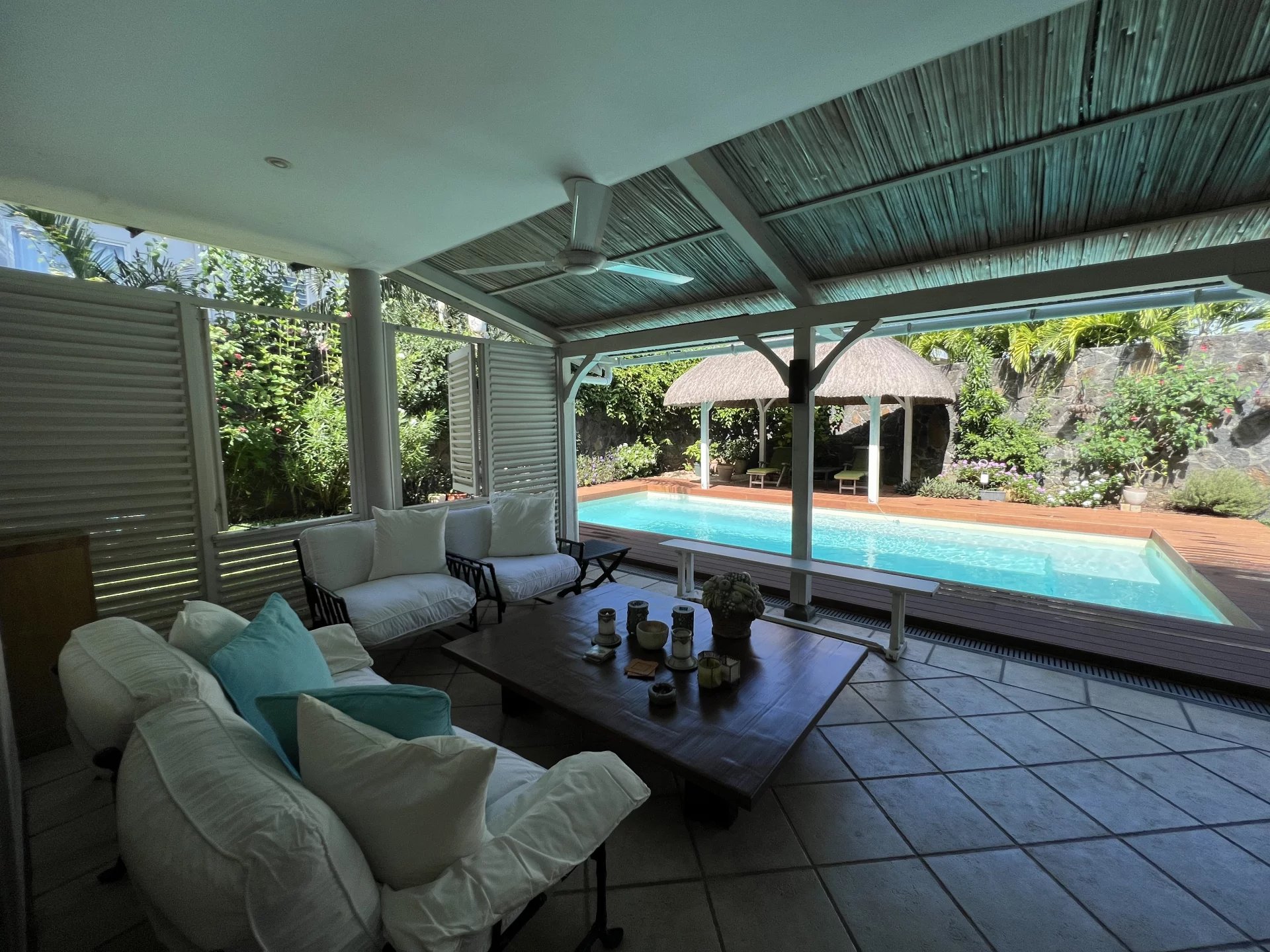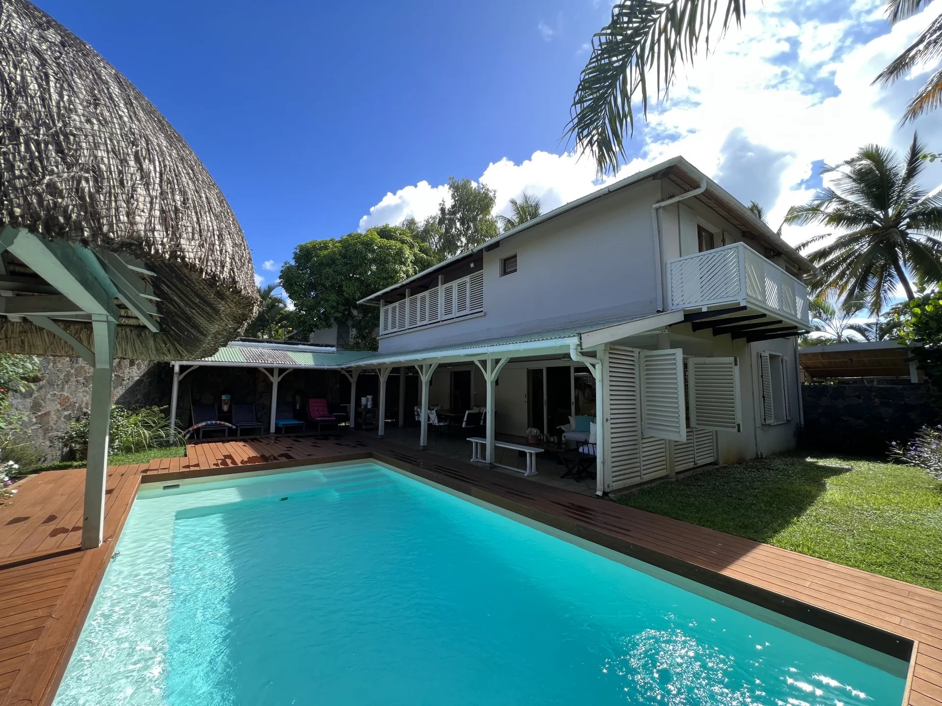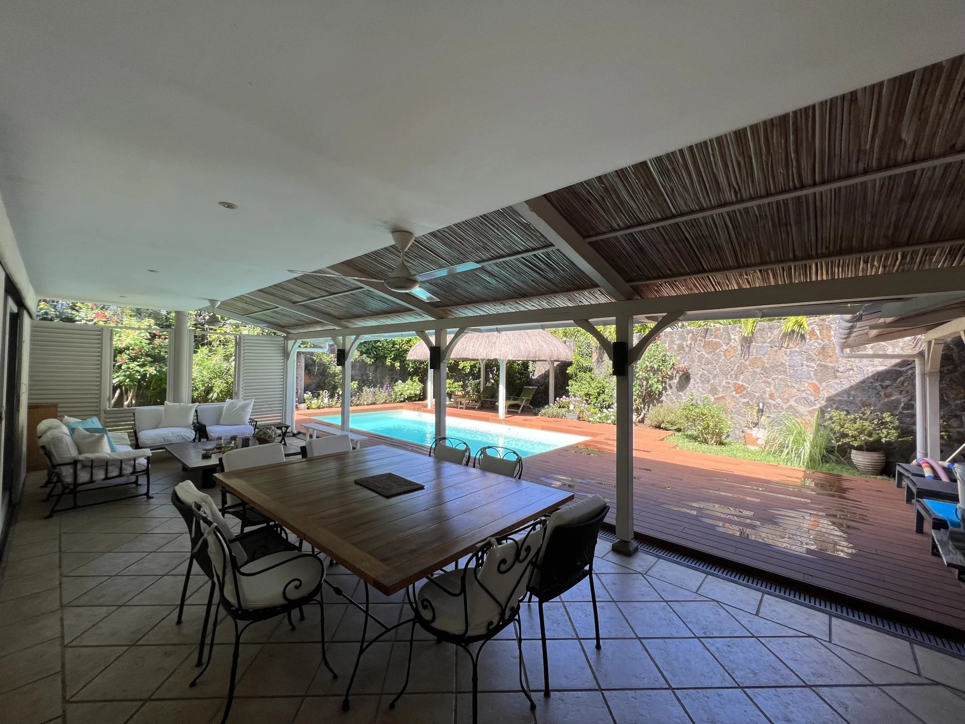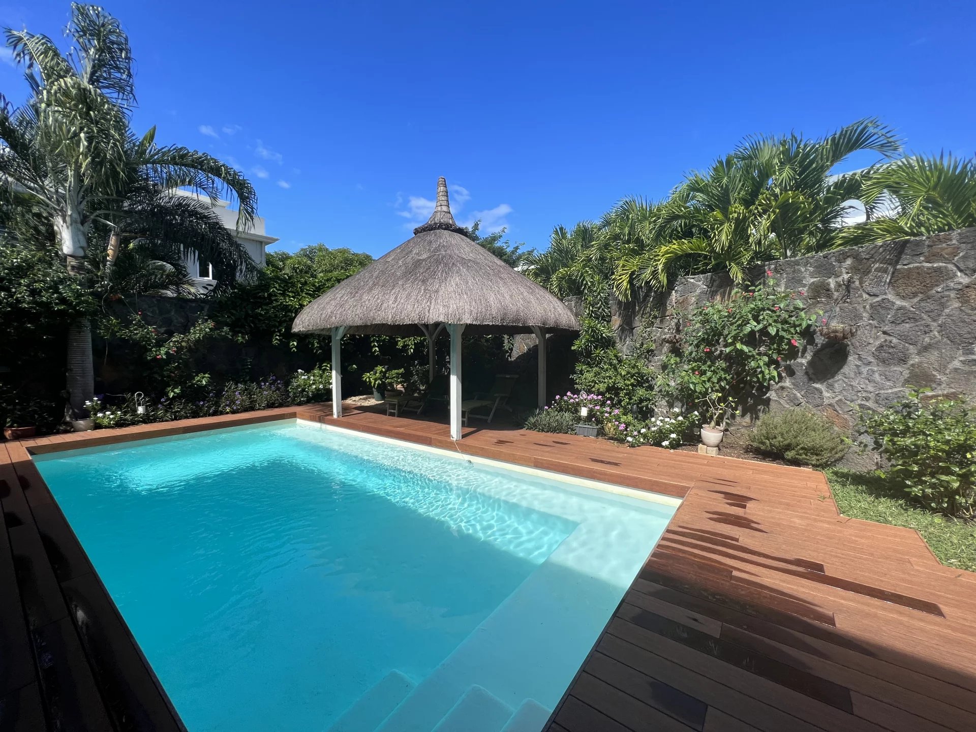 Located in a vibrant and secure area within walking distance to shops and restaurants, with private access to the sea. This 180 m² villa, full of character and charm, offers a comfortable and spacious living area with a living and dining room, traditional kitchen, utility/laundry room, and guest toilet. A beautiful terrace serves as a second living space facing the pool and kiosk area. On the first floor are two bedrooms and one office, all fully air-conditioned. The master bedroom features an en-suite bathroom and walk-in closet, and opens onto a lovely terrace. The property also includes an individual apartment with an en-suite bedroom, as well as a double garage and storage space.