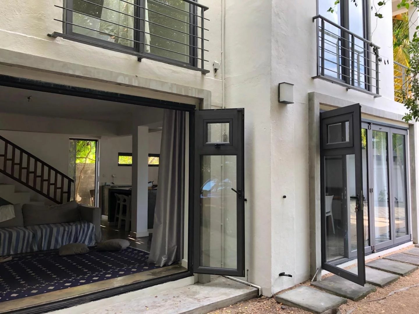 Two-storey house located on the sea side on the coastal road to Pointe d'Esny. The house includes on the ground floor combined living area with lots of light from the large bay window, open plan kitchen and one bedroom ensuite.