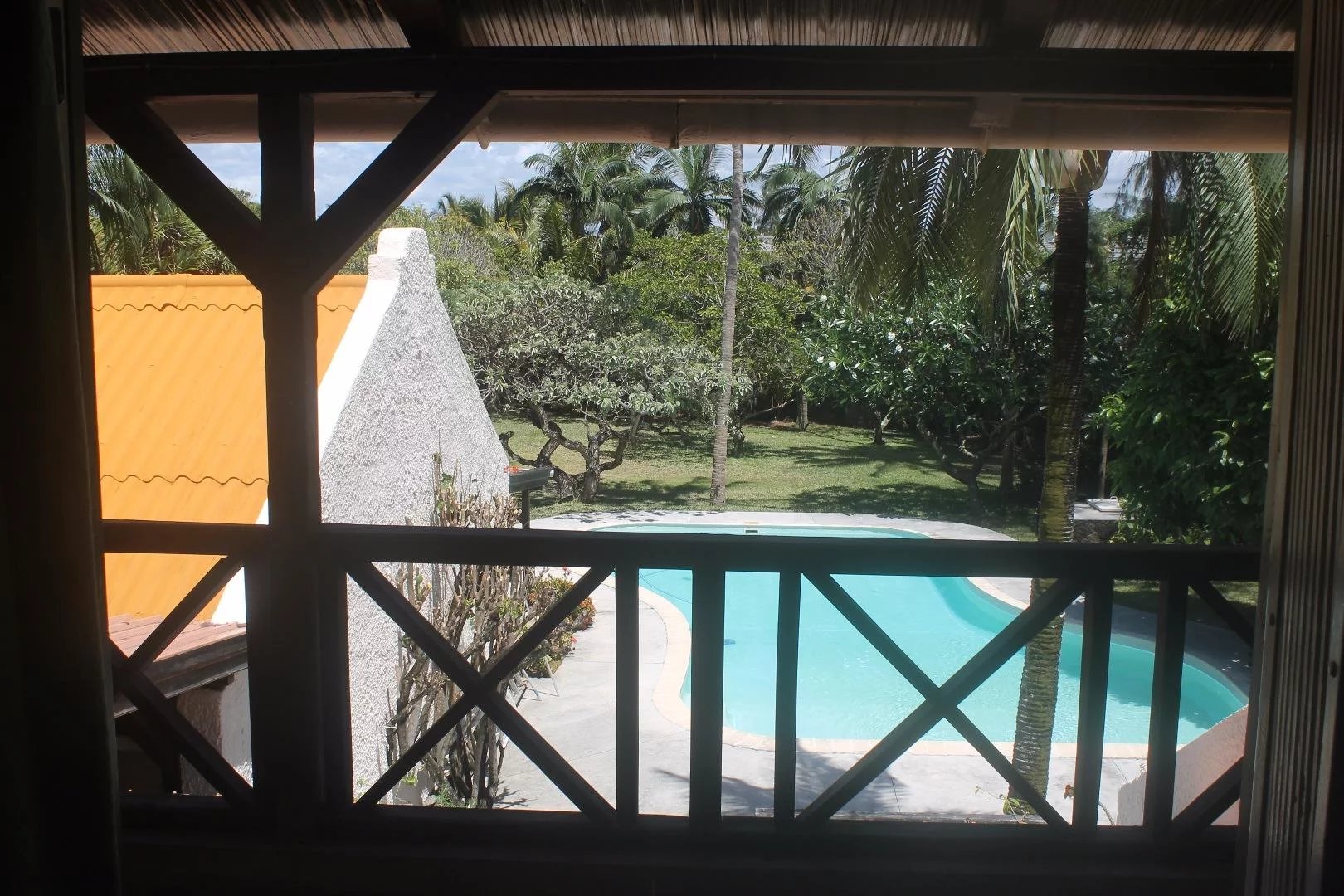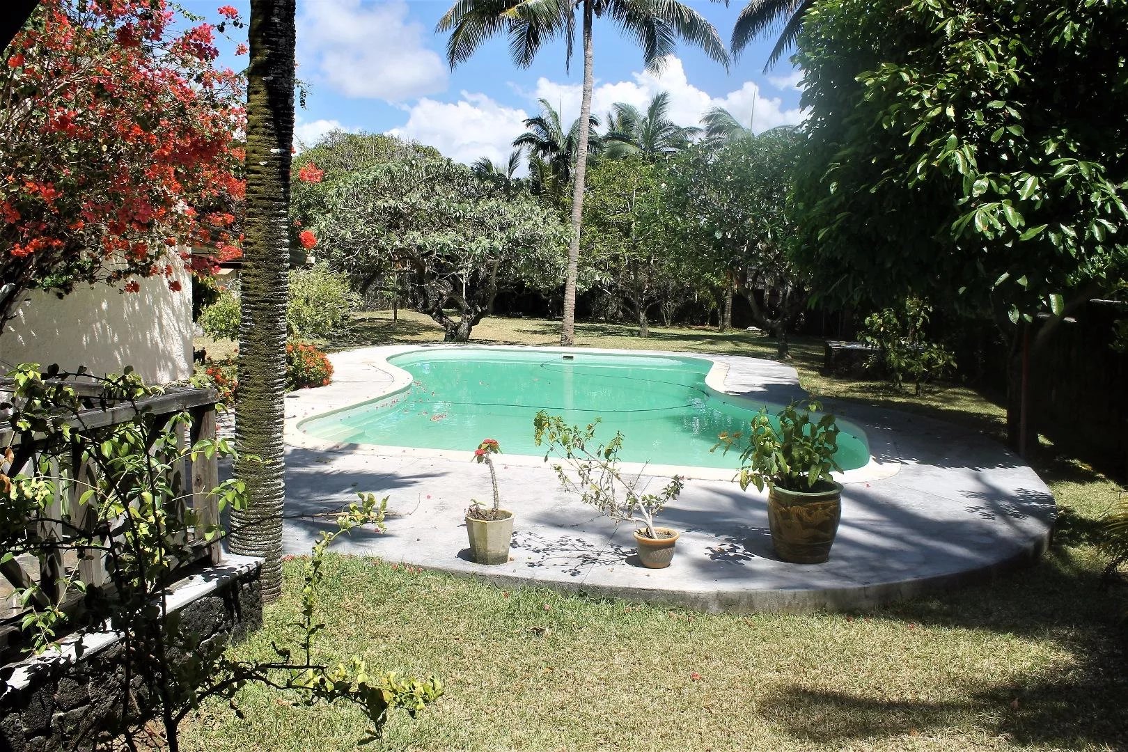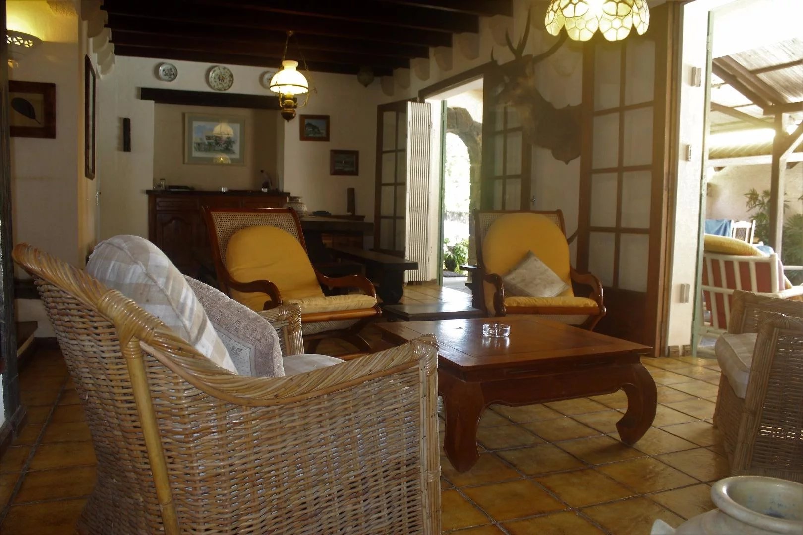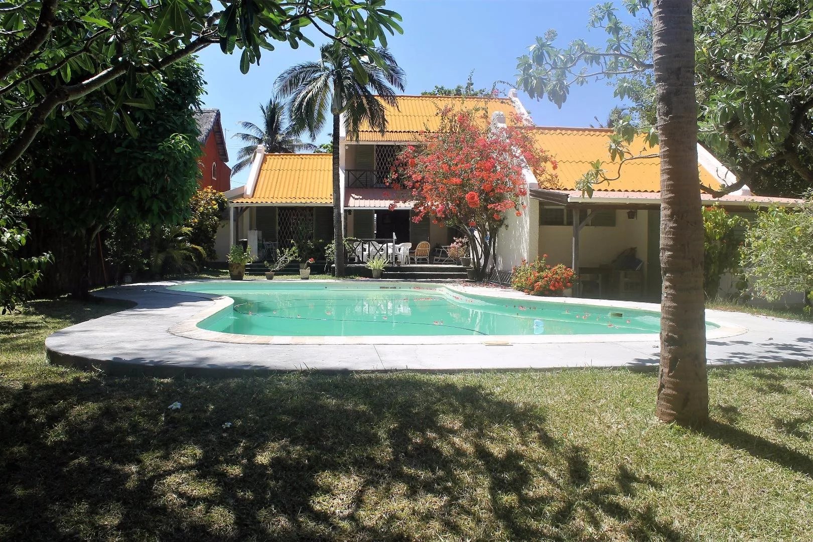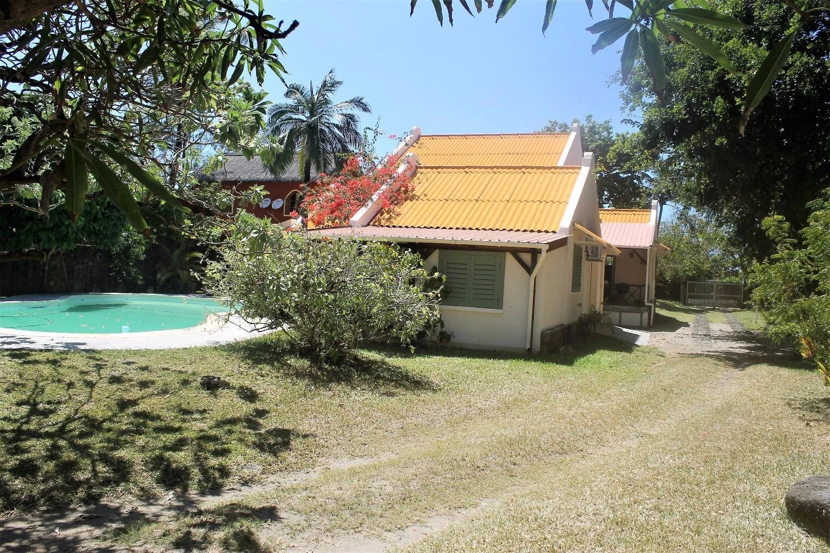 This house / villa of 300 m² with a land size of 300 m² is located on the coastal road of Pointe d'Esny, 15 mins from the airport and close to all amenities.The main house consists on the first floor of two bedrooms opening onto a shared balcony and view of the pool, another small bedroom or office and a bathroom. On the ground floor you will find a bedroom, air-conditioned with a mezzanine and a small private terrace, a bathroom, a TV corner, a front terrace, a conventional kitchen and a laundry room right next door. The living space opens onto the terrace with access to the swimming pool.Outside, attached to the garage, a one bedroom studio and a bathroom borders the large swimming pool. Large garden with trees and fenced. Available now!