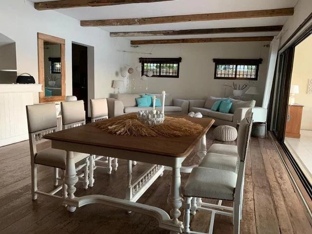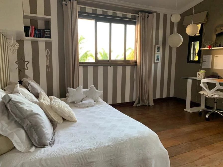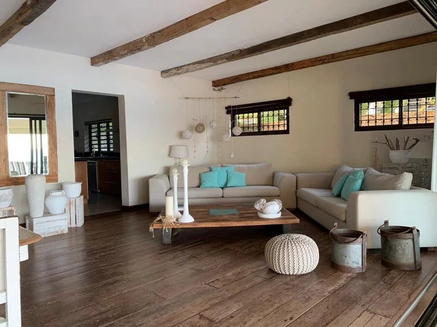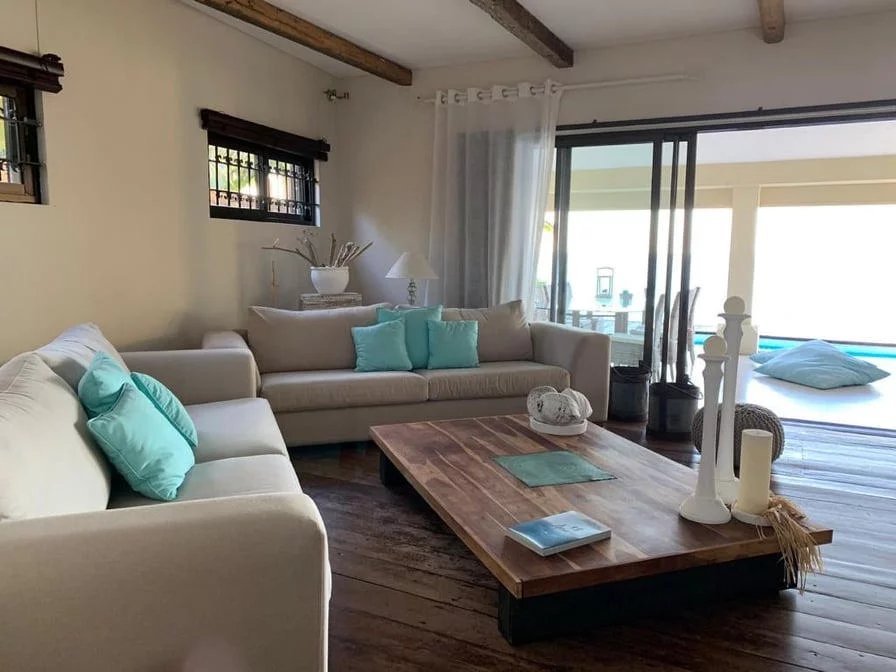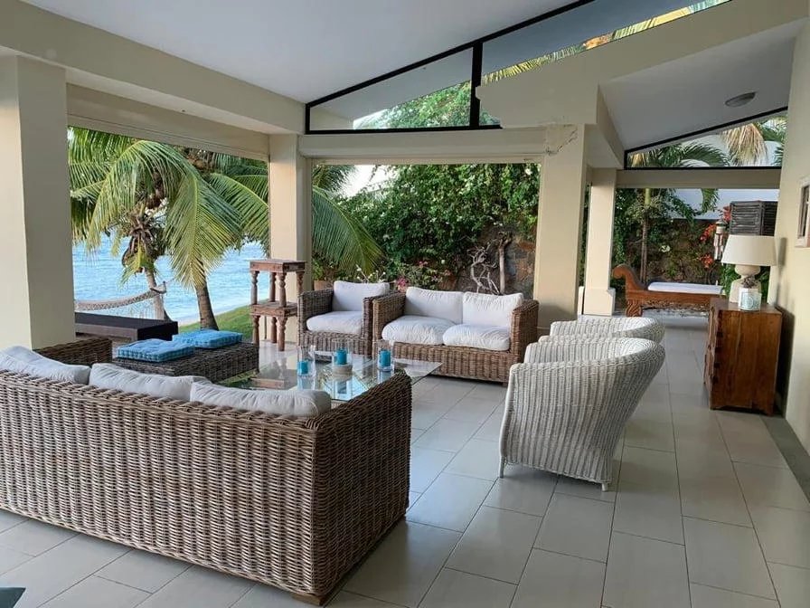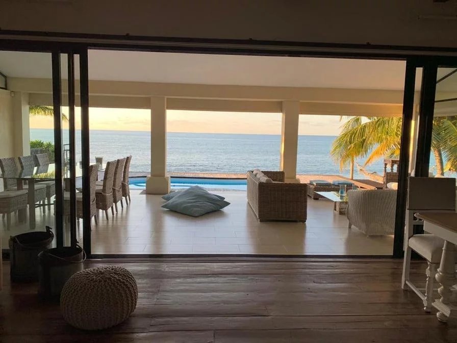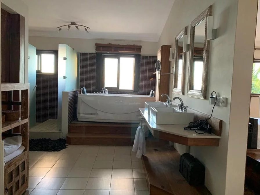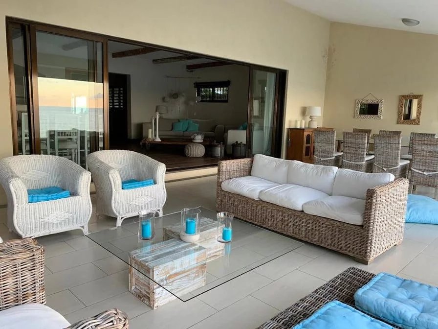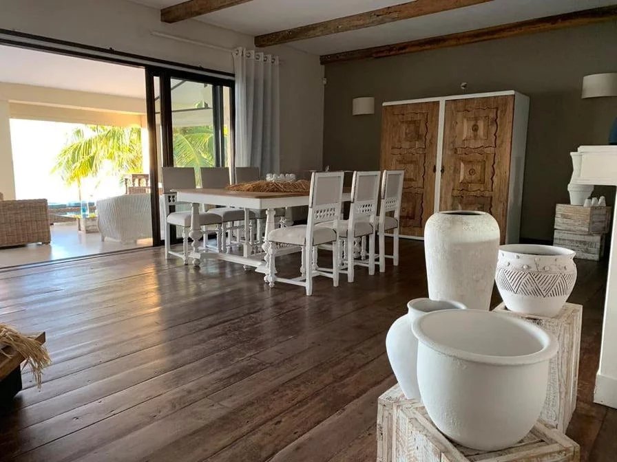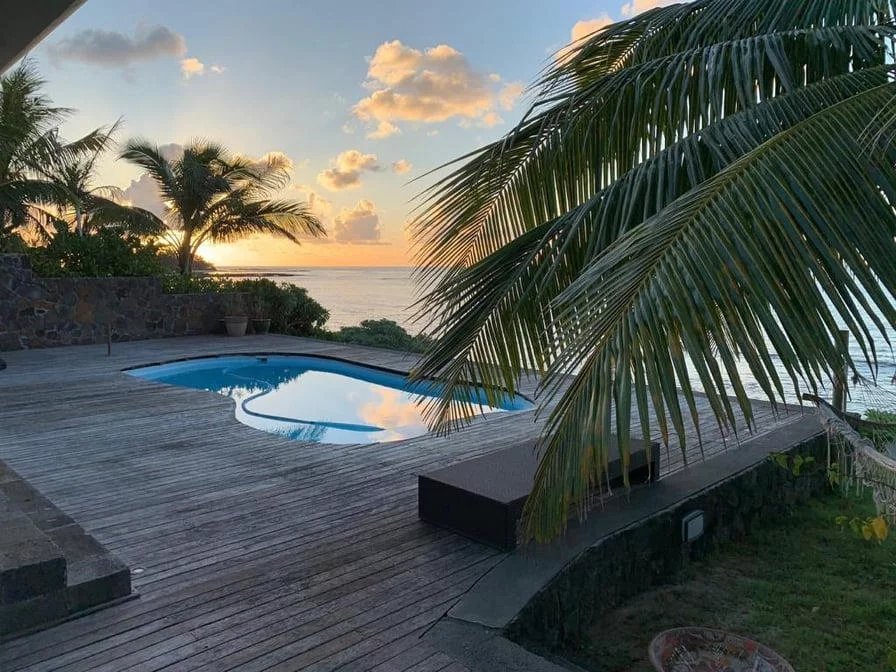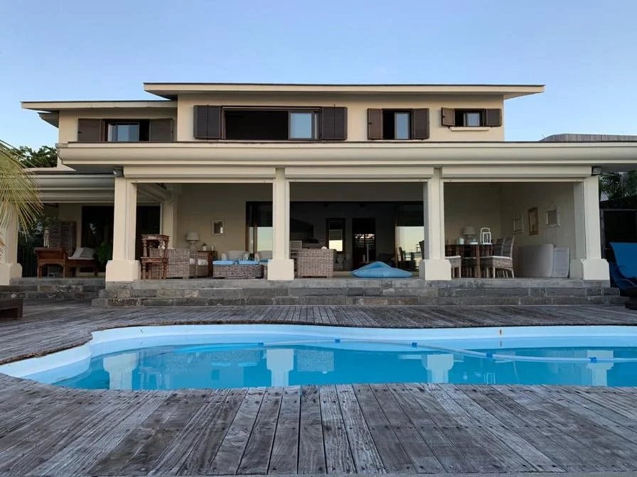 Located in the prestigious Pointe aux Canonniers district, this charming 350 m2 villa on the waterfront offers you a breathtaking view of the ocean and the Coin de Mire. It has 5 bedrooms, a large equipped kitchen with breakfast area, a laundry room and storage spaces, a vast living space with lounge, dining room, bar area and wine cellar, totally open to the outside by large bay windows. The master bedroom is equipped with an en-suite bathroom with bathtub and a large dressing room. Bright and open, the villa also includes a large terrace as a second living room, perfect for receptions and secured by electric shutters. The swimming pool and wooden deck overlook the bay and thus offer a private and intimate atmosphere to the property. It has direct access to the beach, a double open garage, exterior storage spaces and an alarm system.