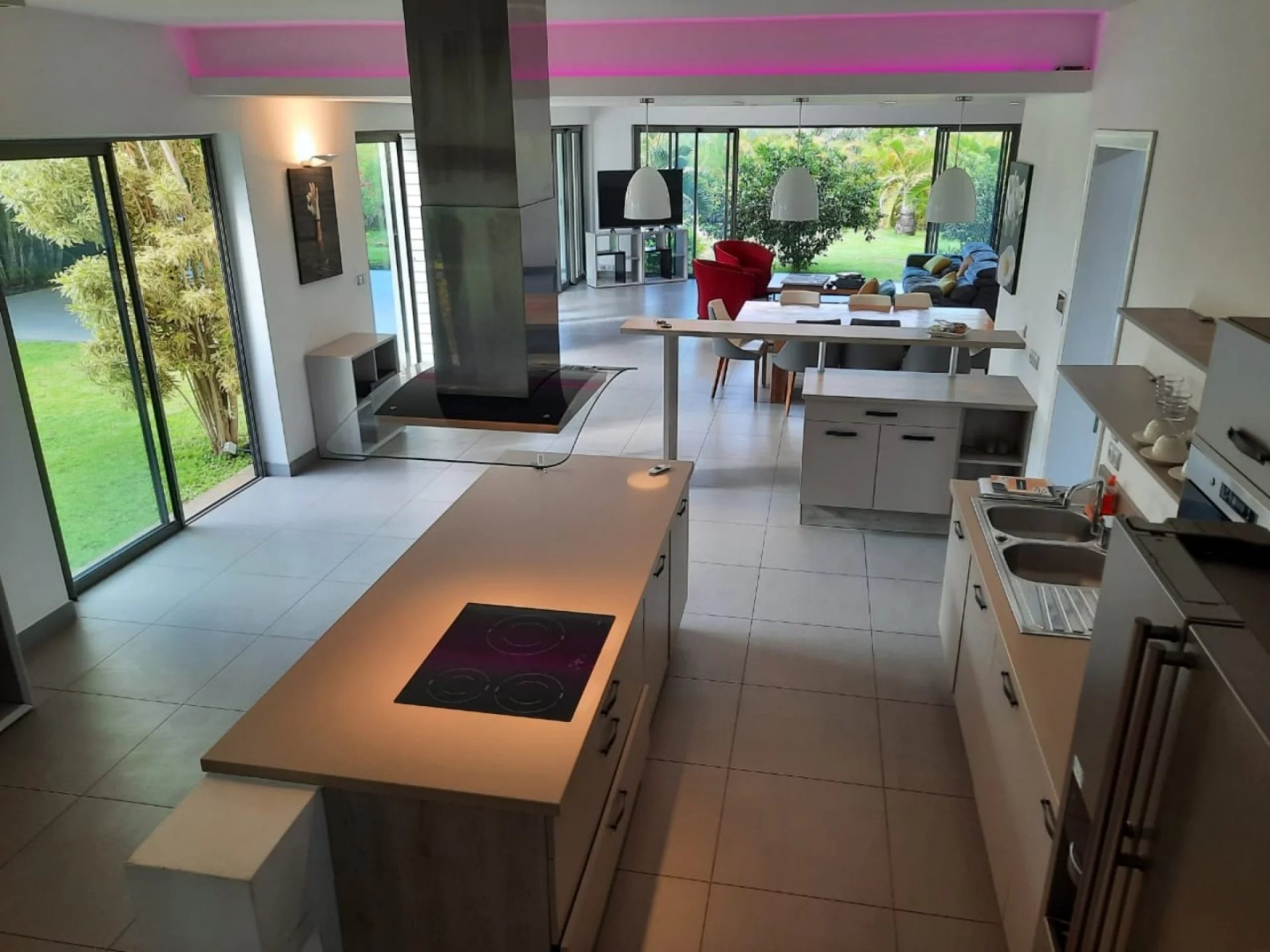 Discover this contemporary villa of 450 m² is located in a secure complex in Cap Malheureux, 5 minutes from the center of Grand Bay and has quick access to schools.