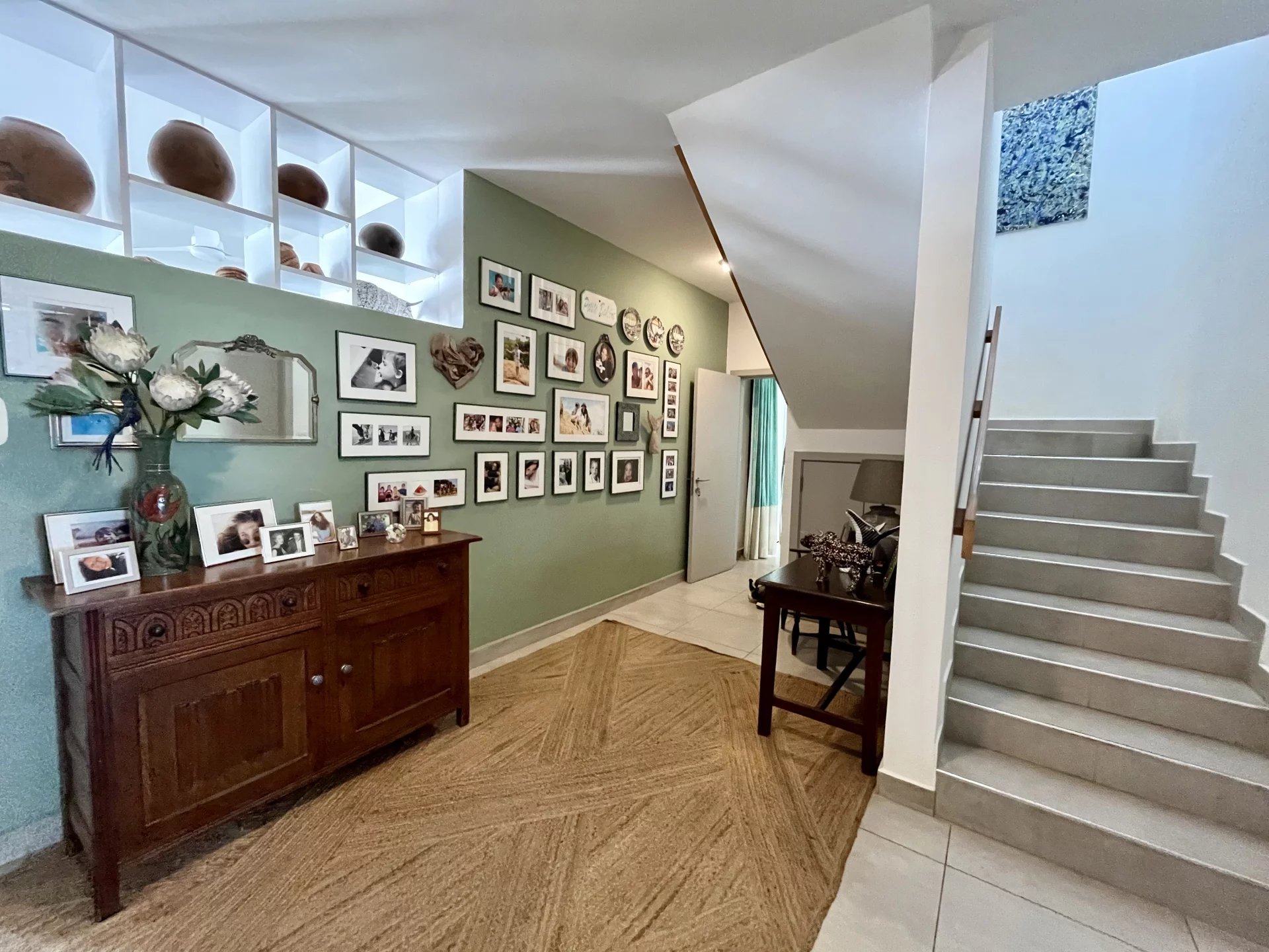 Outdoors, a large swimming pool and beautifully landscaped space invite relaxation. The rent includes maintenance of the garden, pool and generator, as well as an alarm system. A rainwater collection system for irrigation and photovoltaic panels complete this elegant, energy-conscious home.