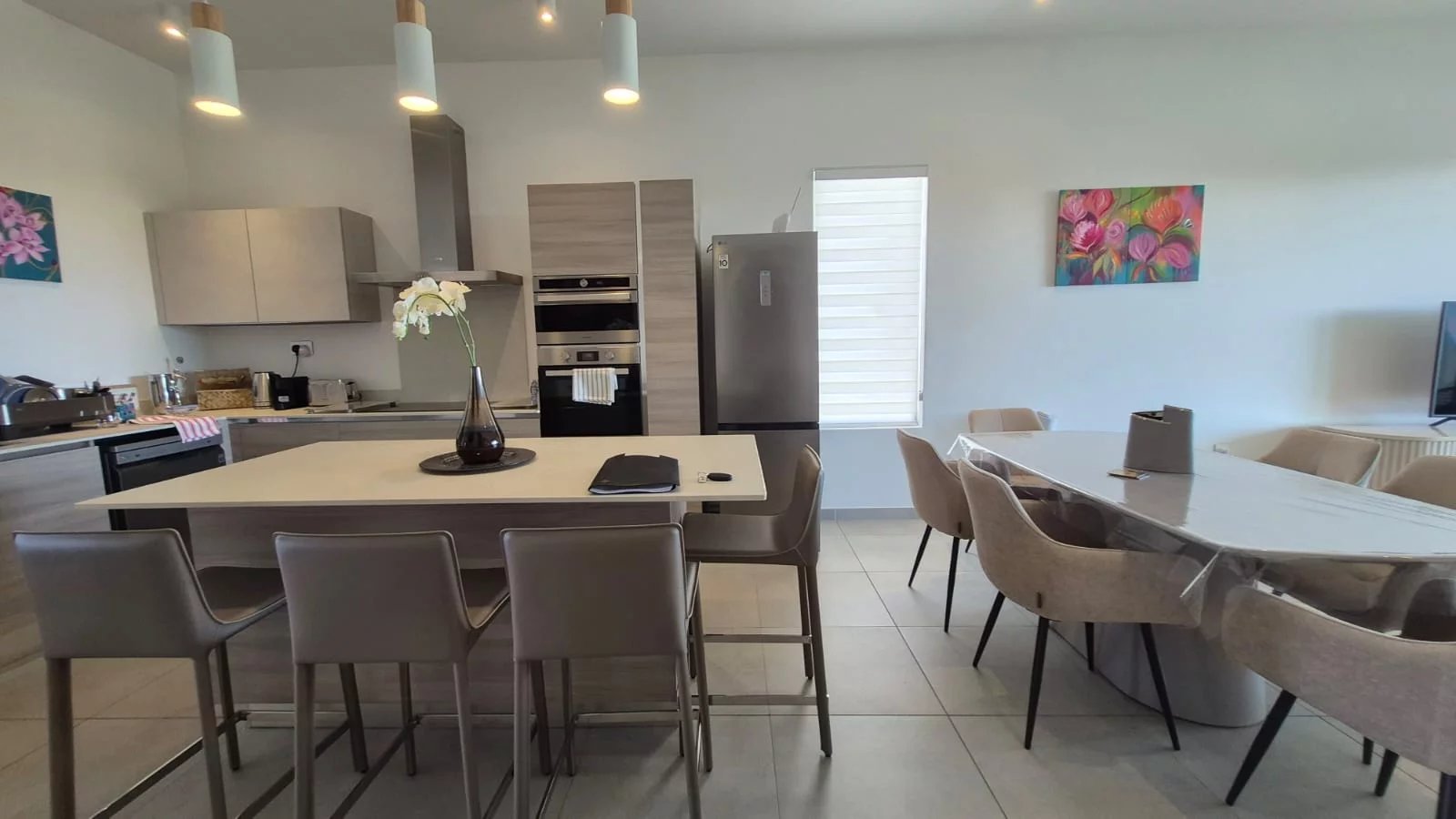 Step into a beautifully curated open-plan living space, where the lounge, dining area, and modern kitchen flow together seamlessly—creating a sophisticated yet inviting setting that is perfect for both relaxing and entertaining. Every detail has been thoughtfully considered, featuring high-end furnishings and quality finishes throughout, ensuring a turnkey experience.