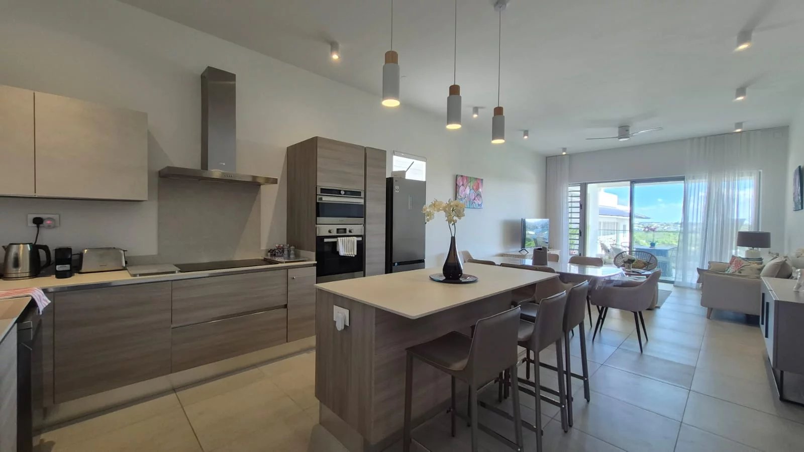 • Elegant open-plan living, dining, and kitchen areas