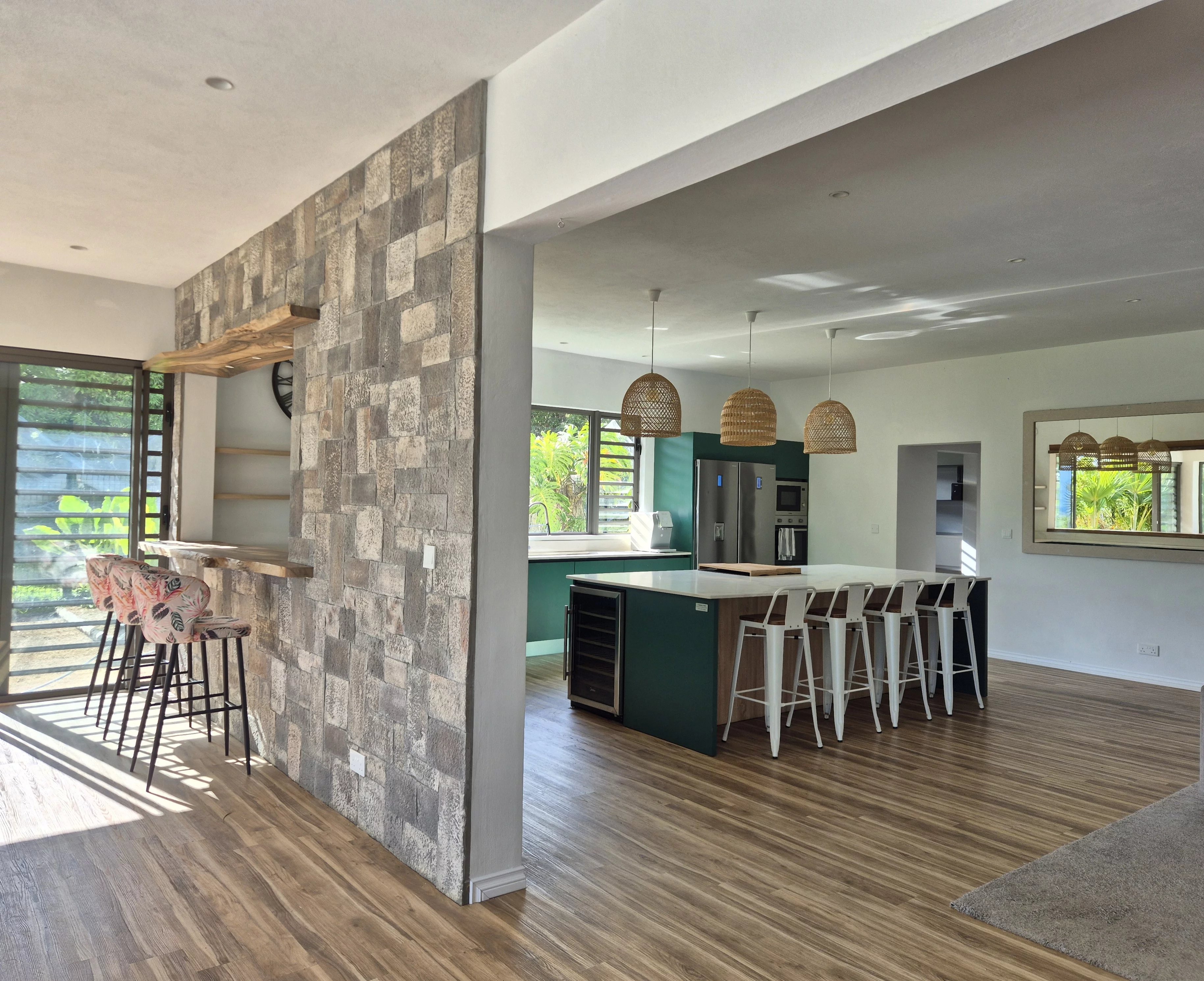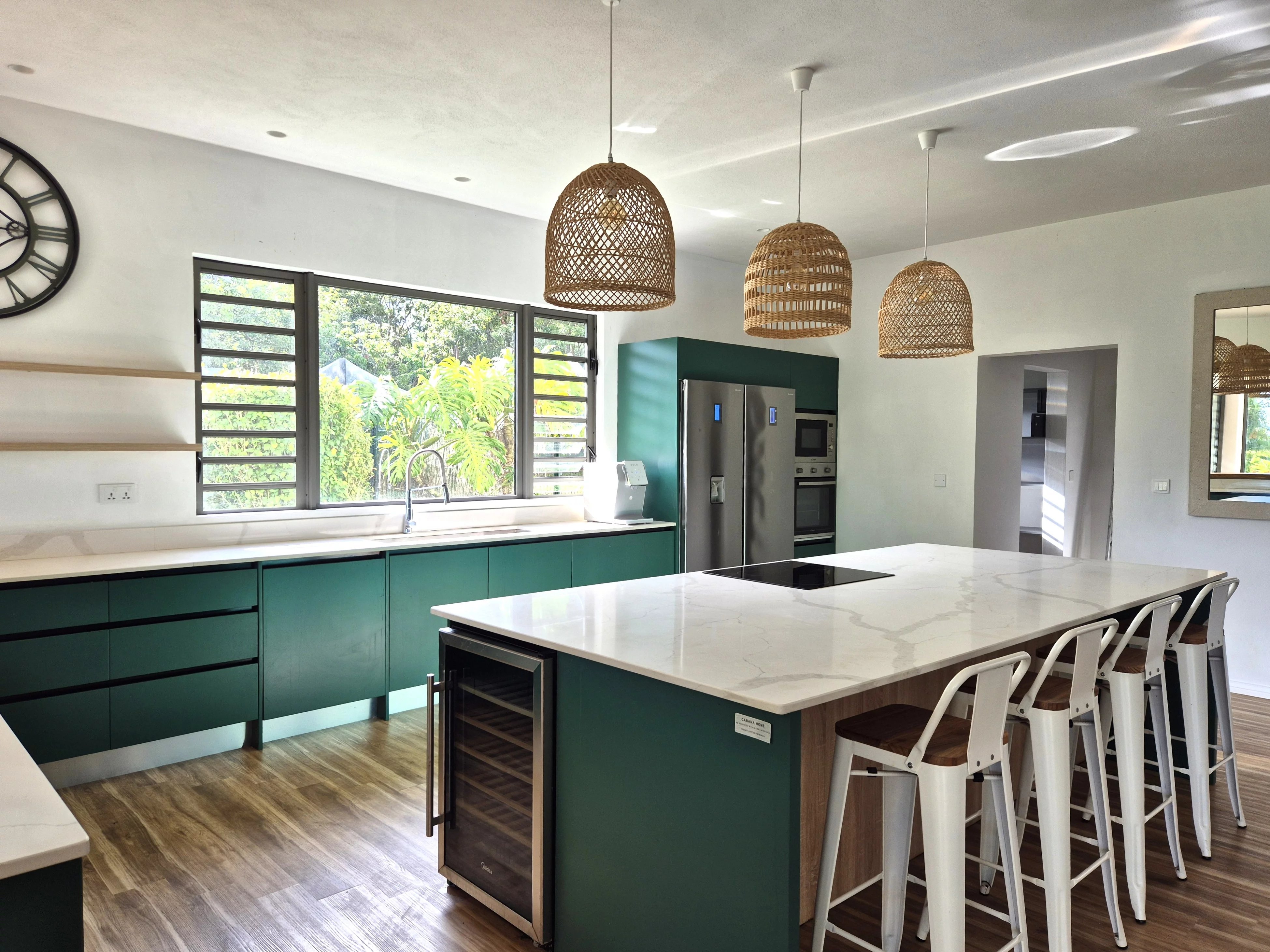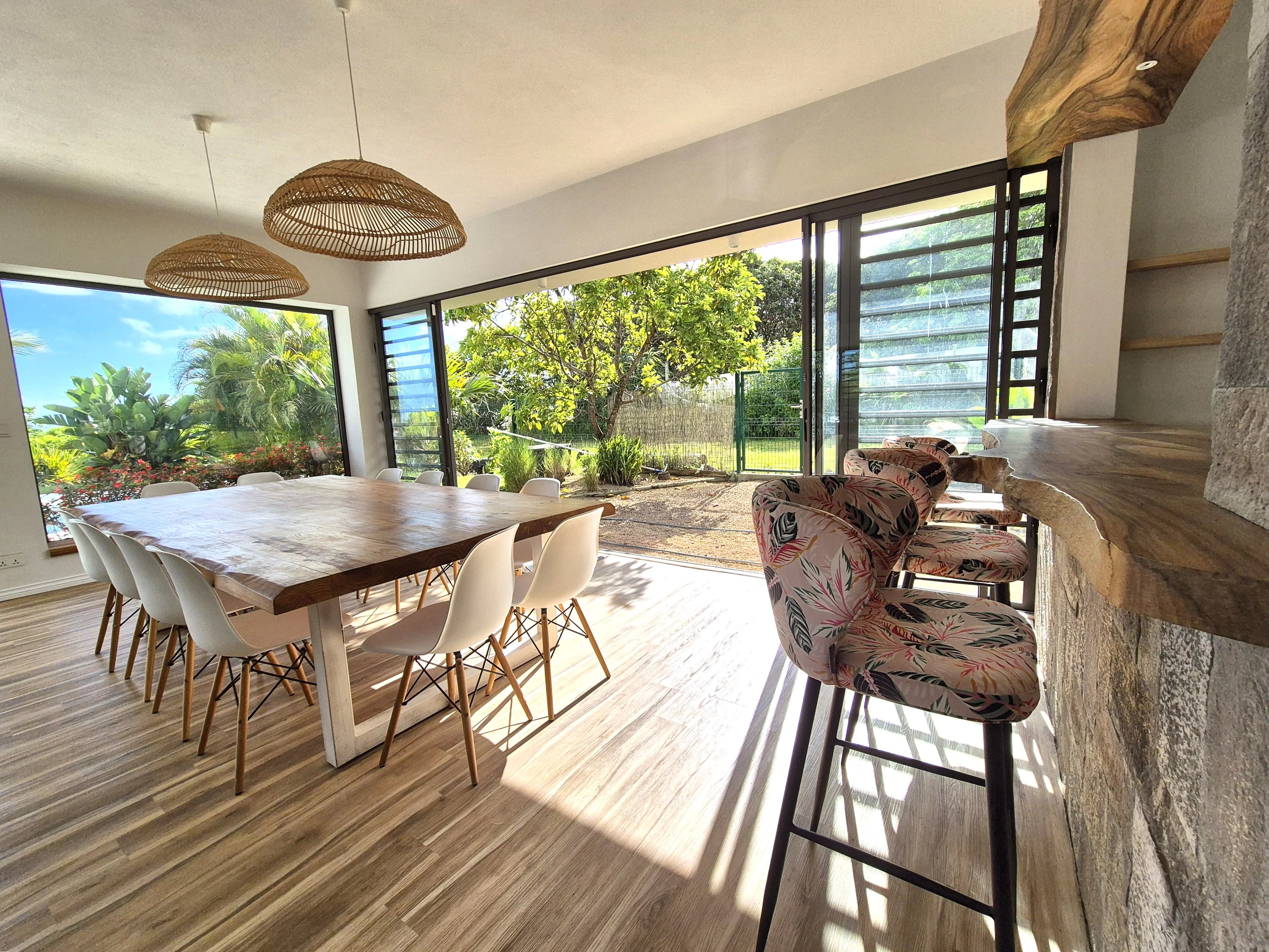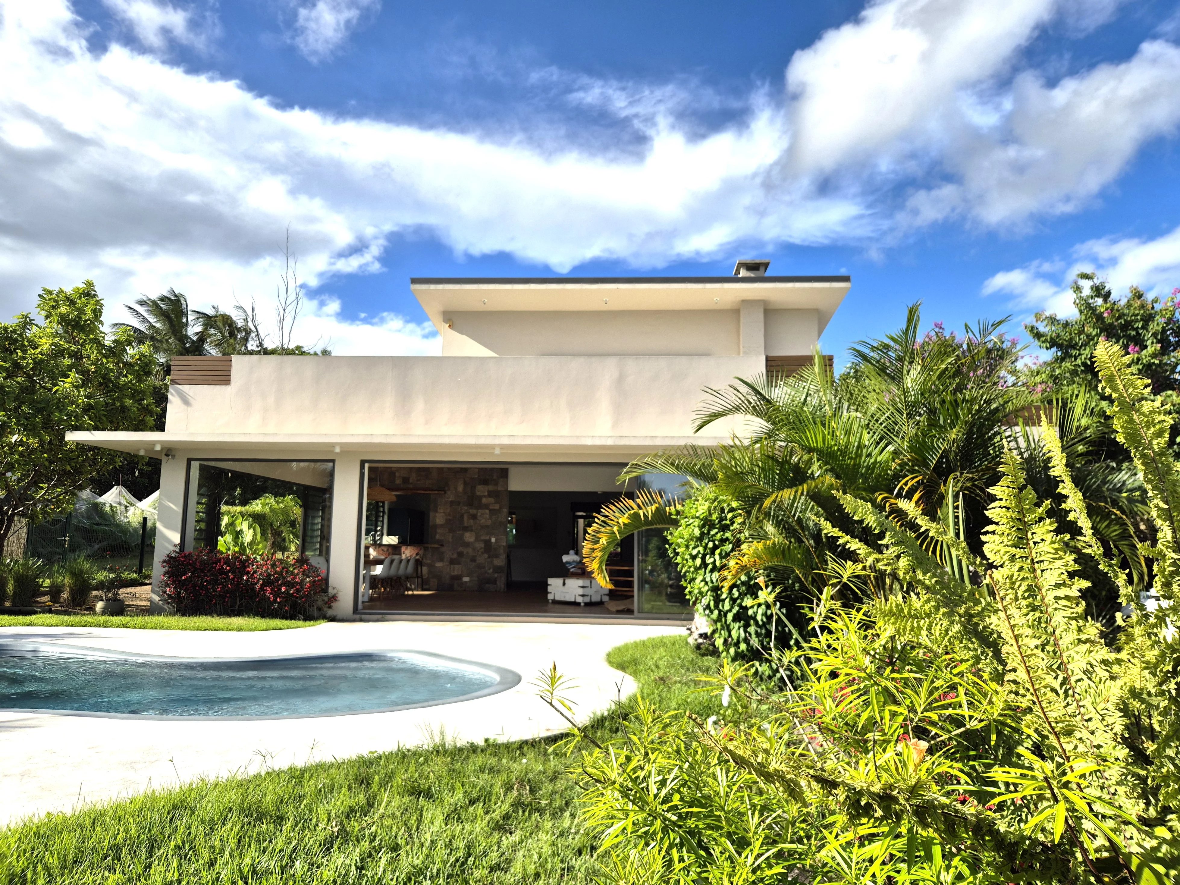 If you dream of a peaceful life surrounded by nature, this contemporary 350 m² house is perfect for you. Located in a quiet neighborhood with abundant green spaces, it offers spacious rooms, natural light, and modern comfort. On the ground floor, the villa features a spacious and bright living area, including a living room with a fireplace, a dining area, and large sliding glass doors opening onto a terrace with views of the landscaped garden and swimming pool. The fully equipped open-plan kitchen is complemented by a pantry and laundry room, with the entire space flowing seamlessly into the TV room. This level also offers three bedrooms with en-suite bathrooms, including a suite with a walk-in closet, ensuring comfort and privacy. On the first floor, the master suite features a shower, a bathtub, a dressing room, and a large terrace with ocean views. All bedrooms are air-conditioned, and the house is equipped with an alarm system. The property includes a beautifully landscaped and fenced garden, an electric gate, and a pool with a cover. Hot water is available throughout the house, including the kitchen, sinks, showers, and bathtubs, ensuring comfort and convenience in every space. The rental includes garden maintenance, pool upkeep twice a week, and security service for the alarm. Available now.