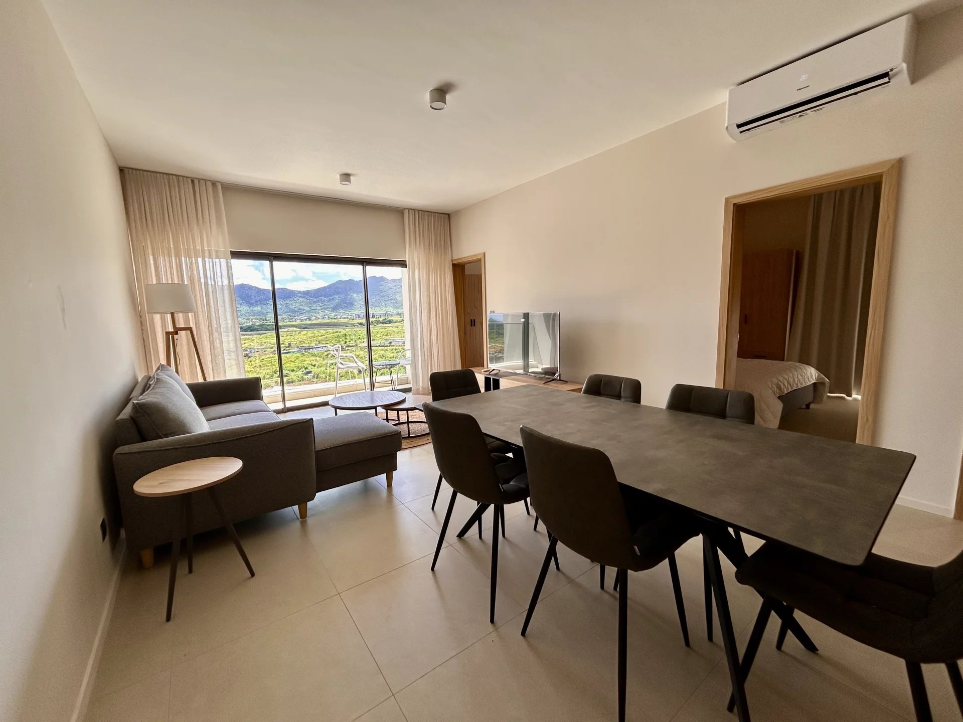 It features 2 air-conditioned bedrooms, a spacious and bright living room, a fully equipped kitchen, a contemporary bathroom, and offers breathtaking mountain views.