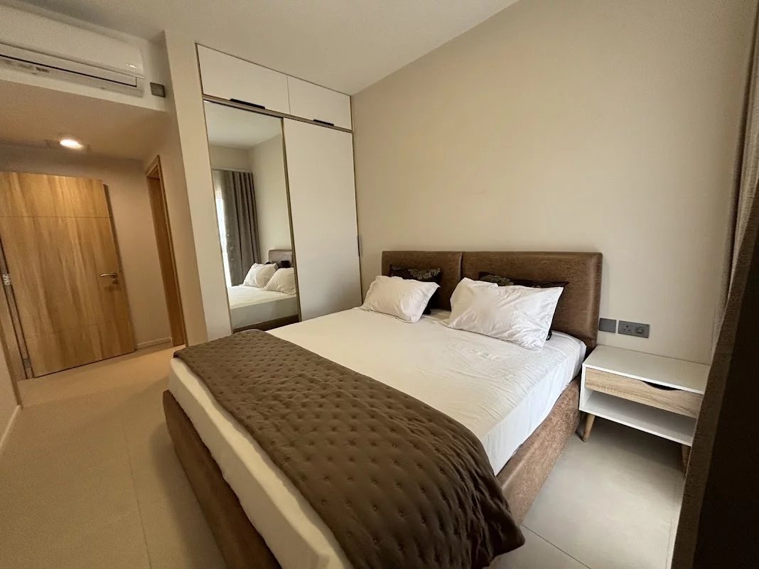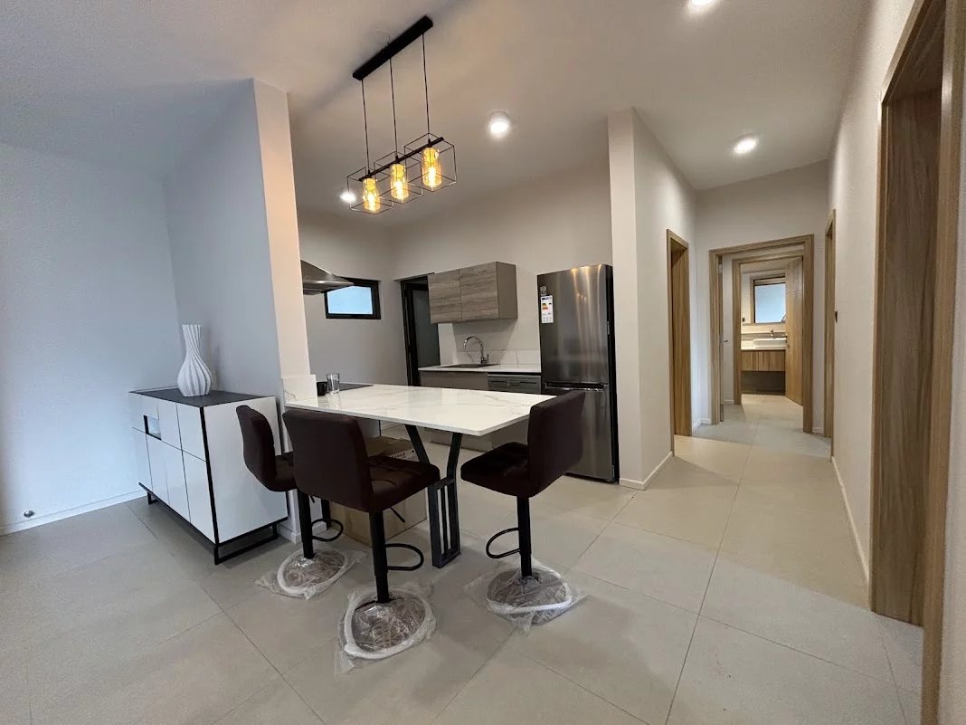 This elegant and secure apartment is located in a new residence in Minissy, between Trianon and Moka. It features a bright living room that opens onto a private balcony with magnificent eastward and mountain views. The apartment includes one ensuite bedroom and two additional bedrooms decorated in soothing colors, along with a separate bathroom. The compact, well-equipped kitchen is adjacent to a spacious laundry room. The apartment offers a private underground parking space, an elevator, a large shared swimming pool, a well-equipped fitness center, and a clubhouse. A garbage chute on each floor makes apartment living more convenient and comfortable. This apartment is ideal for a professional, a couple, or a small family seeking security and convenience while enjoying the benefits of this peaceful urban area. Located near Tribeca Mall, the Telfair and Ebene business districts, as well as shopping centers, schools, universities, and the Réduit Hospital Triangle, this charming apartment is ready for your visit.