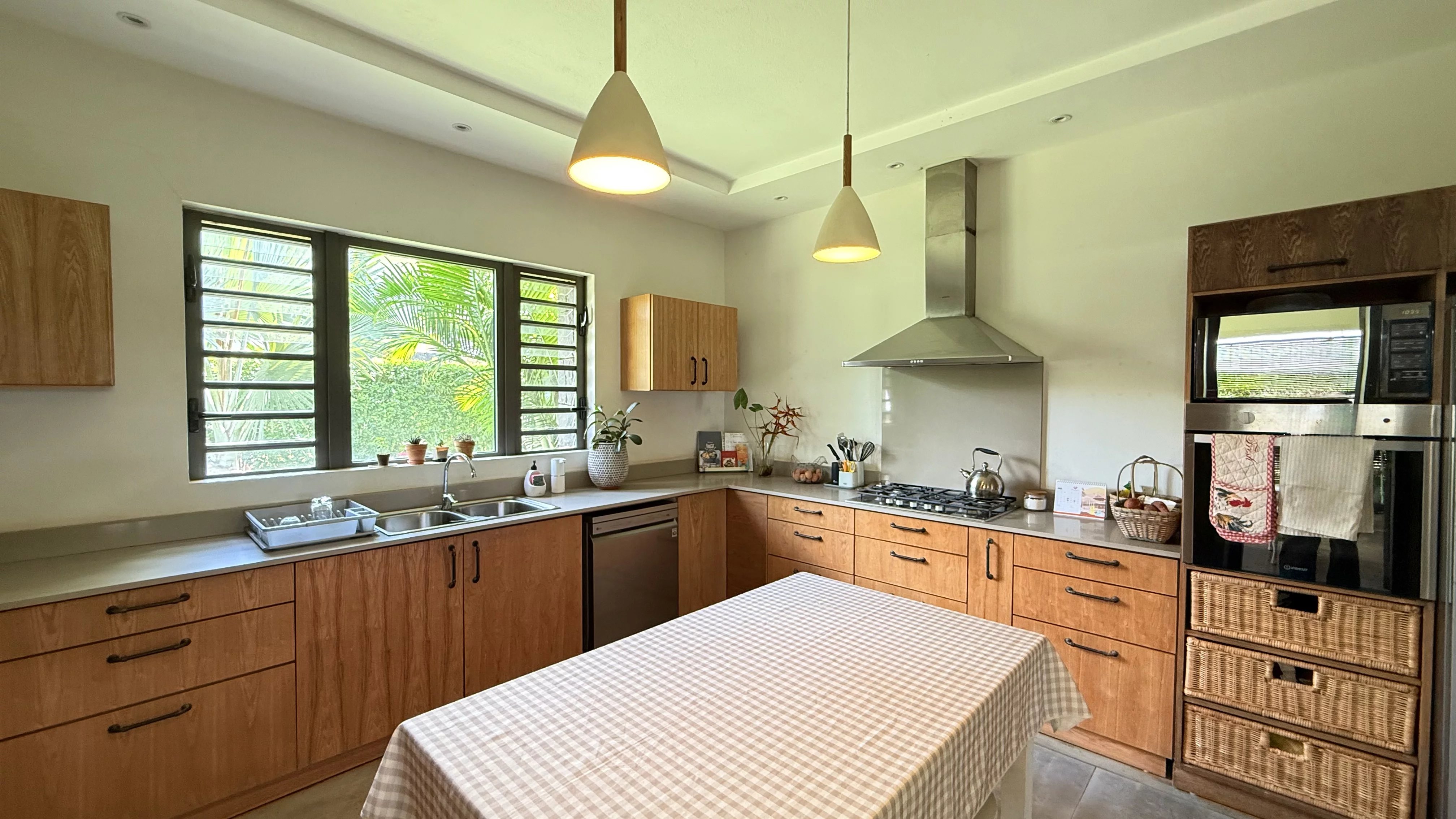 Nestled within a secure residential estate in Moka, this beautiful family home with an upper floor seamlessly combines space, comfort, and serenity. Set on a 748 m² plot, the 280 m² property comprises 5 bedrooms including a master suite with a dressing room, 2 bathrooms, a lounge, a living room, a dining room, a fully equipped kitchen, and a veranda opening directly onto the garden. A laundry room and a storeroom complete the service areas, while the garden offers generous green space for the whole family to enjoy. Ideally located, the property is just 2 minutes from the central schools and the Allées d'Helvetia, 5 minutes from the business hubs of Vivéa Business Park, Telfair, and Côte d'Or Technopole, and less than 10 minutes from the Ébène Cybercity business district.