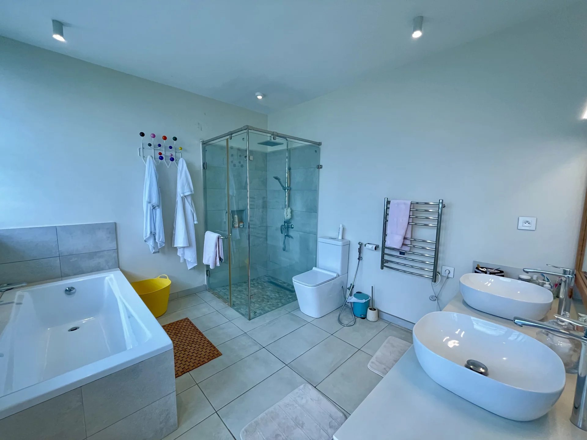The spacious, well-lit rooms offer a comfortable and enjoyable living experience, complemented by a modern, fully-equipped enclosed kitchen, ideal for cooking enthusiasts. The house sits on a generous 4000 m² plot, perfect for outdoor activities and gardening.