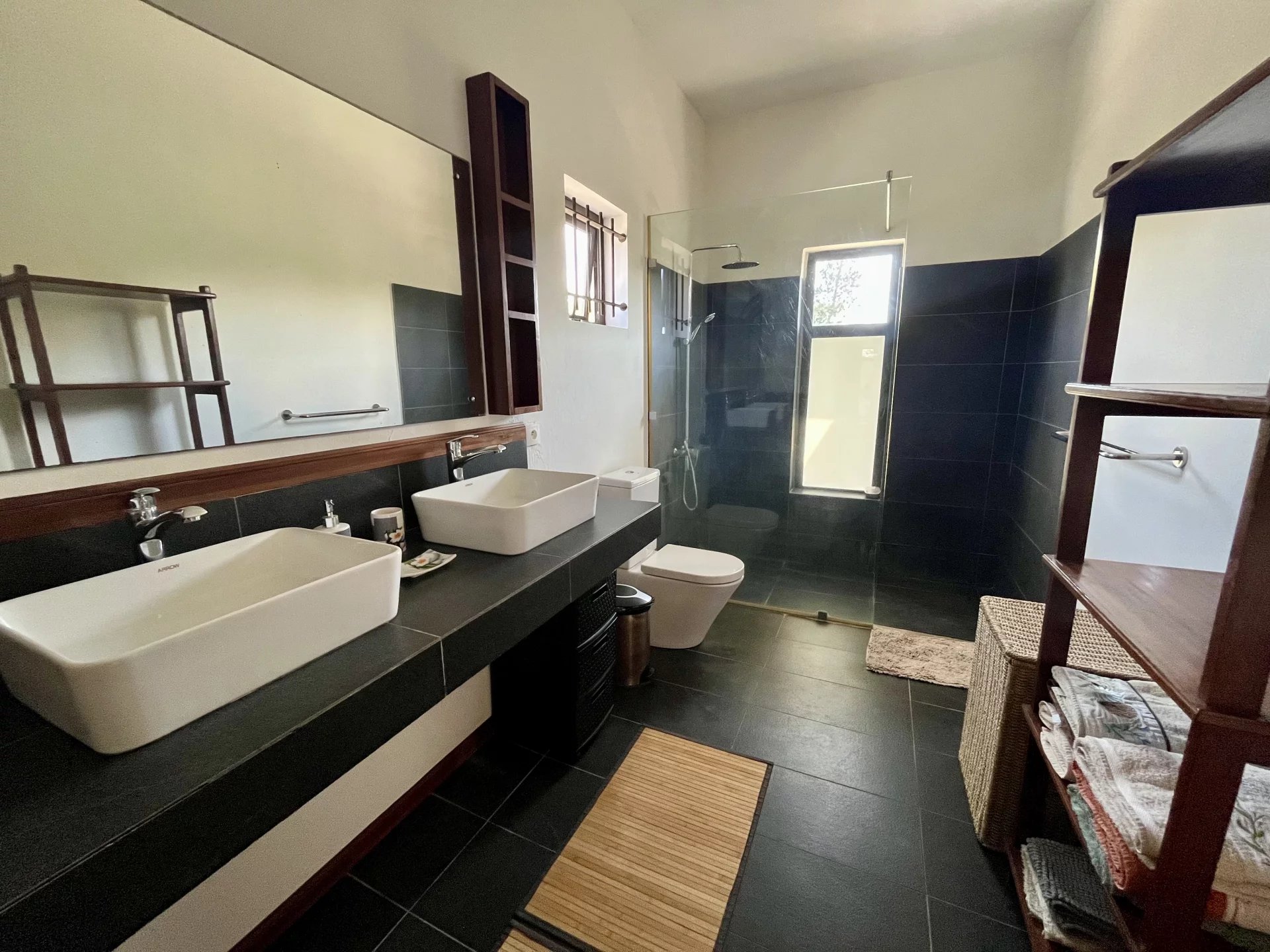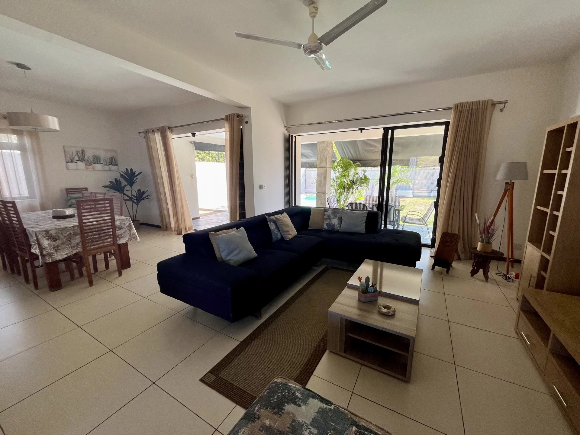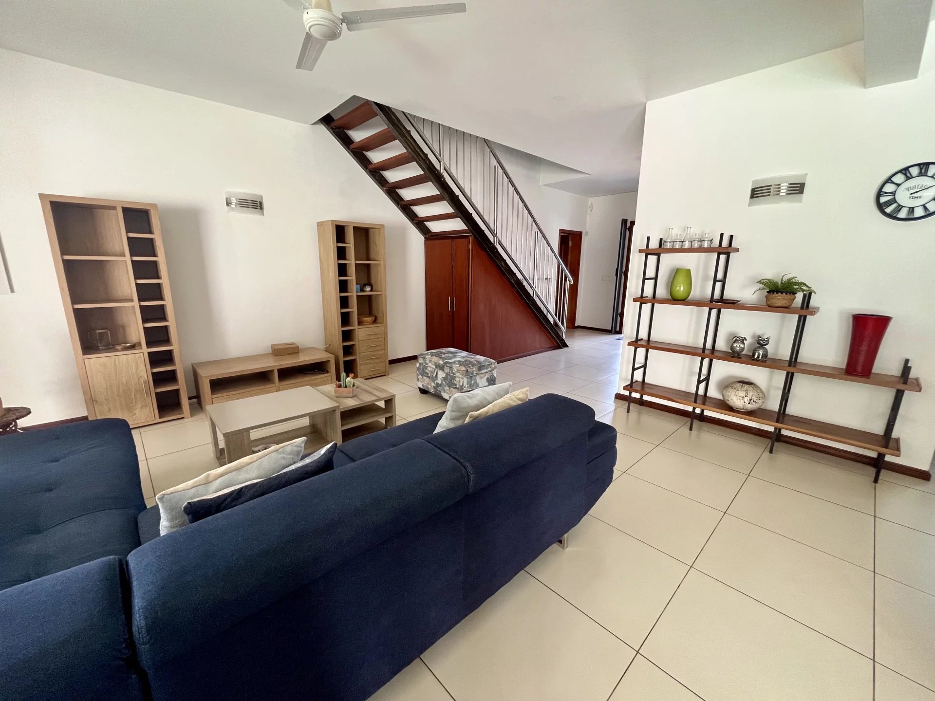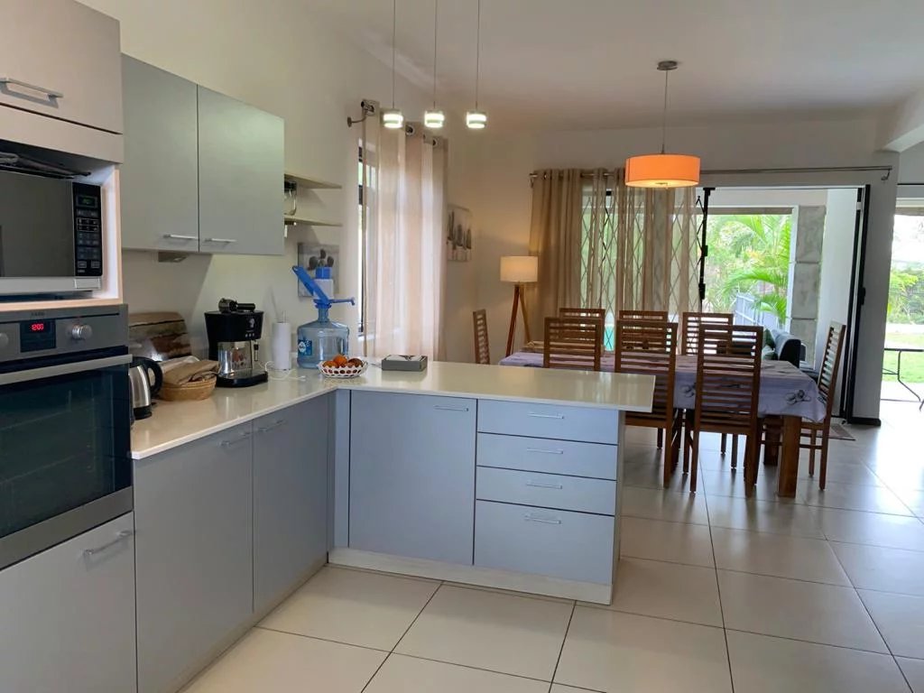 Discover this very pleasant two-storey house, located in the Swan de Péreybère fragment, in a quiet neighborhood. It includes on the ground floor, the living/dining room, the equipped kitchen open to the living room, a beautiful air-conditioned bedroom and its bathroom and a veranda. Behind the kitchen is a blind and outdoor sinks. Upstairs, 3 air-conditioned bedrooms, including the master bedroom with its adjoining bathroom and dressing room. Also, a 2nd bathroom for the other two bedrooms is available. A balcony dominates the pool and the garden. The garden is enclosed, and the pool is secure if necessary. The monthly rent includes the maintenance of the garden and pool, and the services of a housekeeper 3 times a week.