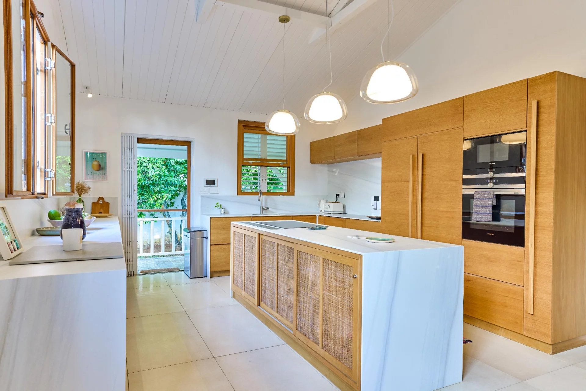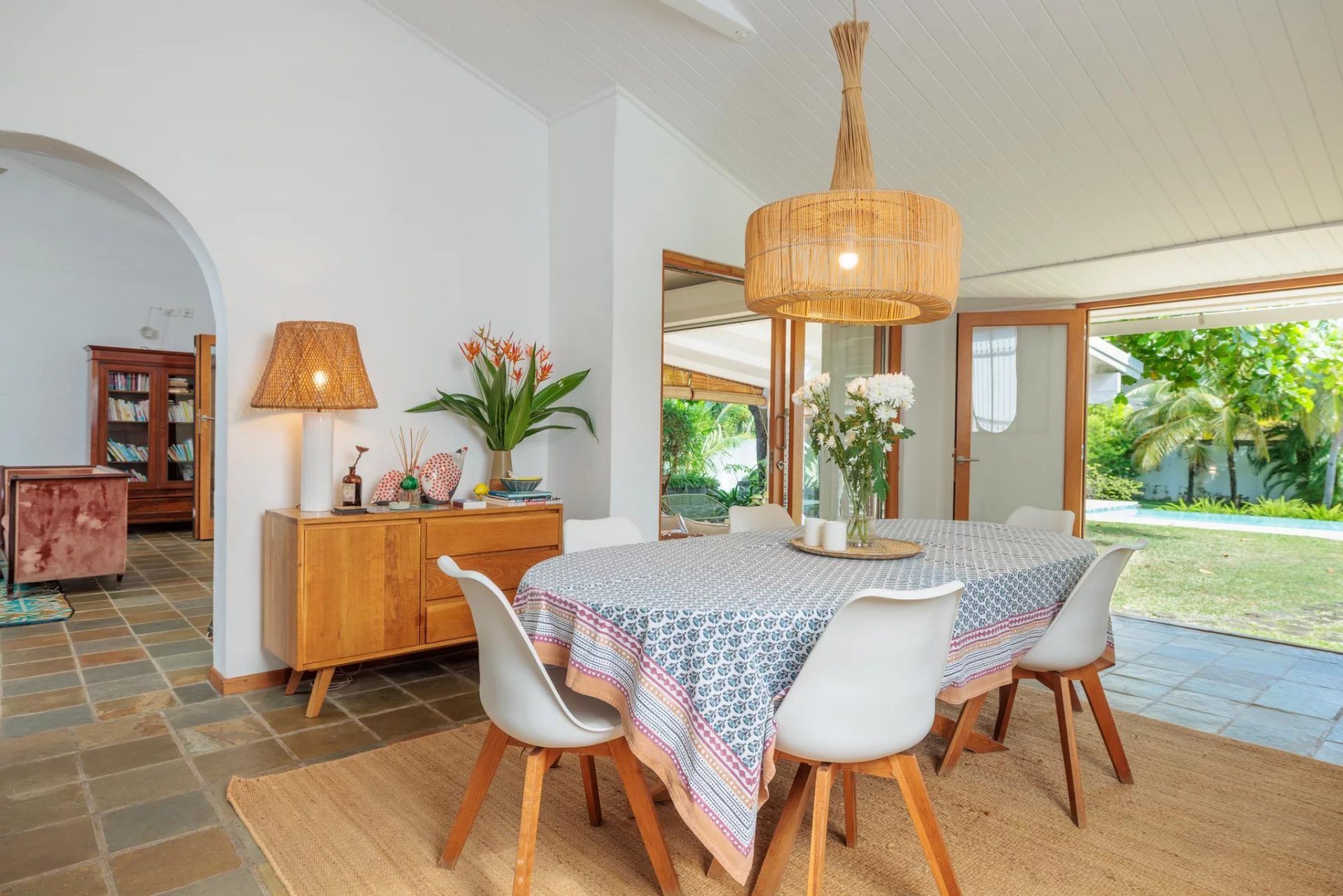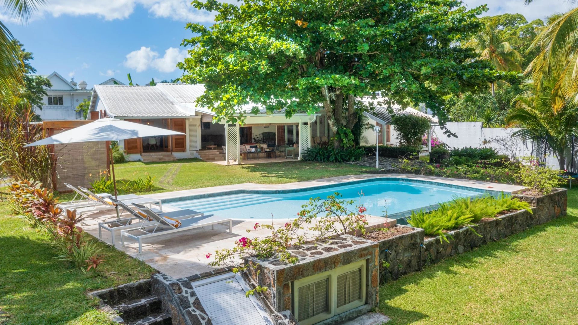 This charming 350 m² family home is situated in a quiet street, just 5 minutes from Péreybère public beach, shops, and restaurants. Nestled in the middle of a 2,800 m² tropical garden with a pool and barbecue area, the villa offers a comfortable and bright living space with a lounge, dining room, spacious traditional kitchen, as well as an outdoor laundry room and storage area. The 4 bedrooms are fully air-conditioned, with 3 bathrooms and an office. The 4th bedroom is independent of the main house.