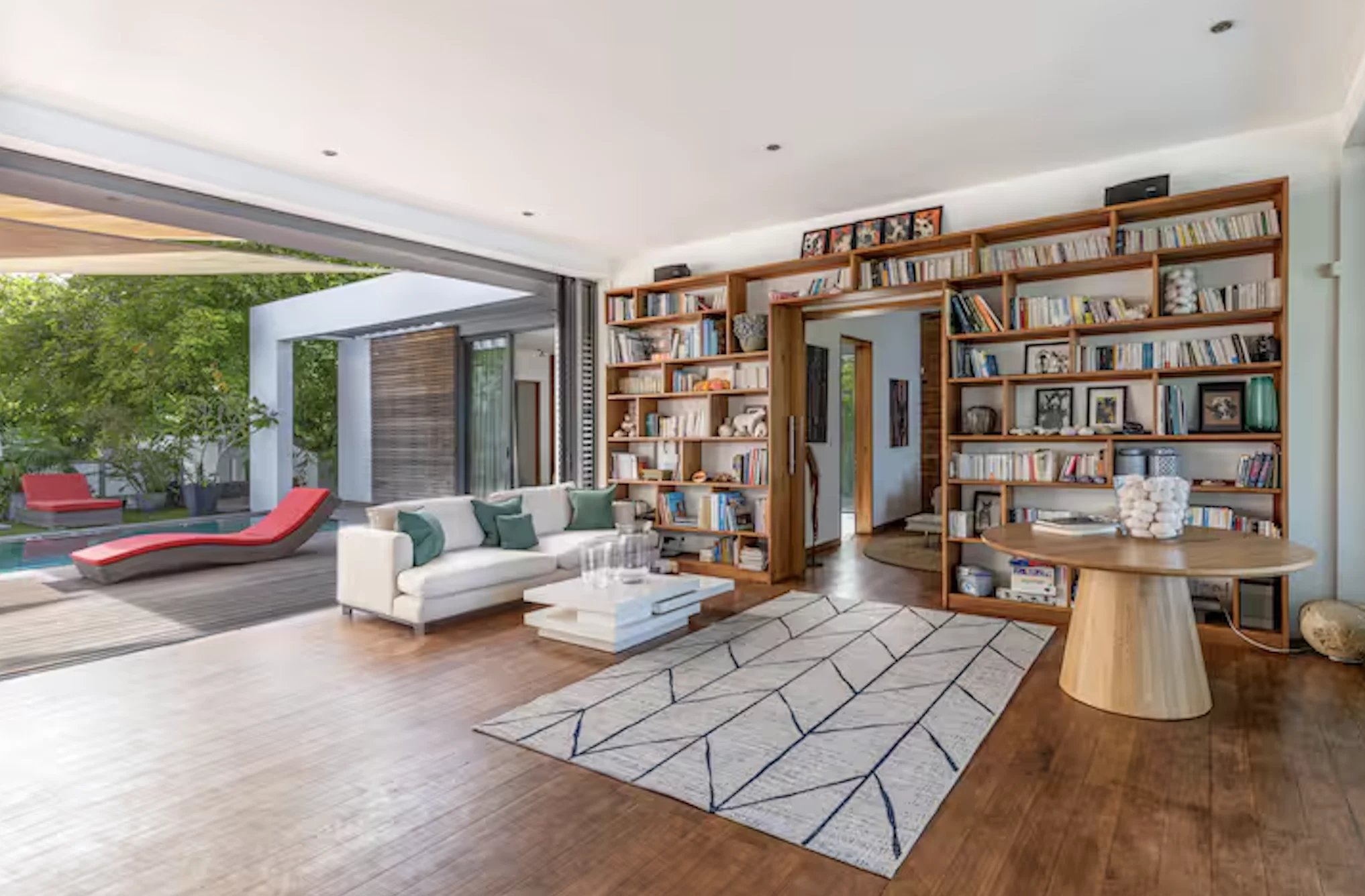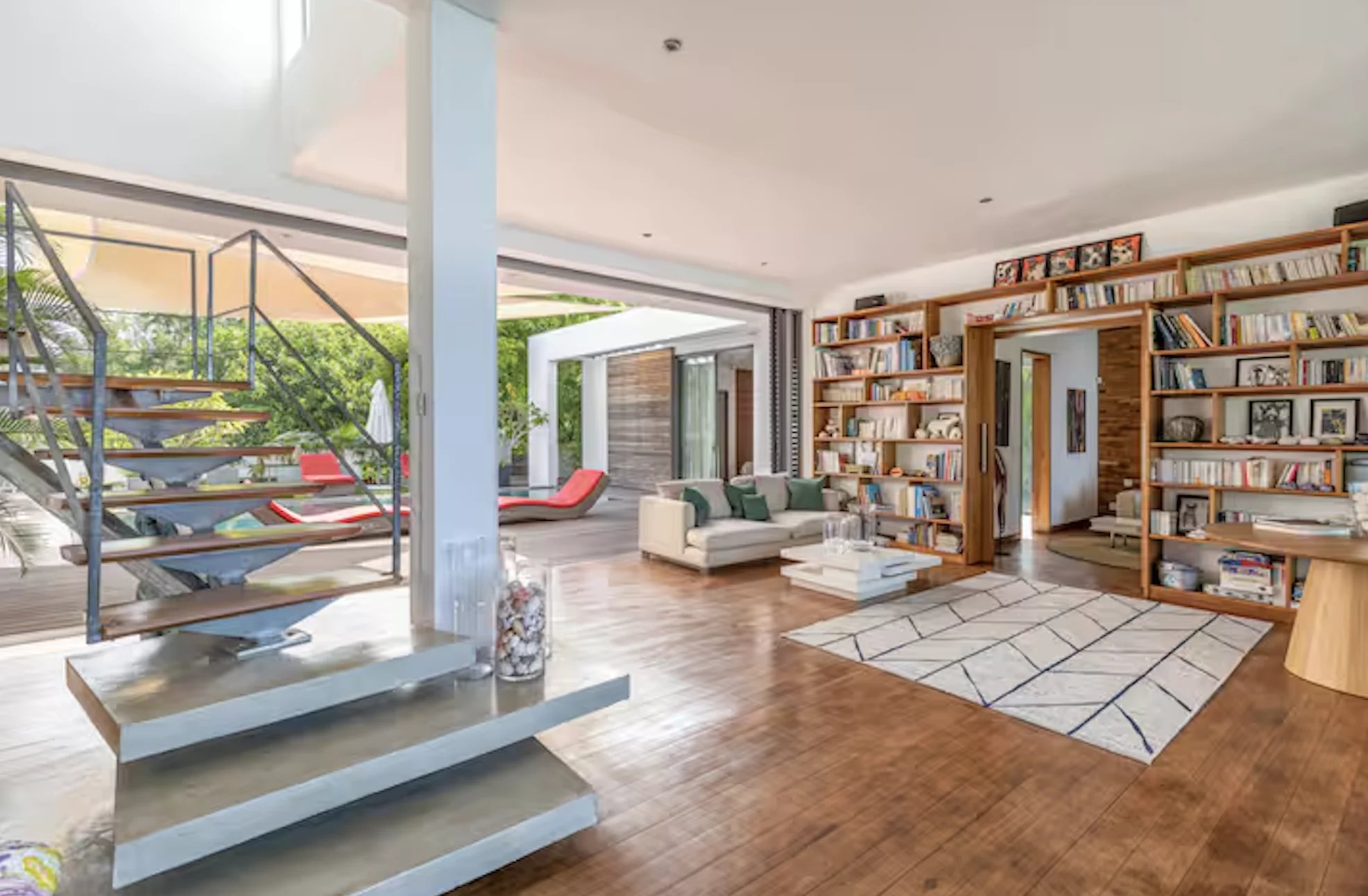 Situated on a plot of approximately 2,000 m², the villa spans nearly 600 m² of living space, including spacious terraces, and features remarkable architecture that blends seamlessly with its surroundings. The design was created by French architect Bérengère Croidieu, renowned for contemporary works that emphasize light, volume, and a strong connection to nature.