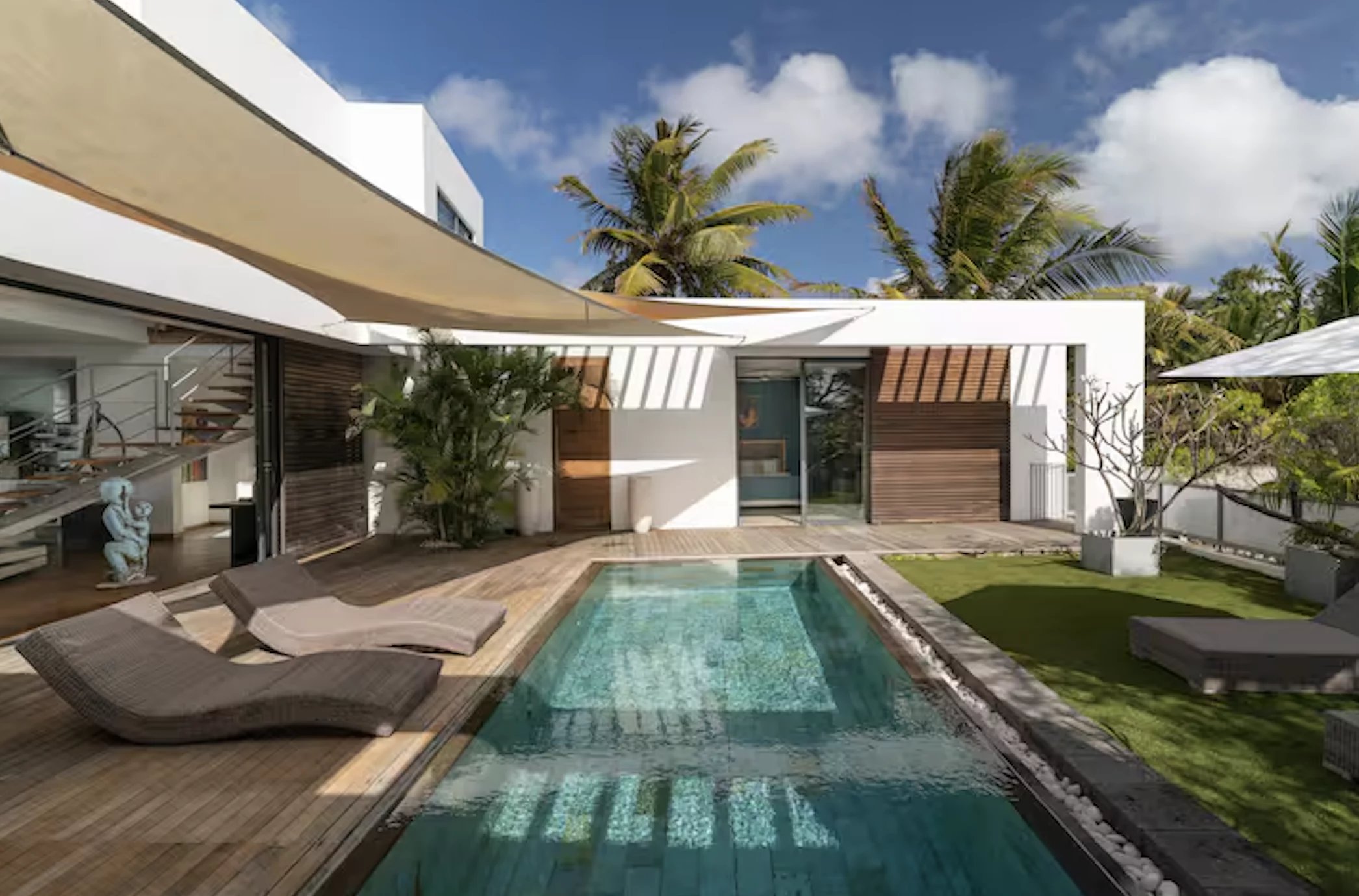 Located on the pristine coastline of Poste Lafayette, this contemporary beachfront villa offers a unique living experience in an exceptional natural setting on the east coast of Mauritius.