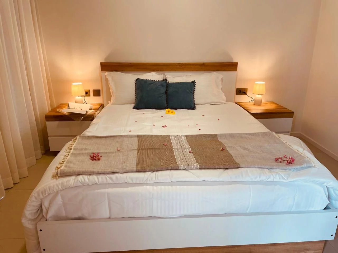 It consists of a bright living room that opens onto a private balcony with a magnificent view of the west, the mountains, and a glimpse of the sea.