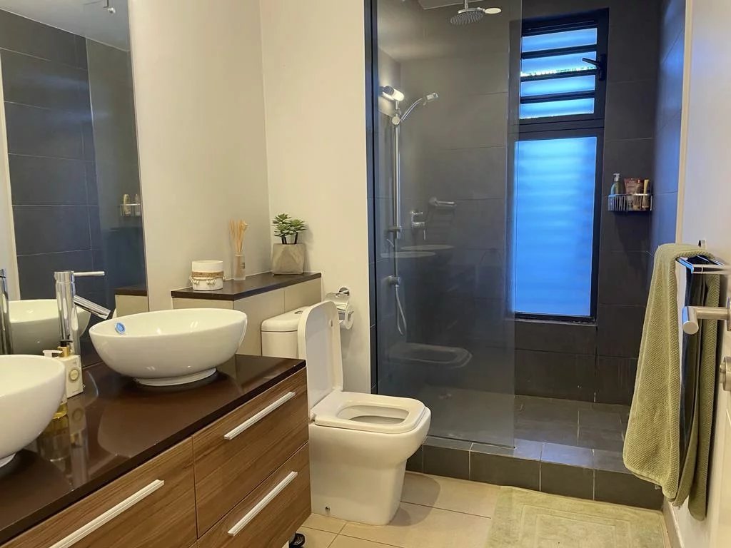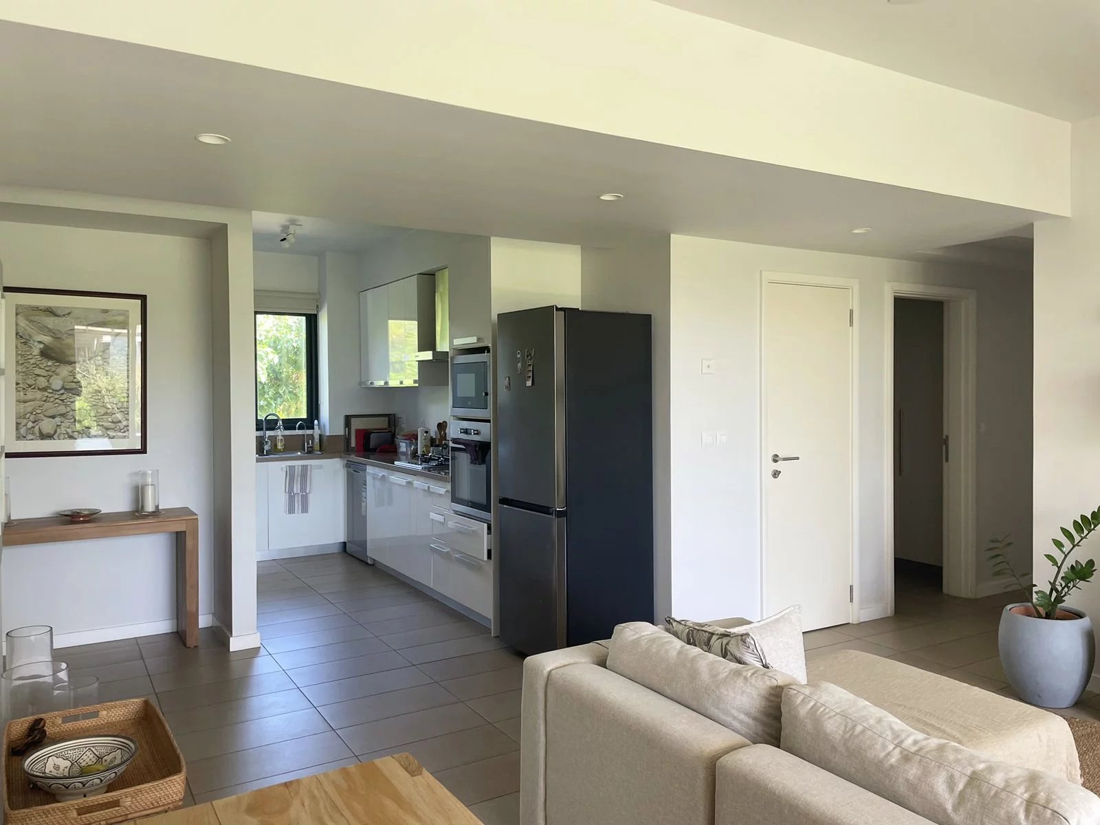 It comprises an open-plan kitchen, living room and dining room with sliding windows overlooking the covered veranda. The three bedrooms are beautifully decorated.Two bedrooms have a king size bed as one bedroom has two twin beds. One of them has an en-suite bathroom, while the other two share a shower room and a rest room.
