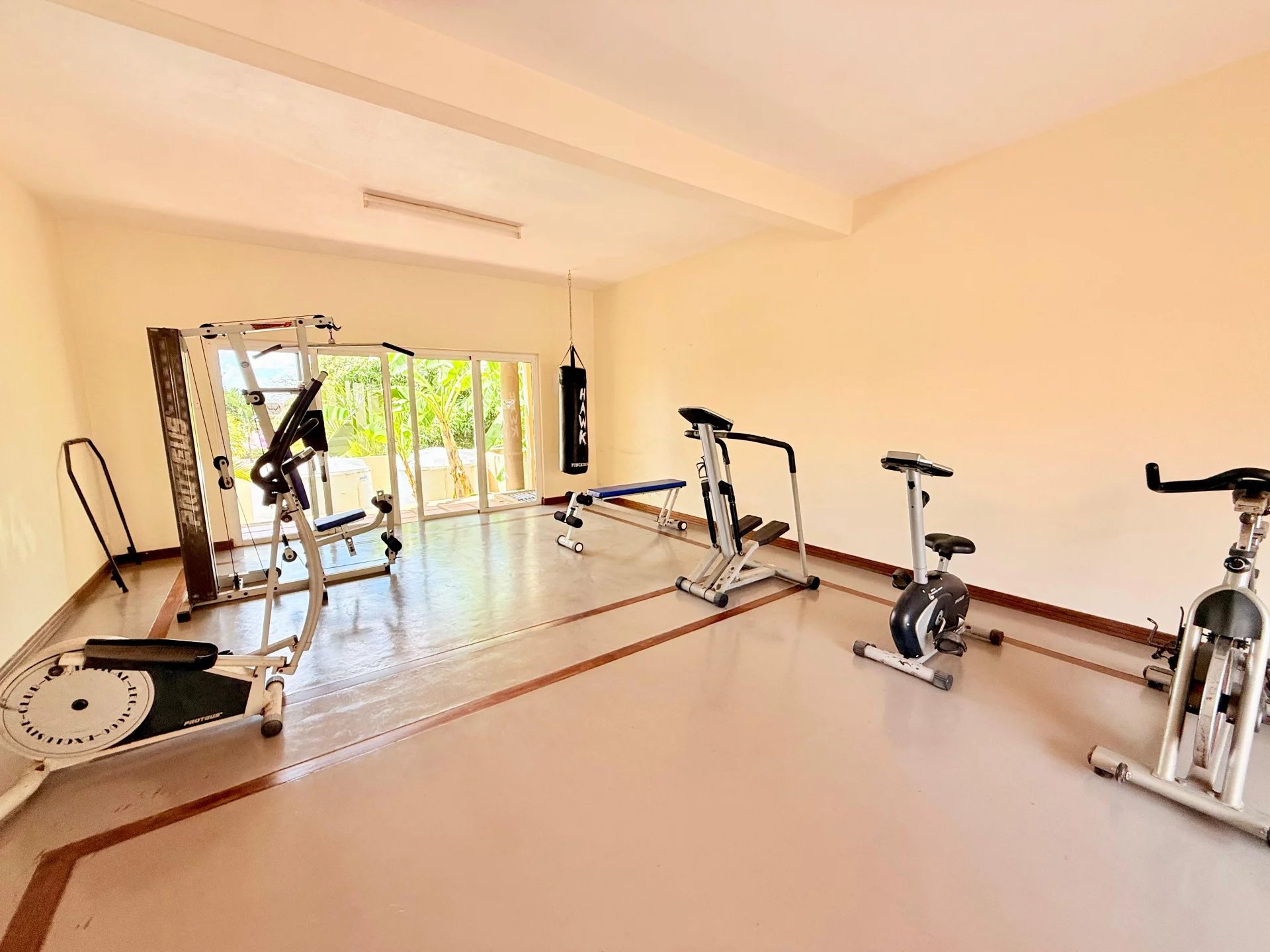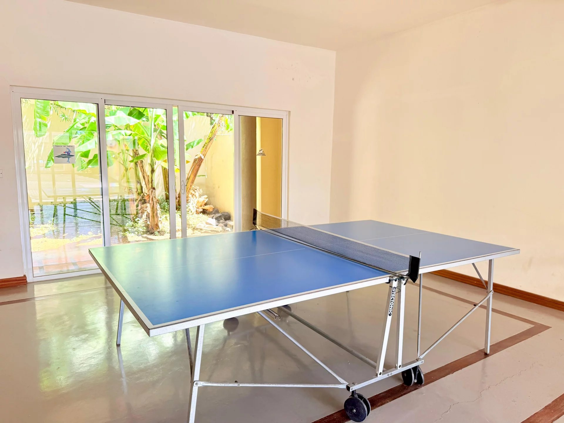 Outside, a large private fenced garden ensures peace and privacy, also perfect for a small pet. The residence, with only ten exclusive units, offers residents one of the largest swimming pools in Tamarin, a vast landscaped garden ideal for entertaining, a gym, and a game room with table tennis. A closed garage and visitor parking spaces add extra convenience.
