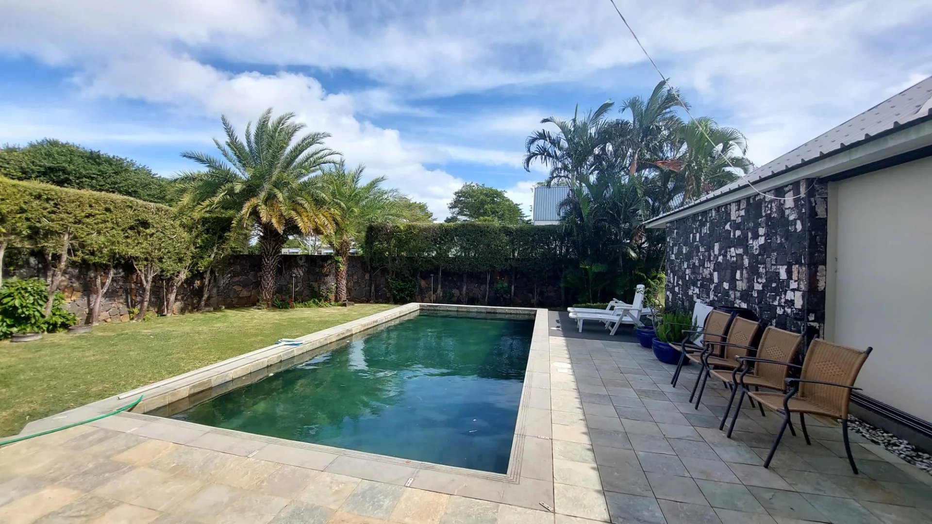 The villa also features a double garage. The landscaped garden is completely enclosed, offering perfect privacy to enjoy convivial moments in the fresh air. Pets are welcome. Ideally located, the villa is just 1 km from Balaclava beach, and 5 minutes from several 5-star hotels.