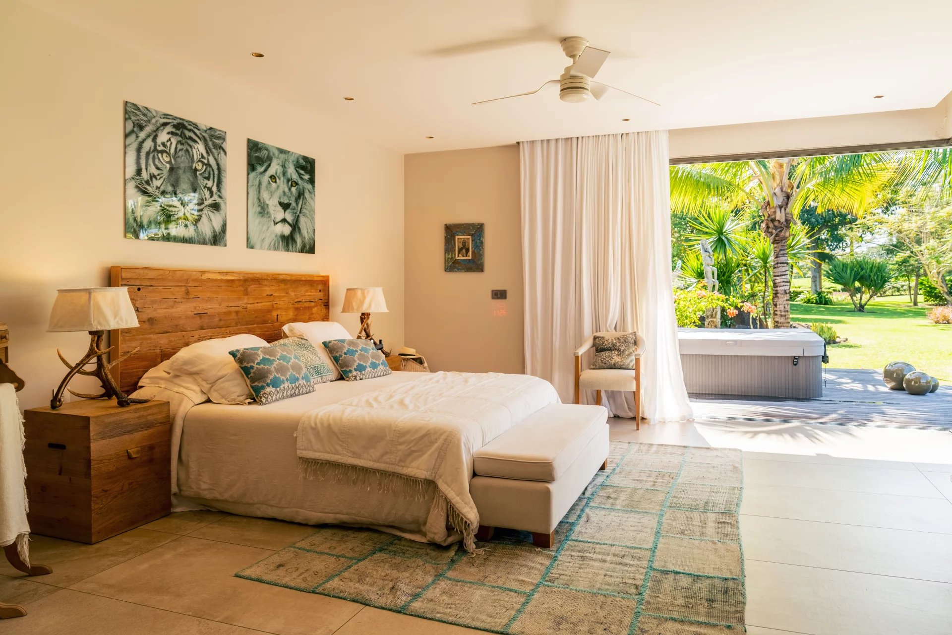 With its 6 bedrooms, including 5 master suites and a workshop area, spread over two levels, it offers ample space and plenty of privacy. The villa features high-end materials, a private jacuzzi, and a comprehensive water filtration system.