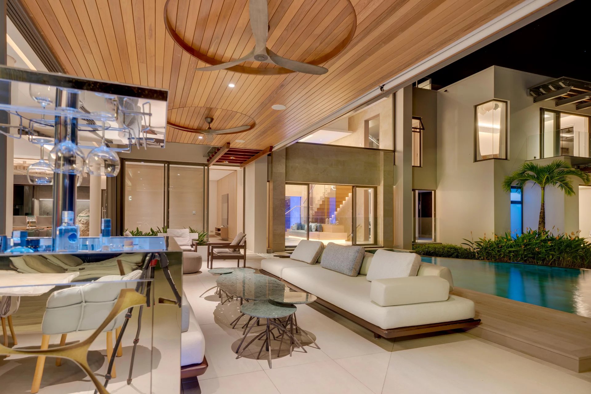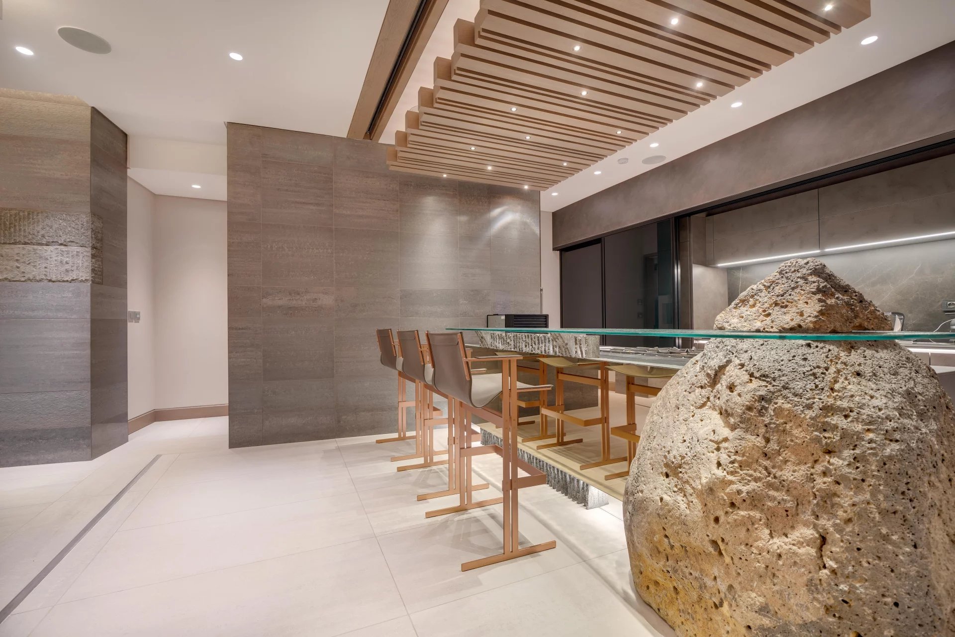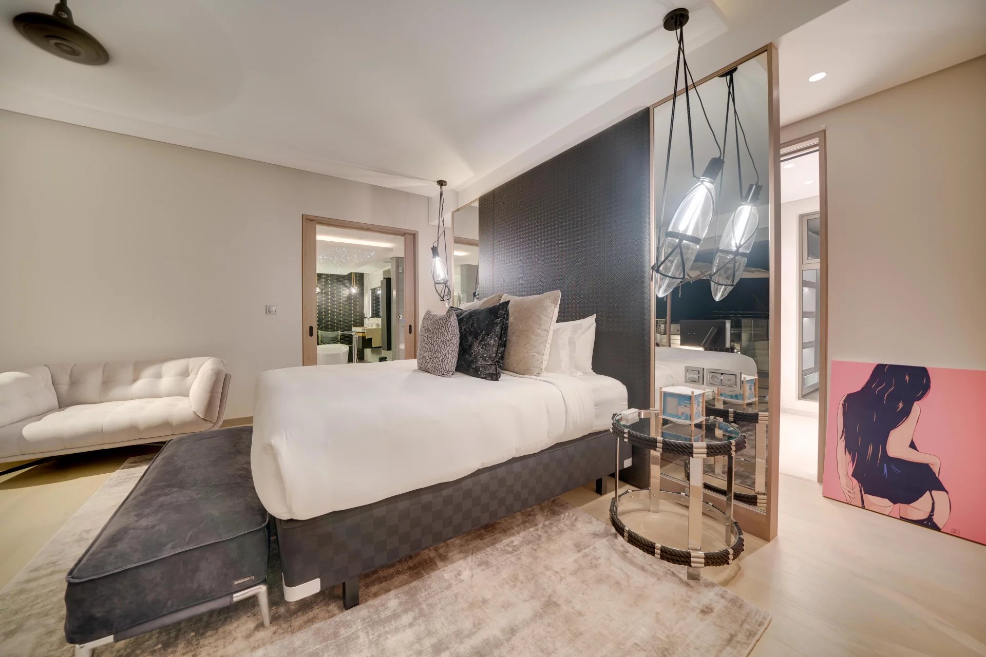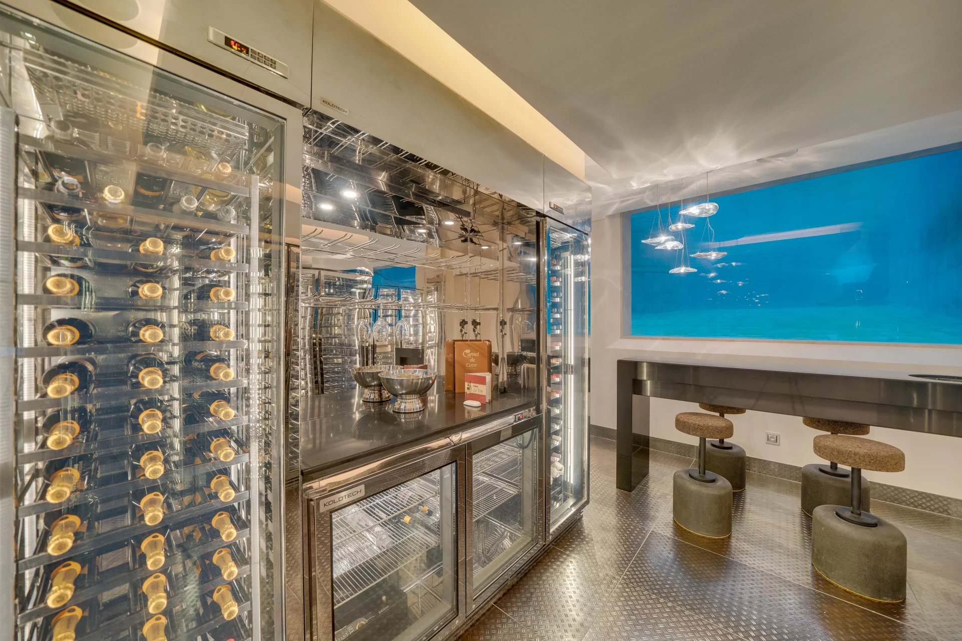Each of the five en-suite bedrooms comes with a walk-in closet and a luxurious bathroom. The basement is dedicated entirely to wellness and entertainment, including a gym, a hammam, a wine cellar with underwater pool views, and a cinema room convertible into a nightclub. The master suite boasts two private jacuzzis on its terrace.