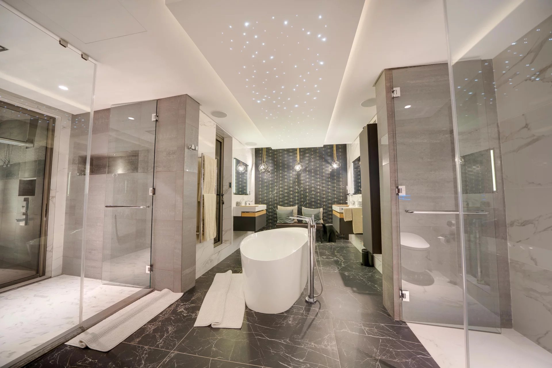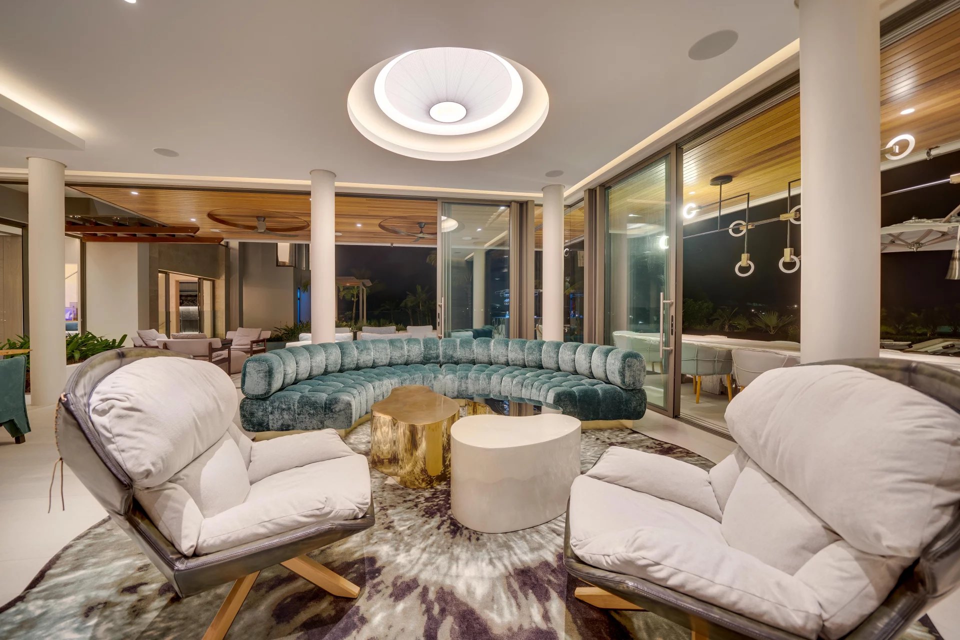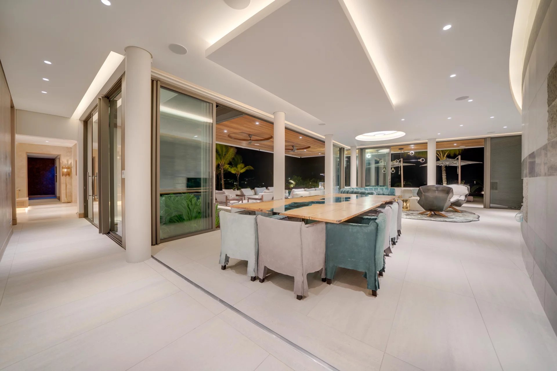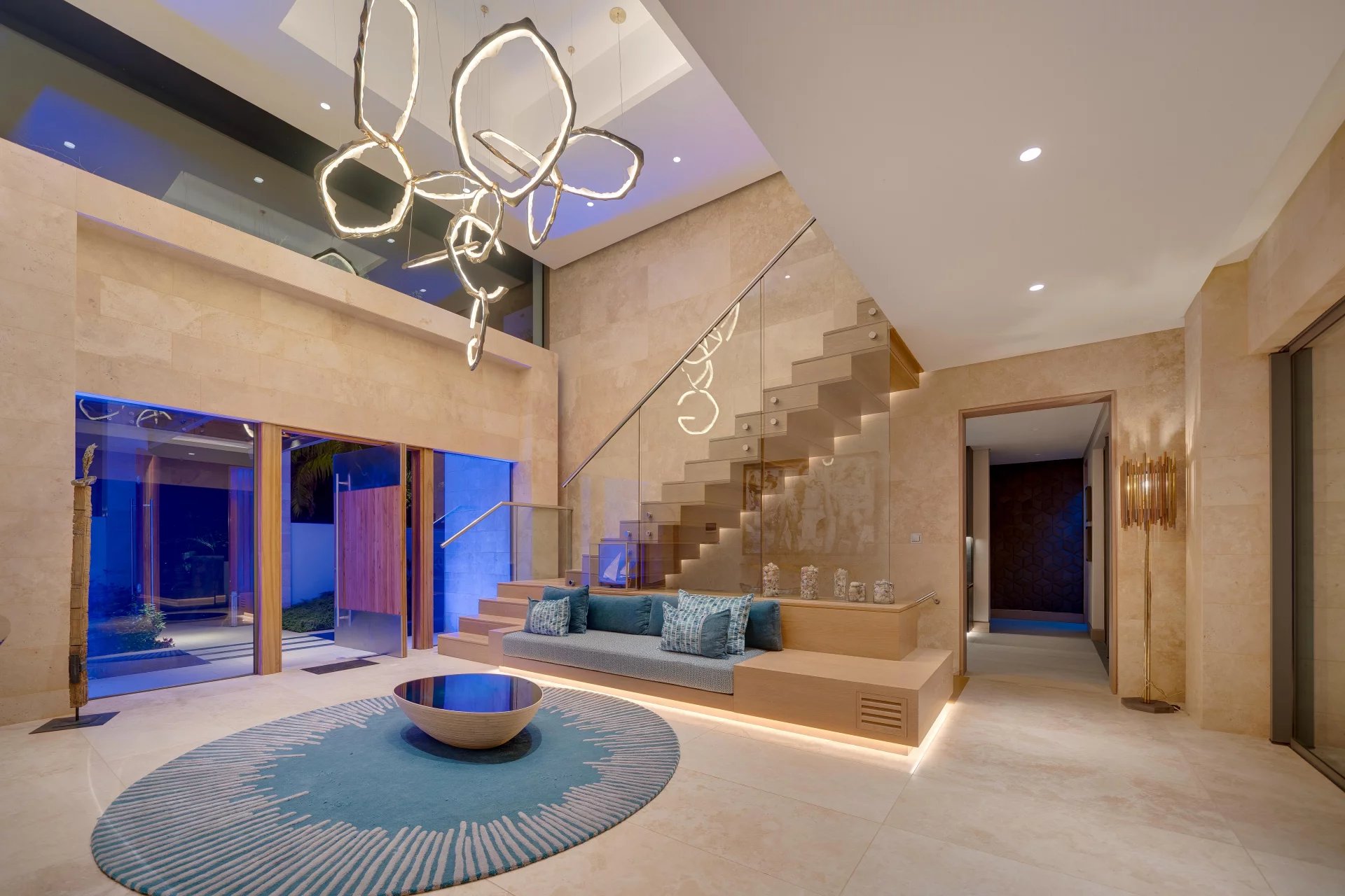 Each of the five en-suite bedrooms comes with a walk-in closet and a luxurious bathroom. The basement is dedicated entirely to wellness and entertainment, including a gym, a hammam, a wine cellar with underwater pool views, and a cinema room convertible into a nightclub. The master suite boasts two private jacuzzis on its terrace.