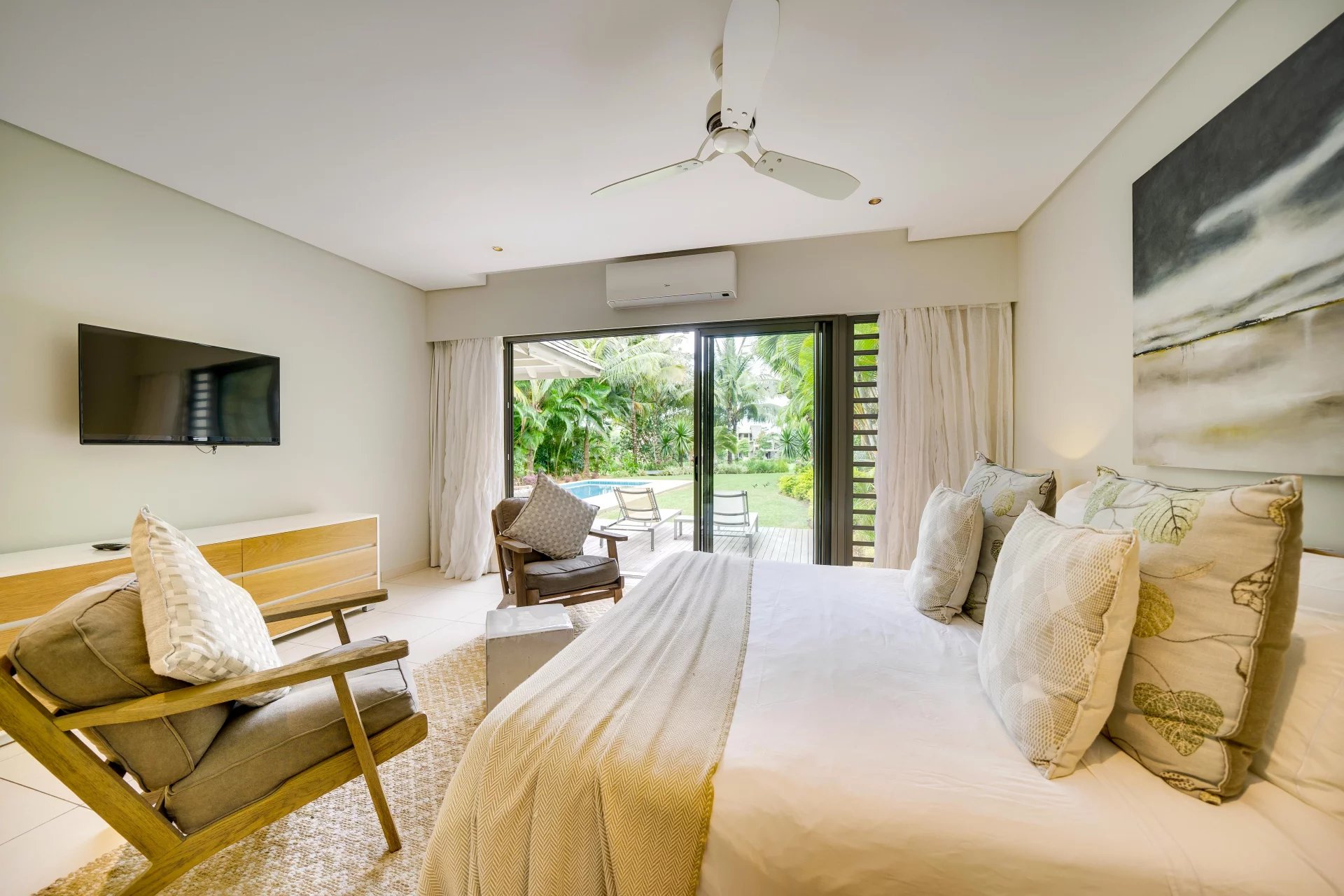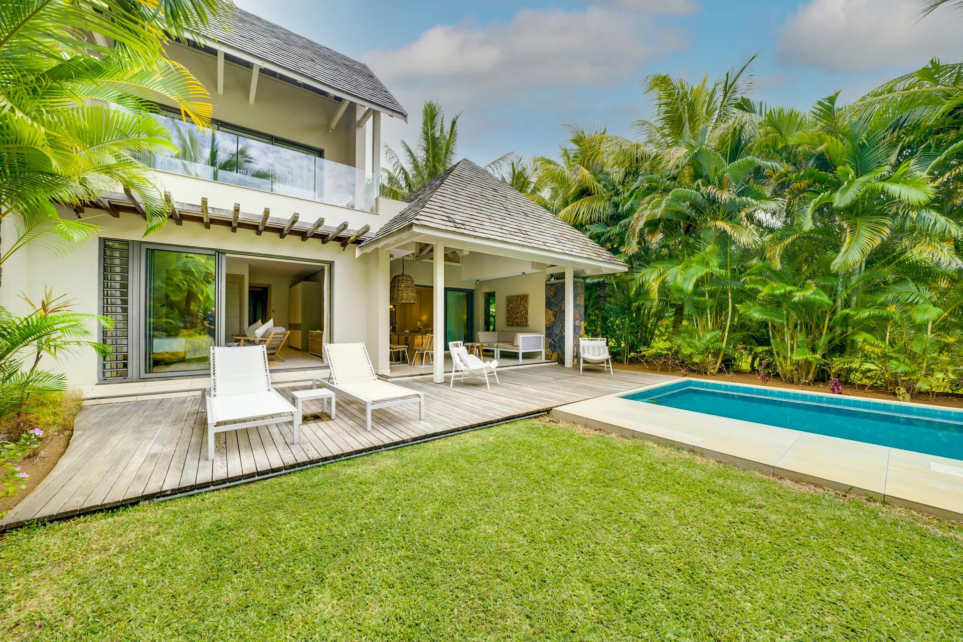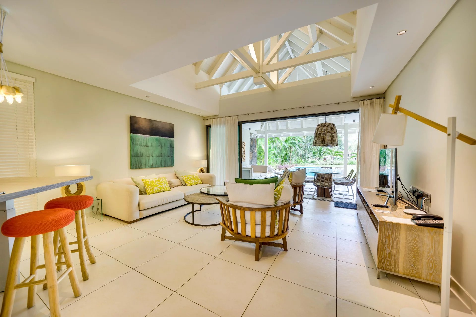 From the living room, the villa opens onto a beautiful terrace with large sliding doors. This terrace opens onto a beautiful garden with swimming pool, all overlooking the golf course. A villa close to restaurants, spa, beach and golf. An ideal location with quality amenities!