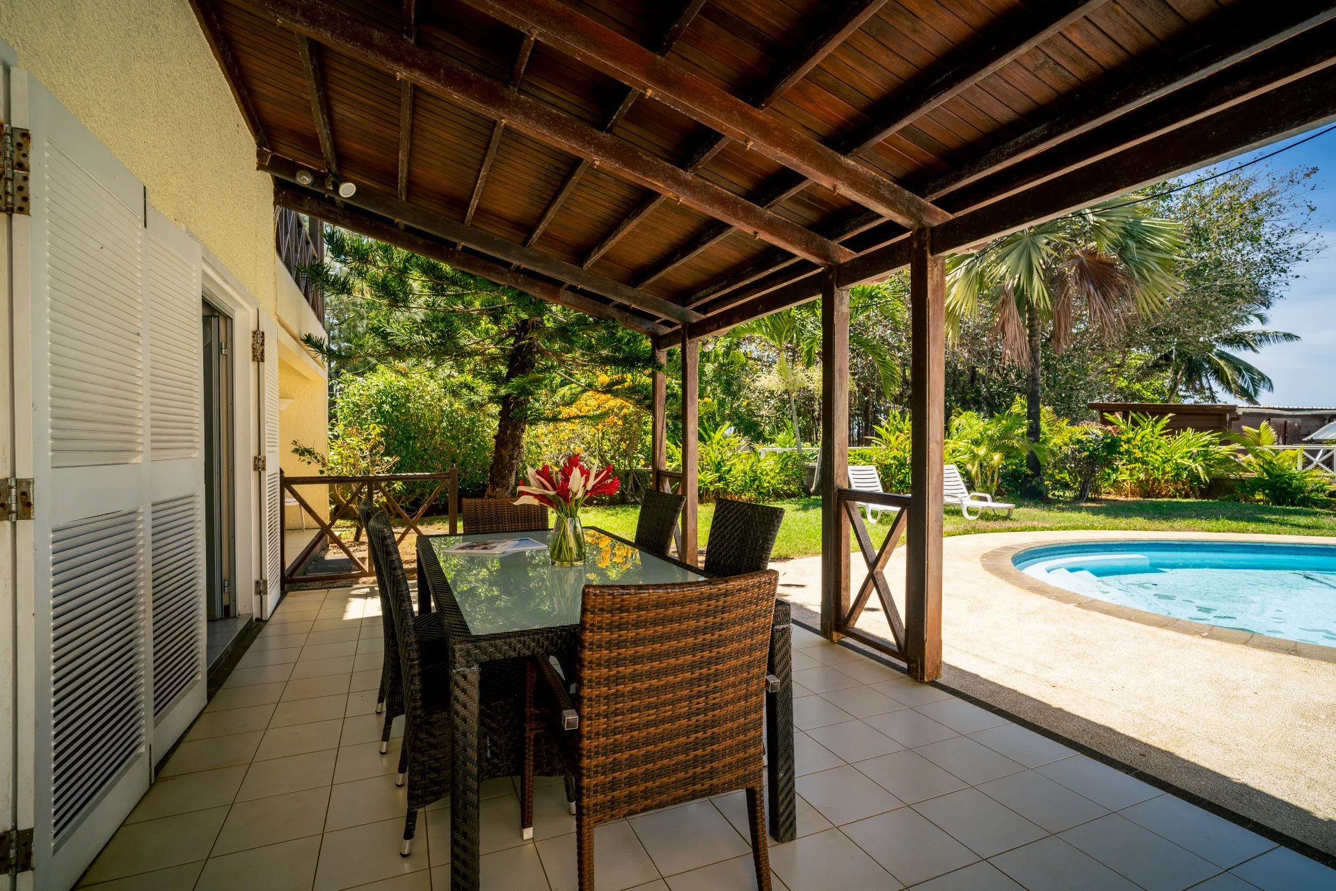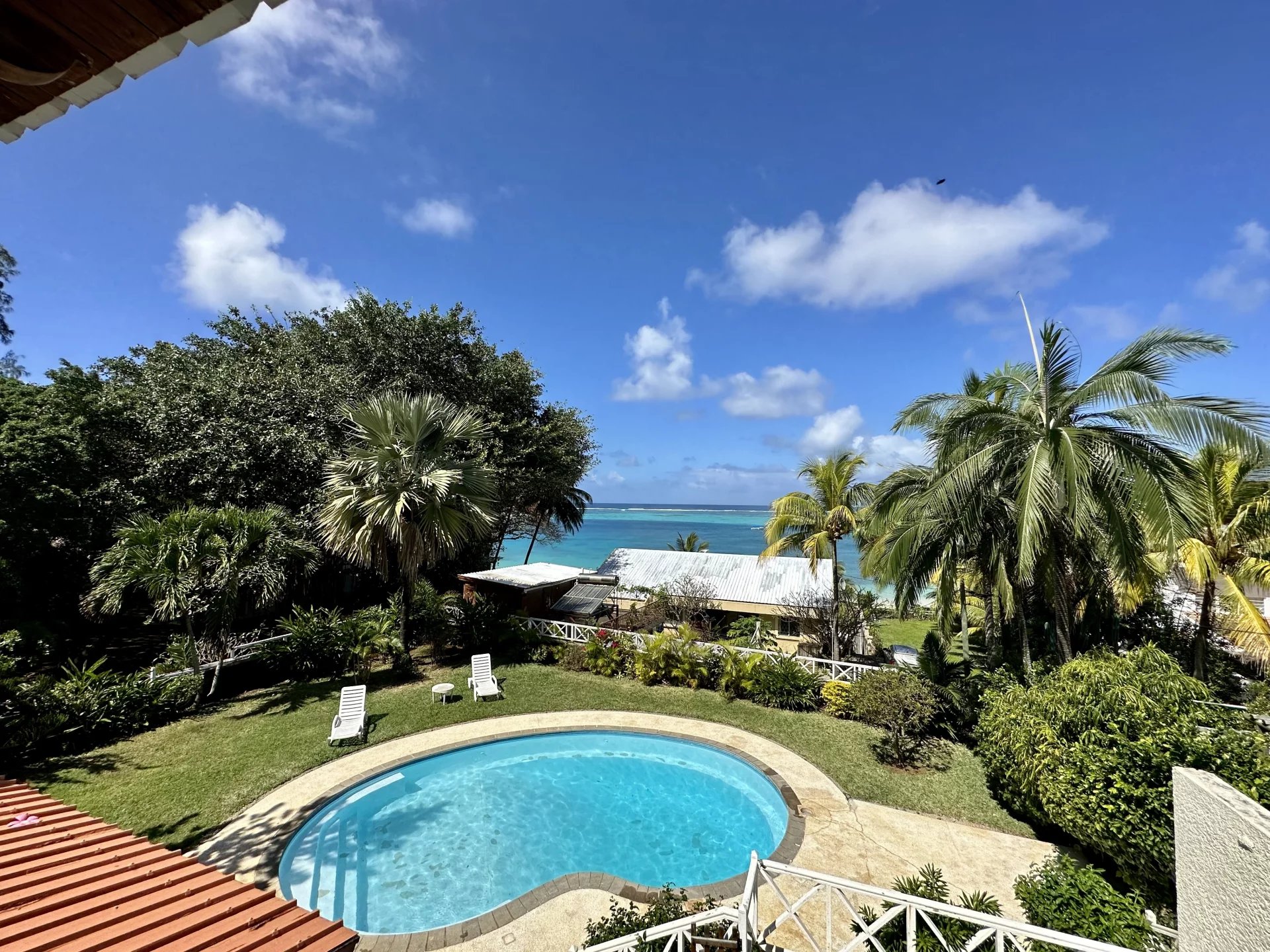 Located in Blue Bay in a small housing estate with caretaker, in the second position with a sea view and the island of 2 cocos, nestles a spacious house 50 meters from the beach.