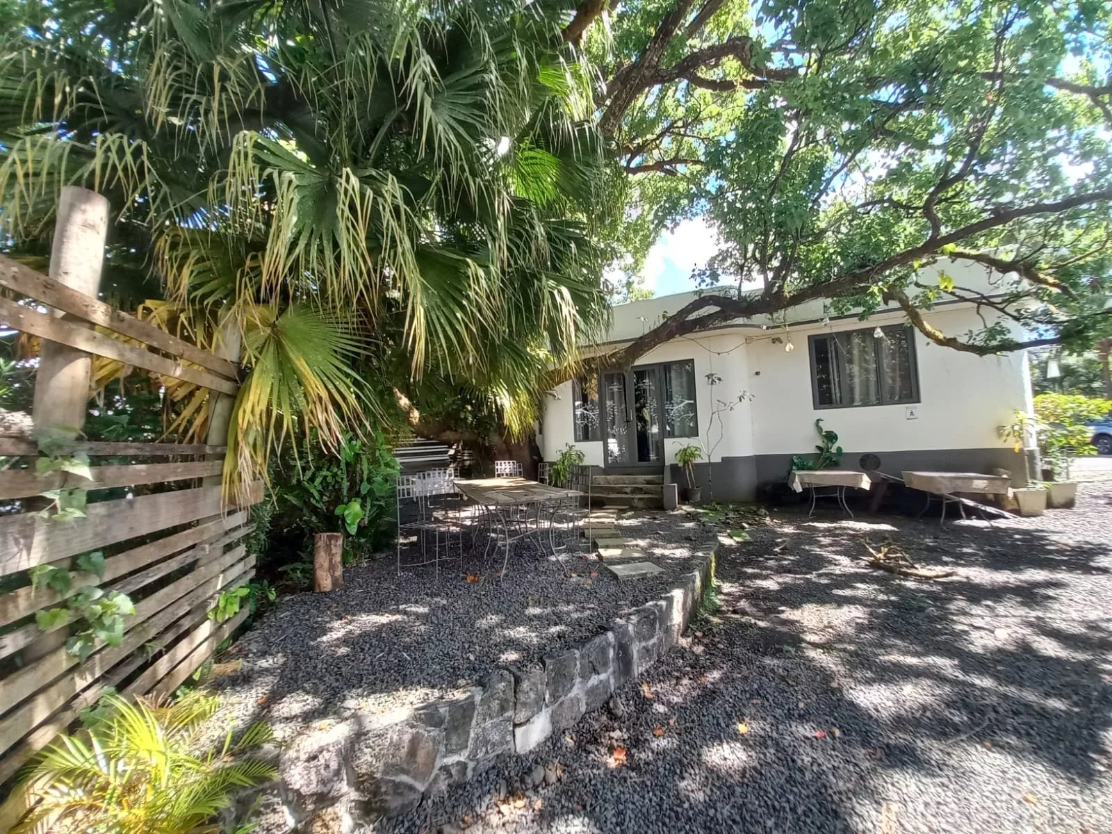 The front house (200 m²) is made up of a beautiful creole varangue with its wrought iron balustrade and ashlar stones. It comprises an entrance hall, a living room, a dining room, an office or TV room, a conventional kitchen with an independent entrance. There are 3 bedrooms (2 with independent access).