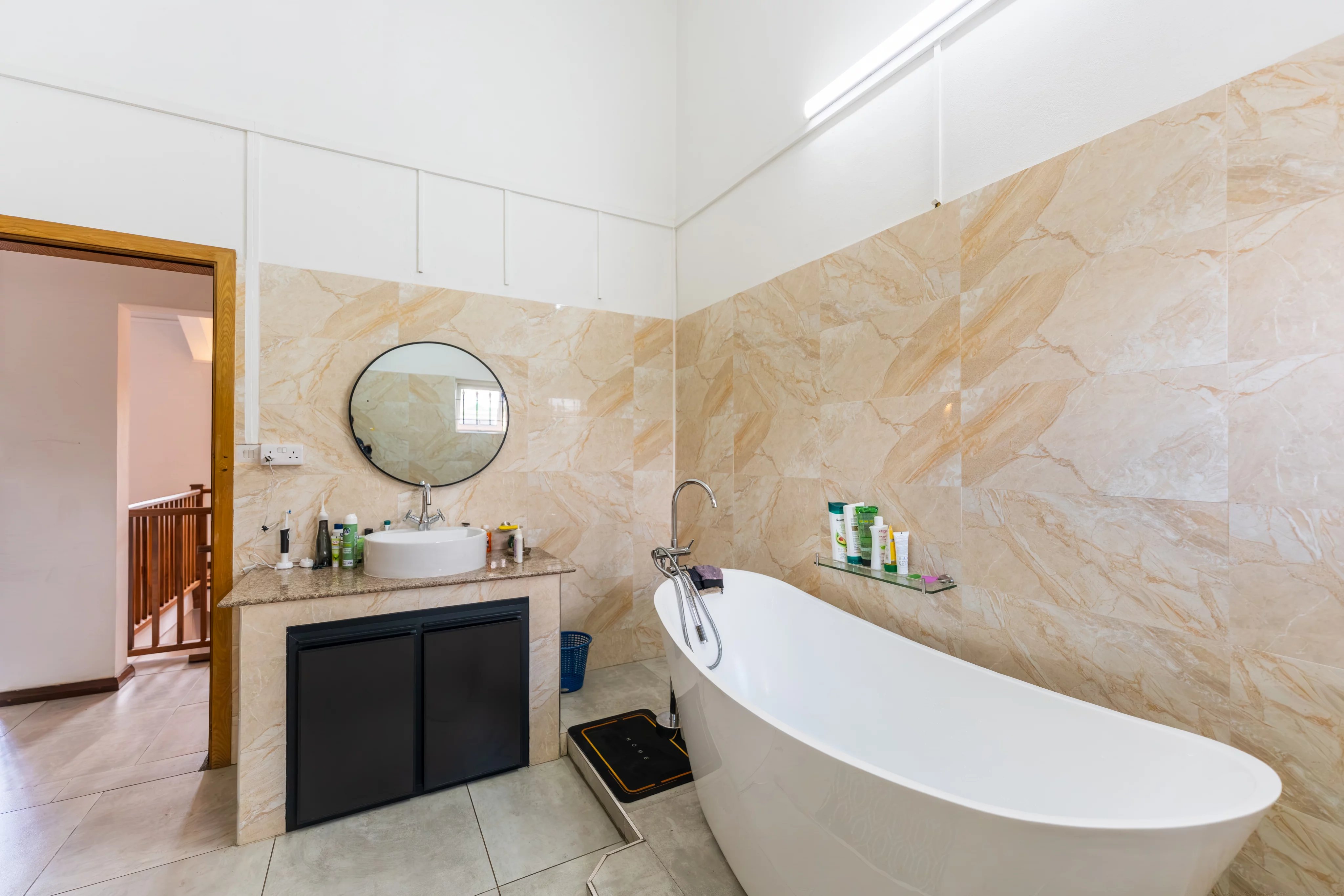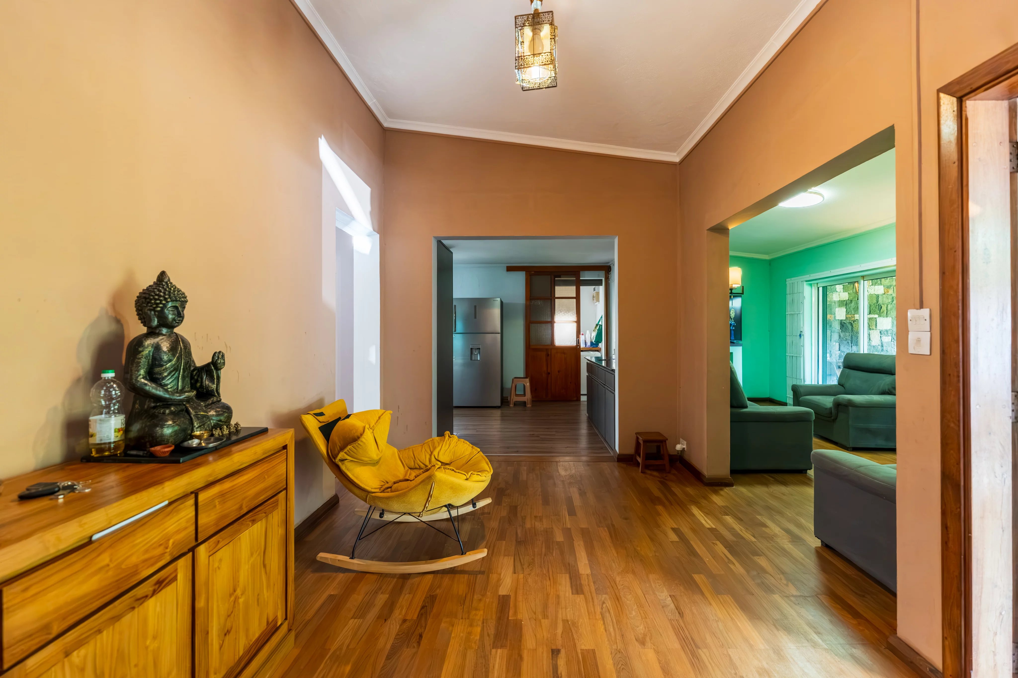The master en suite bedroom opens onto the rear garden. A study or prayer room completes this level.