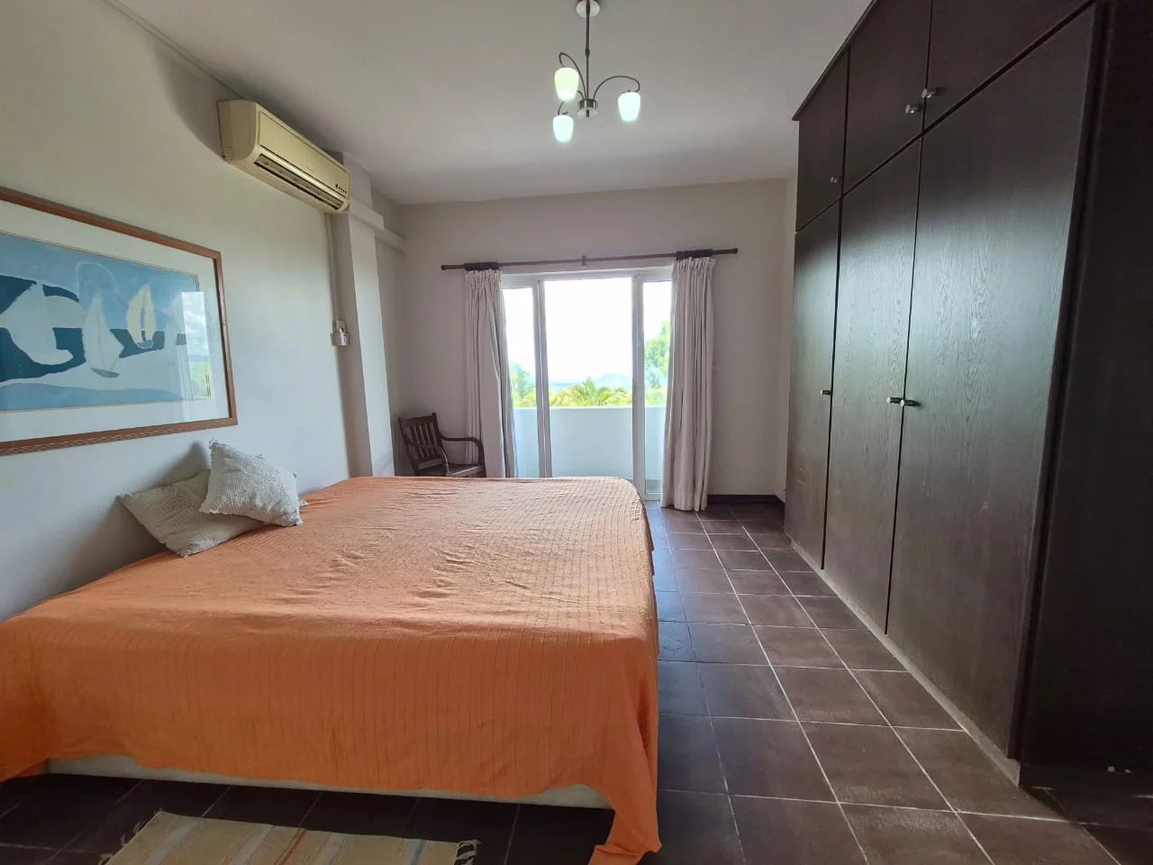 The apartment offers three air-conditioned bedrooms with built-in wardrobes, including a master with en-suite shower room. The two other bedrooms share a bathroom.