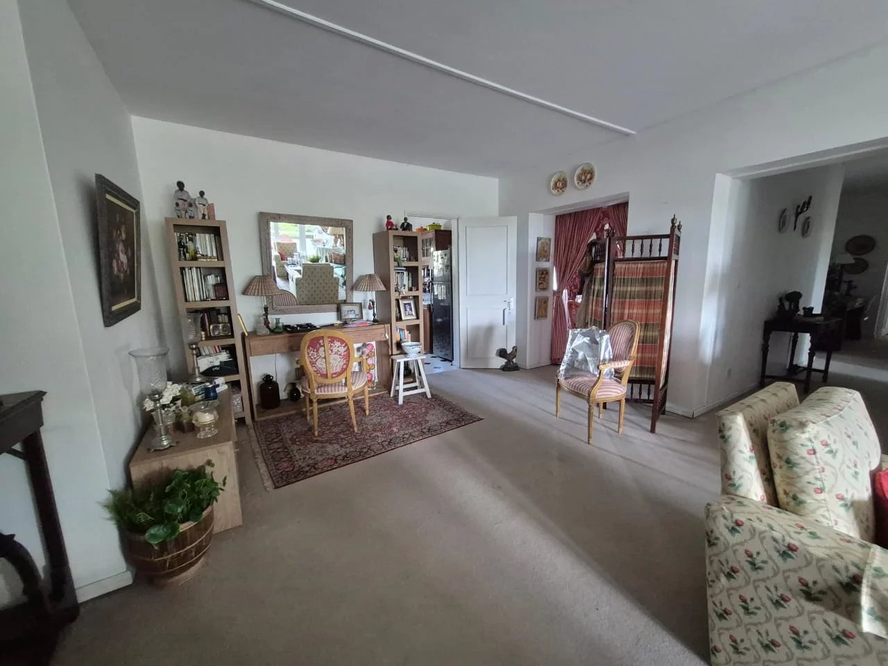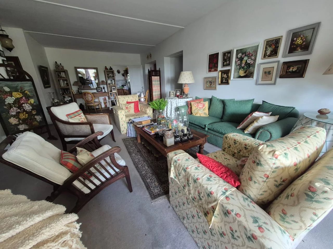 Situated in a luxurious residential complex with a garden, this 147.39 m² apartment features a spacious living room with a study area, a dining room in an alcove, and a lounge that opens onto a balcony offering unobstructed views of the garden below.