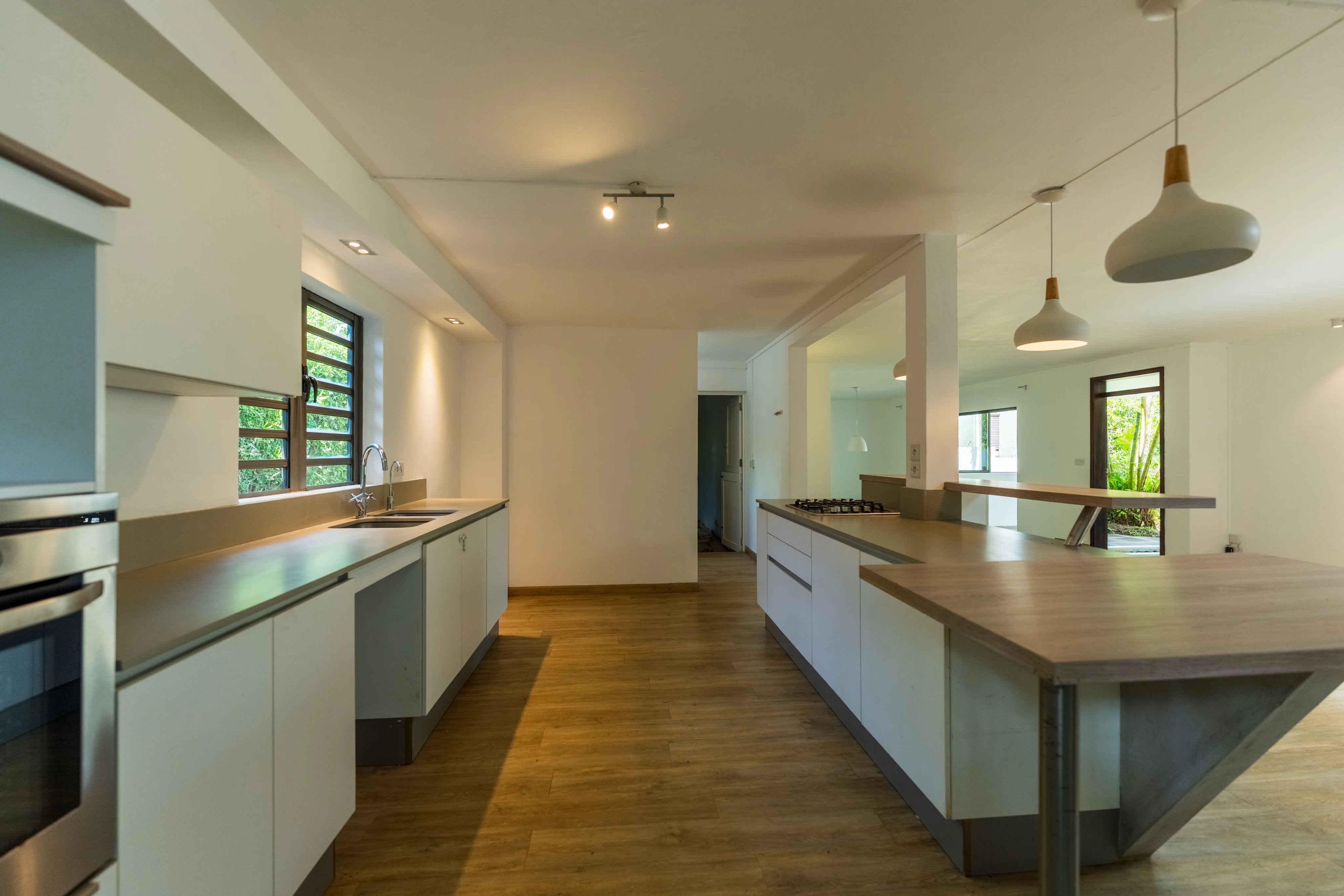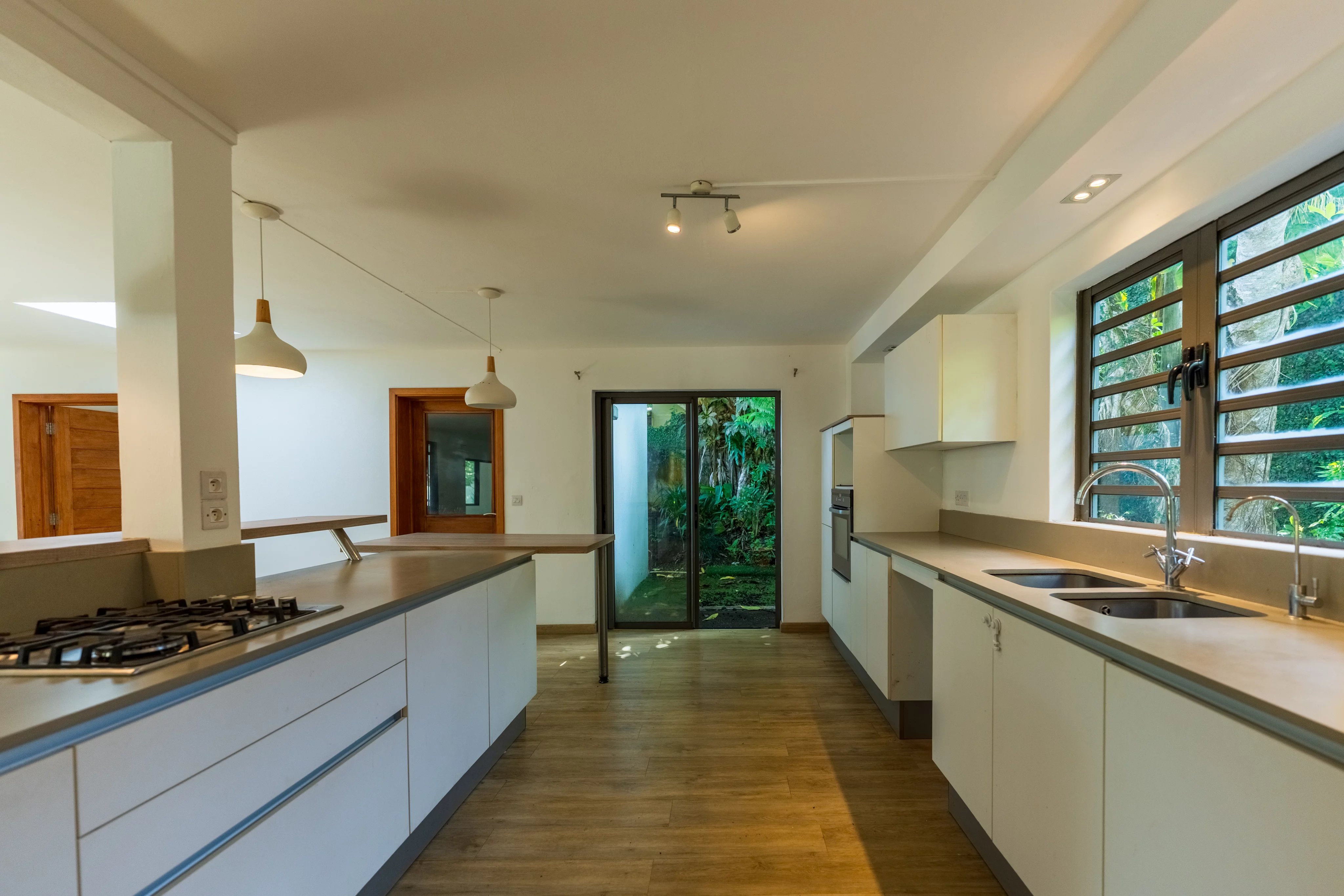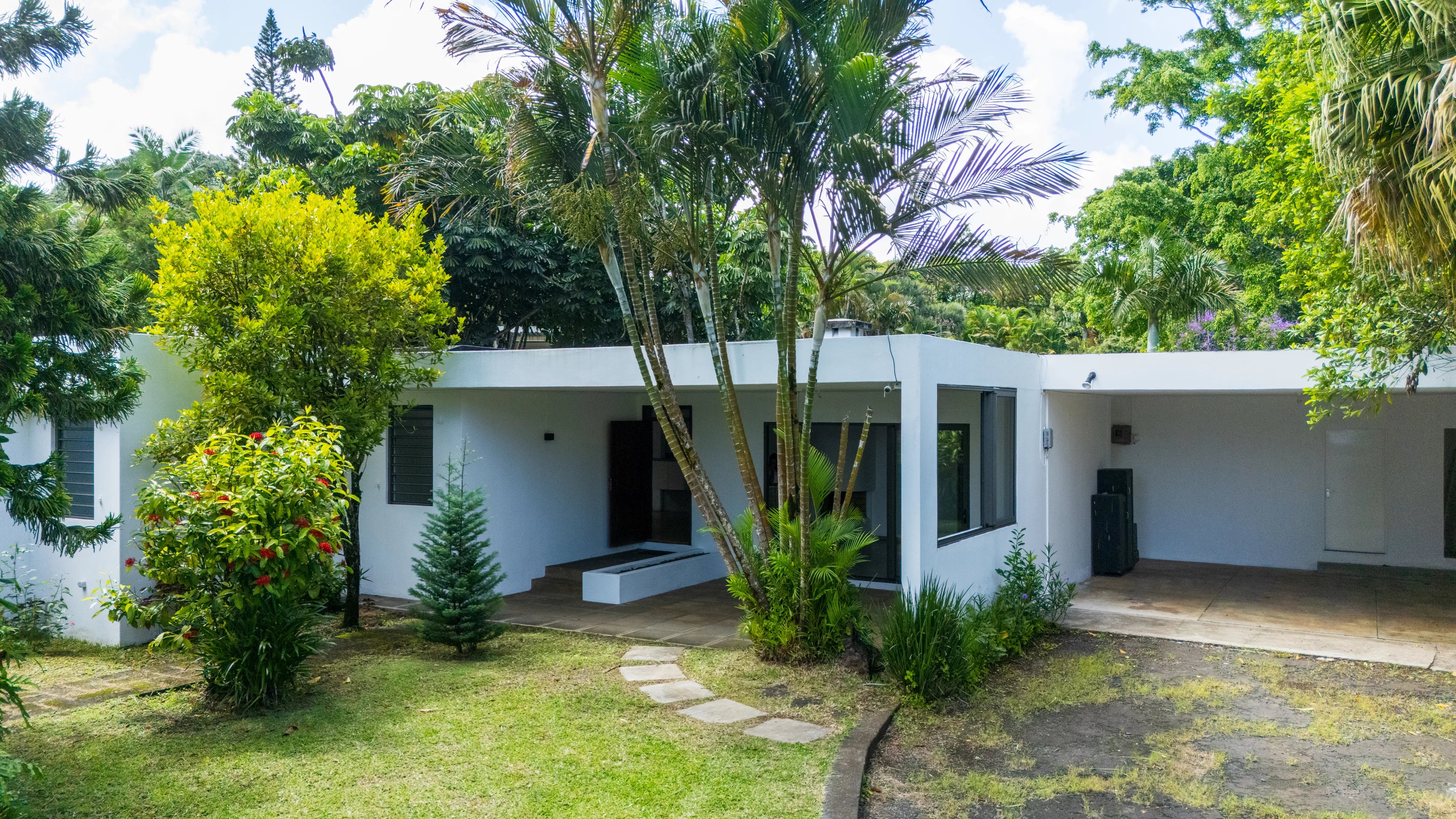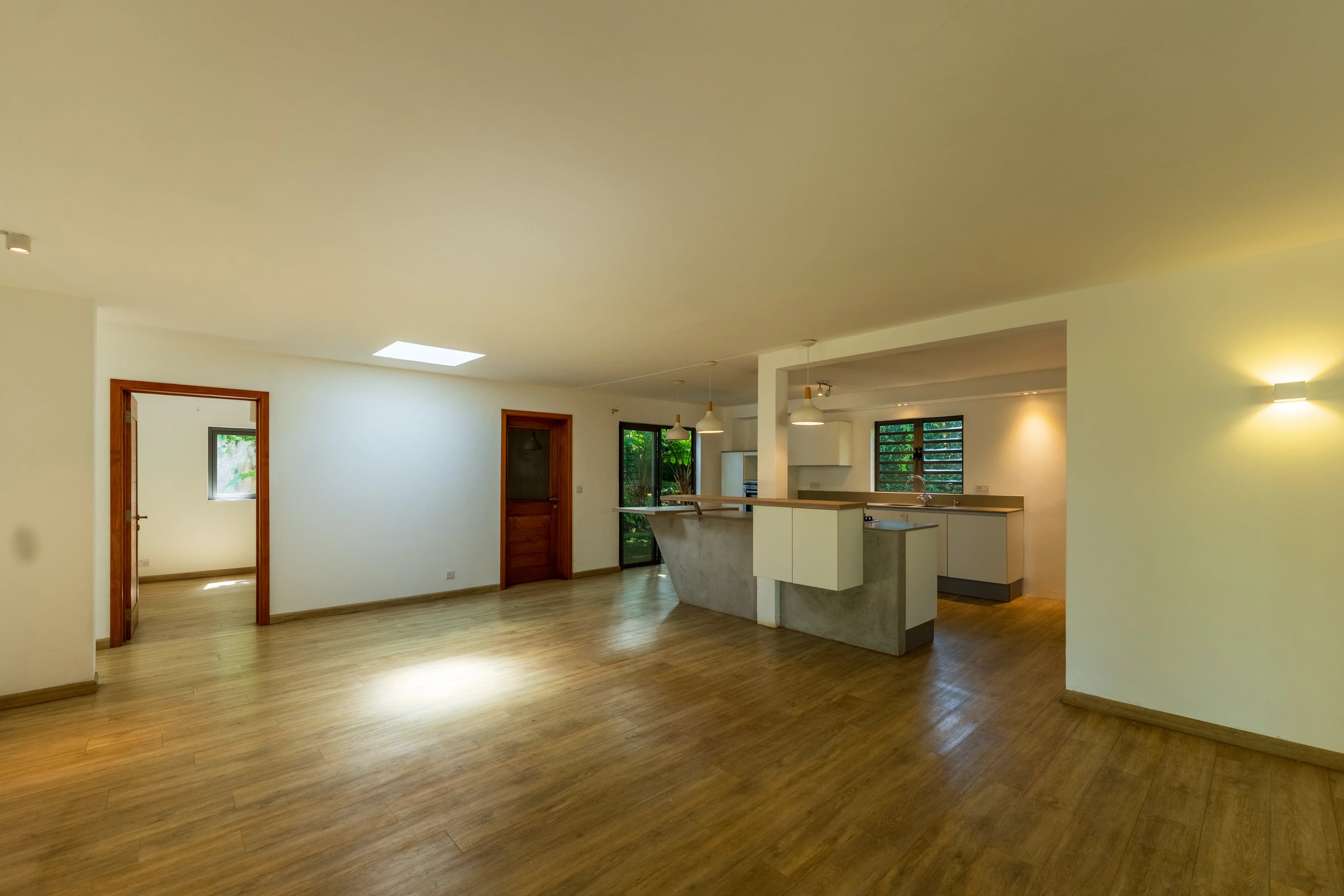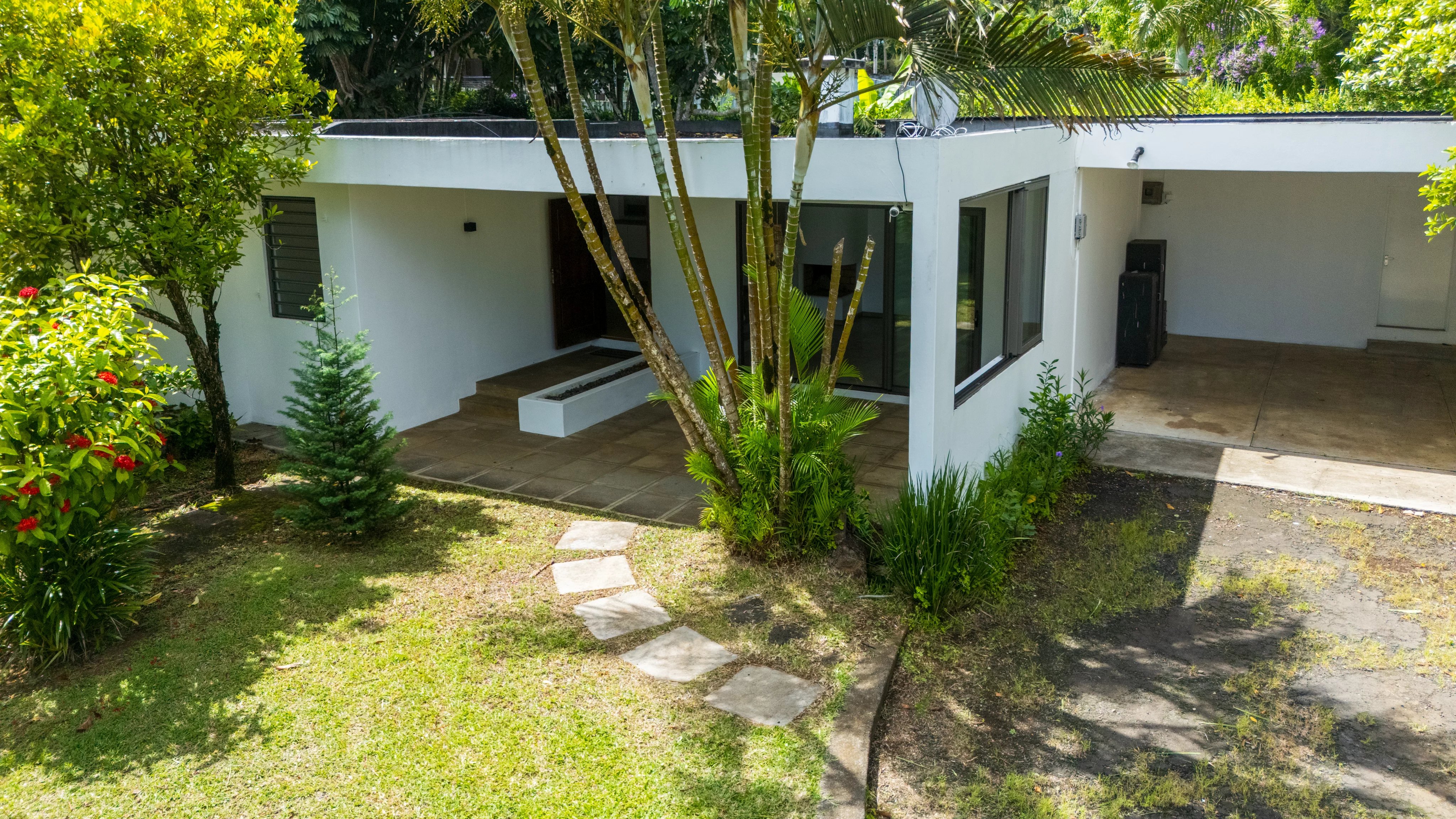 Situated in a peaceful and highly sought-after cul-de-sac in Floréal, this magnificent single-story home offers 278 square meters of living space on a flat 844 square meter plot. Fully renovated in 2019, the property impresses with its generous proportions and abundant natural light. It features three bedrooms, a study that can also serve as a playroom, and a wine cellar for enthusiasts. The modern kitchen flows seamlessly into the living area, creating a warm and inviting atmosphere. A fireplace, elegantly positioned between the lounge and dining room, enhances the space, making it perfect for cozy family moments and entertaining. Ideal for a family seeking comfort, tranquility, and close proximity to all the amenities Floréal has to offer, this home is surrounded by greenery and provides a harmonious and serene living environment. A double garage completes the property.
