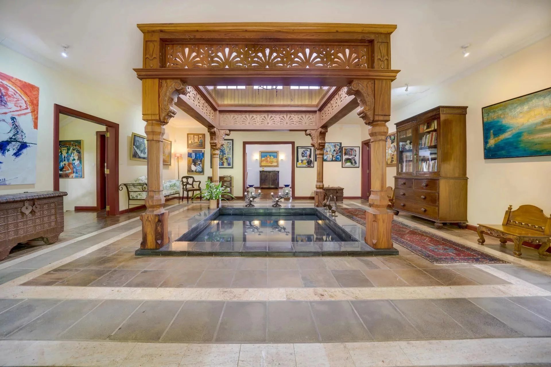 The entrance hall with its basin and woodwork is unique.