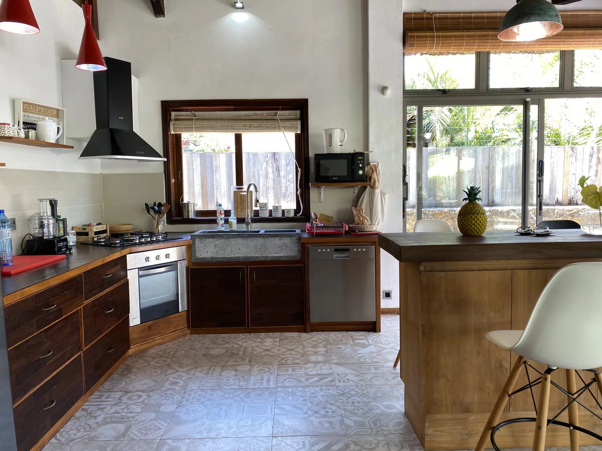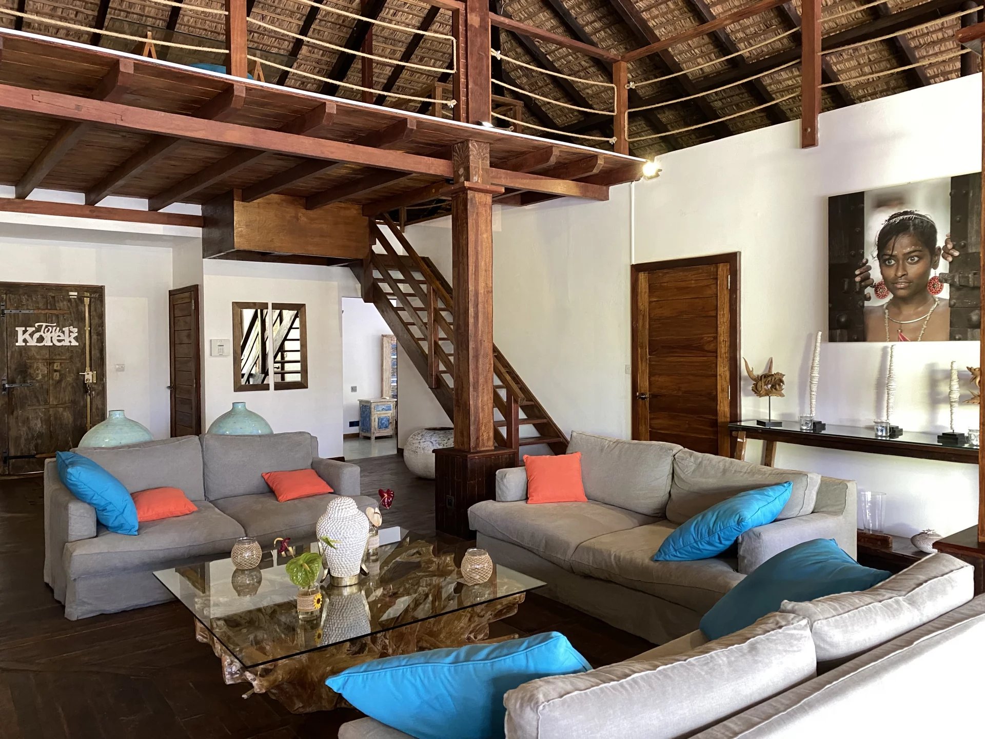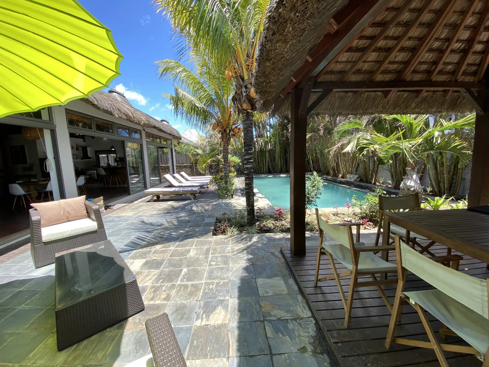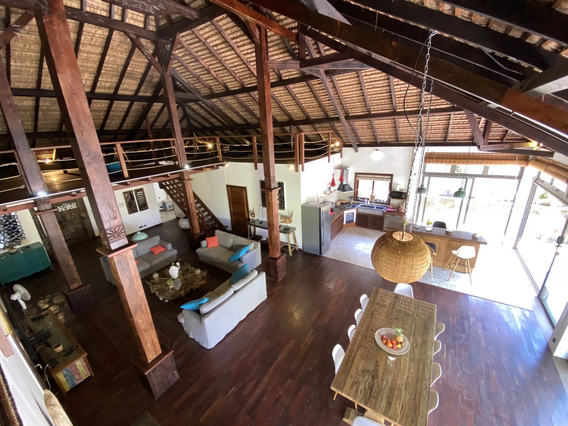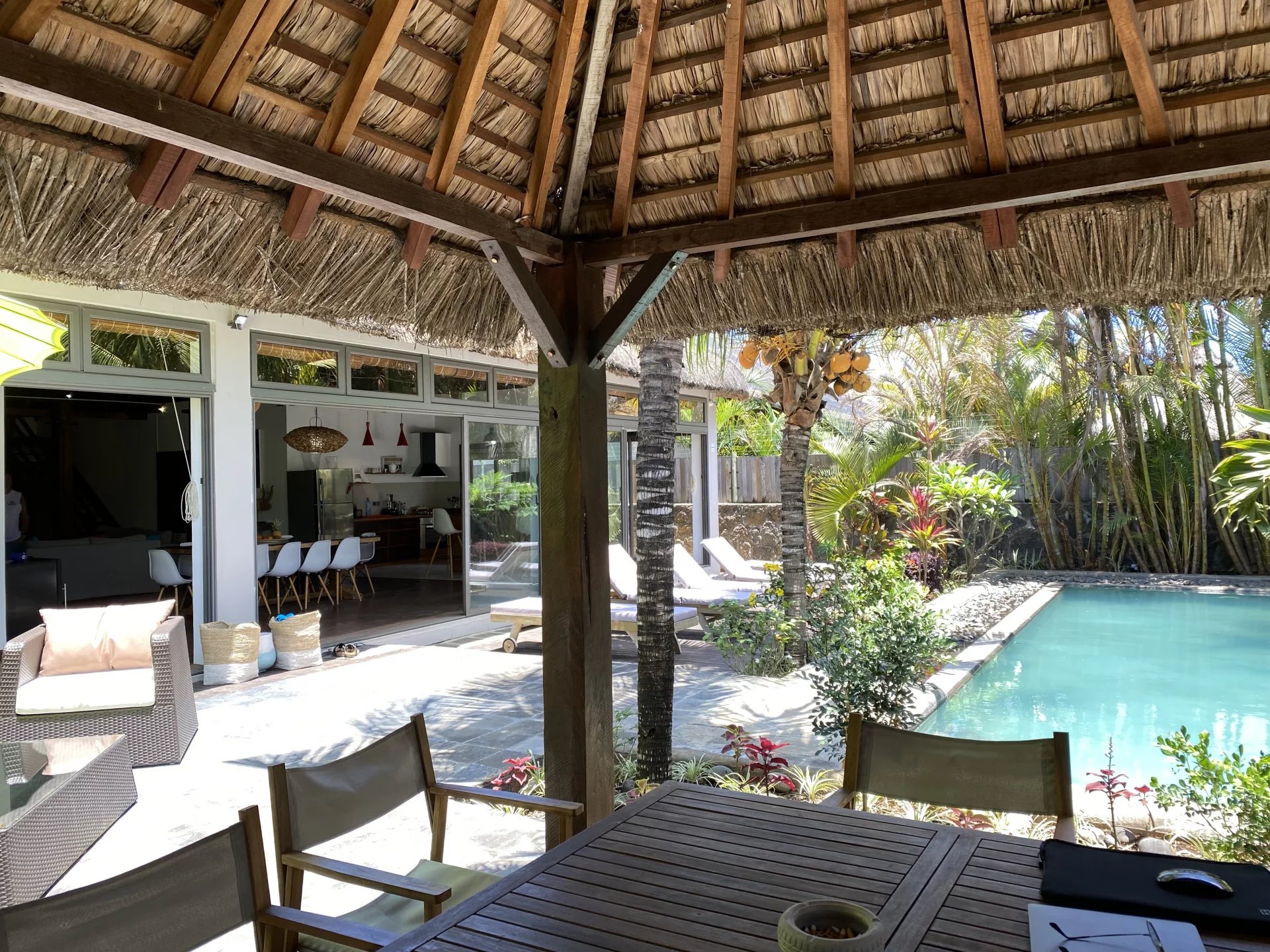In the heart of Pereybere, this 305 m² Balinese villa features a vast living and dining area with superb high ceilings under the "Joglo" roof.
