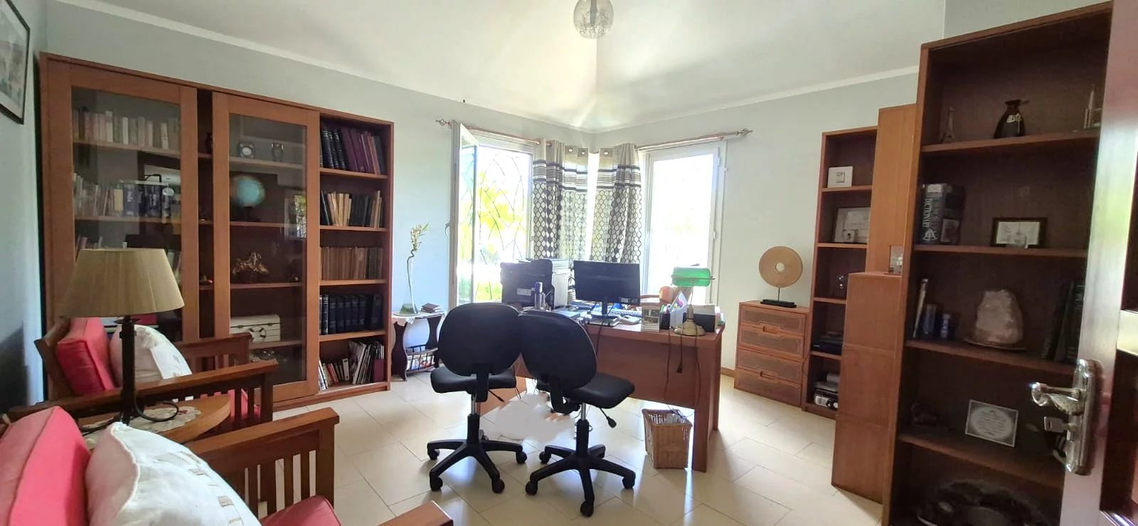 Surrounded by a beautifully established garden, the house has been thoughtfully designed to embrace effortless indoor-outdoor living. The main living areas open seamlessly onto the swimming pool and terrace, creating a bright and inviting environment ideal for both family life and entertaining.