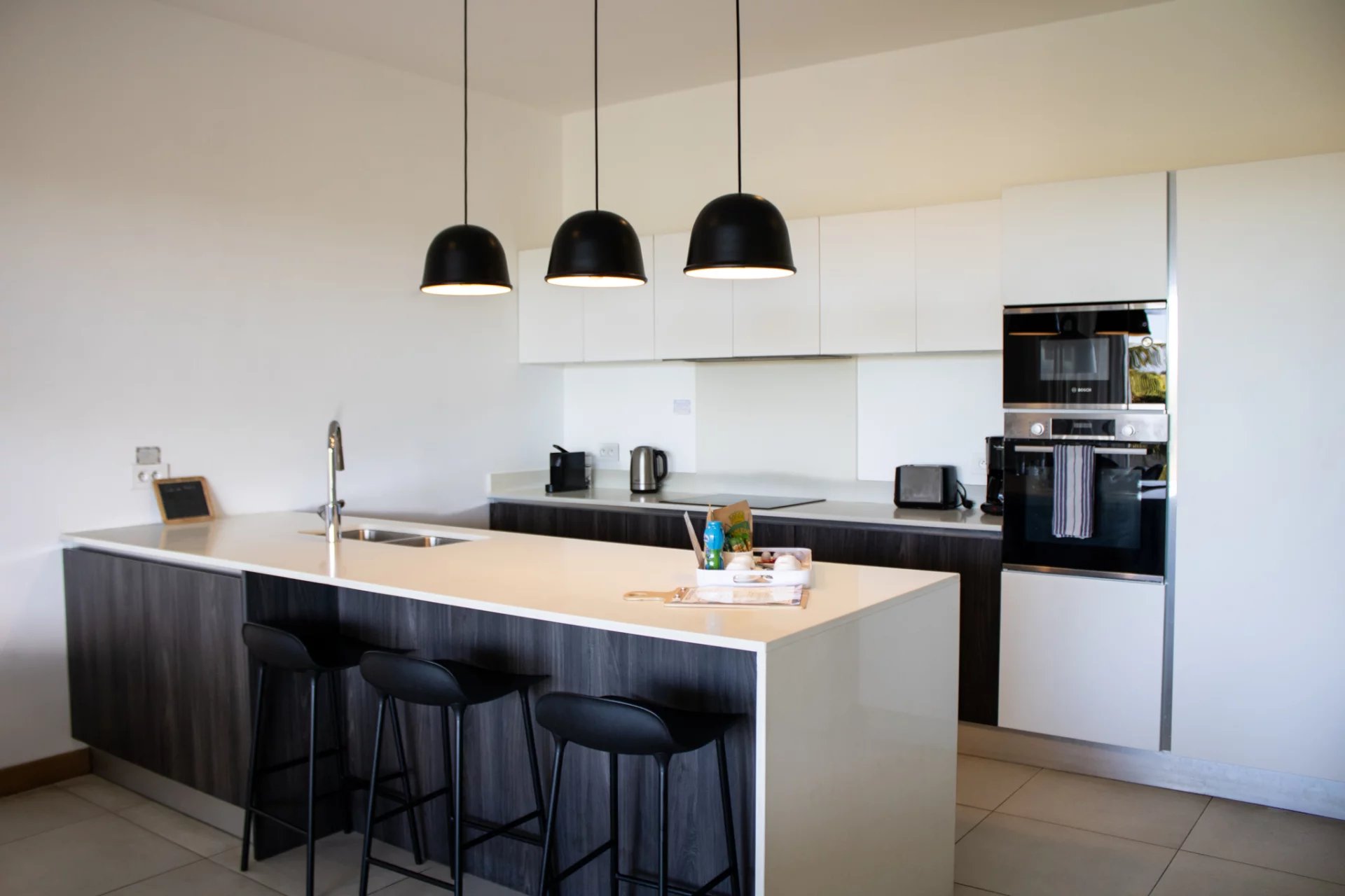 - An open kitchen and a bright living room with top-of-the-line finishes.