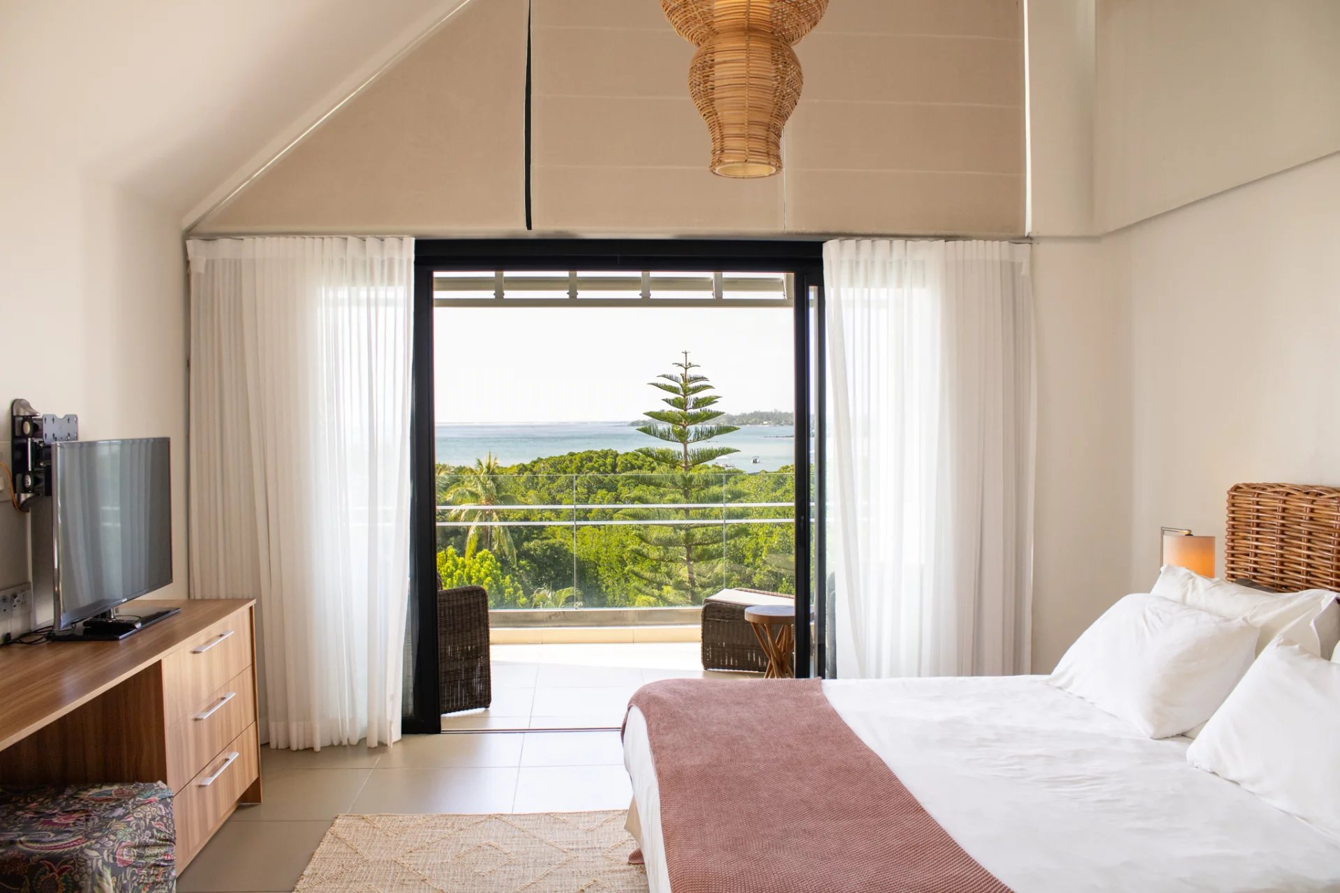 On the first floor, you'll find two bedrooms with private terraces and en suite bathrooms. On the second floor the large master bedroom benefits from a terrace offering 180-degree views of the lagoon.