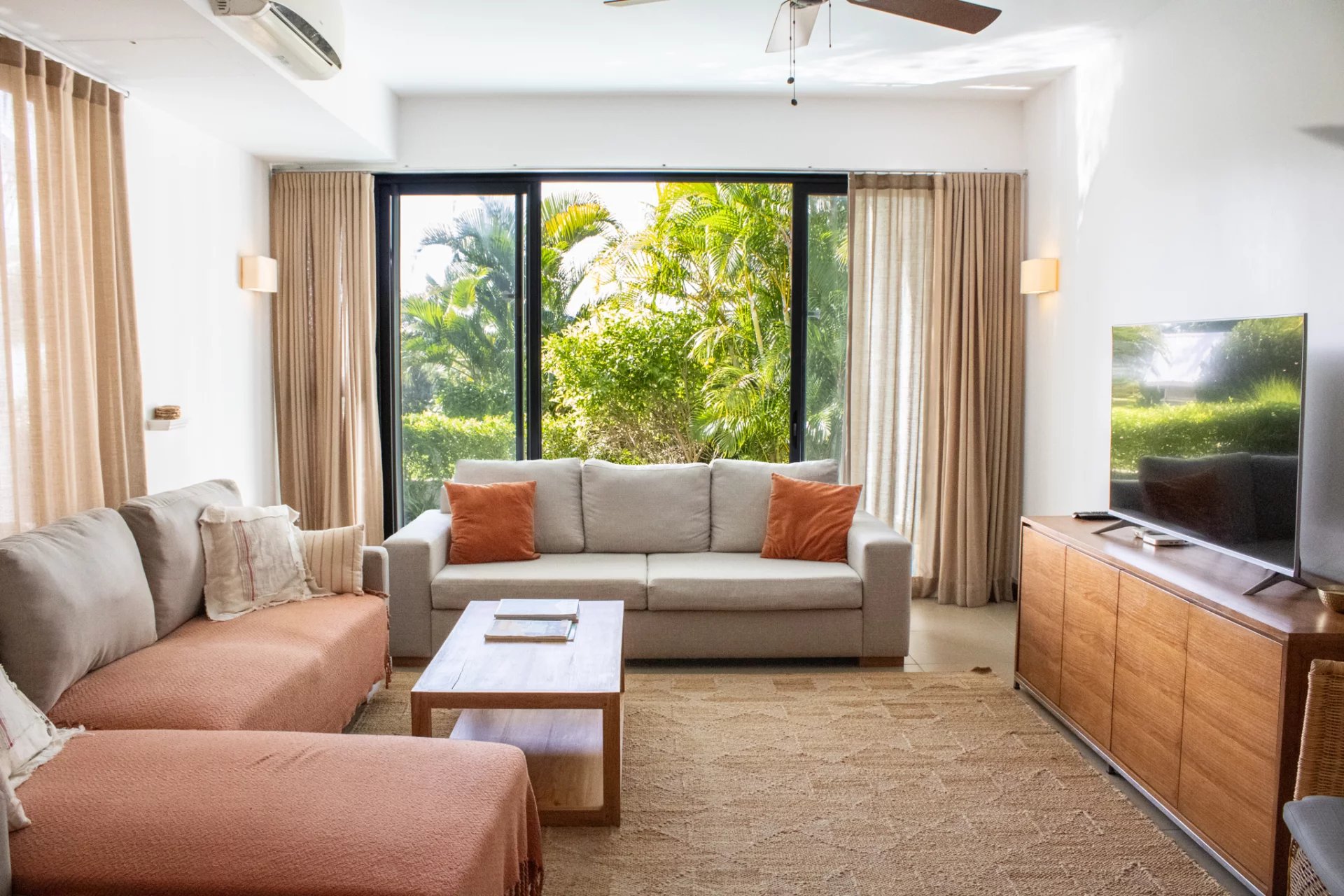 This townhouse offers spacious air-conditioned living areas and a kitchen opening onto the veranda.