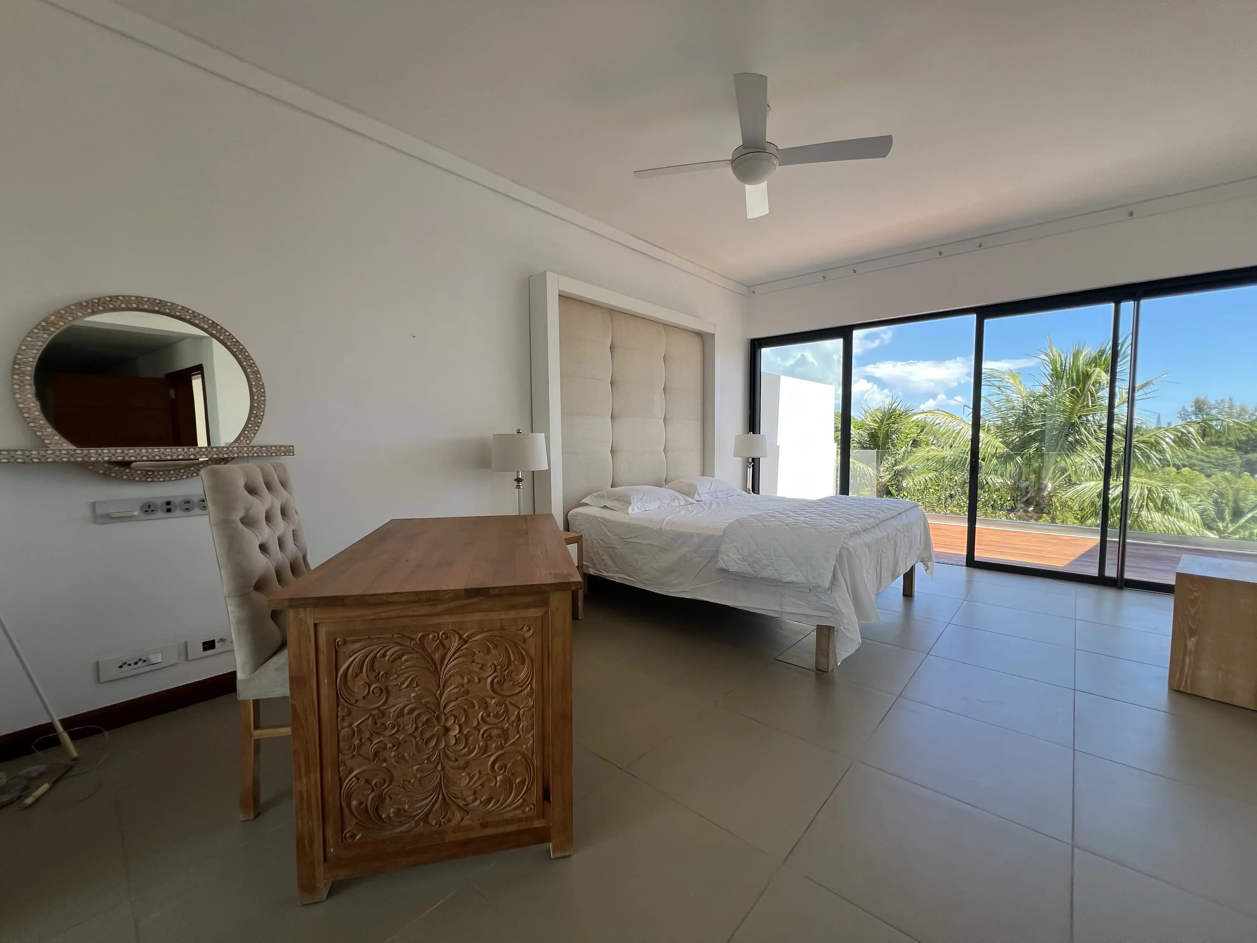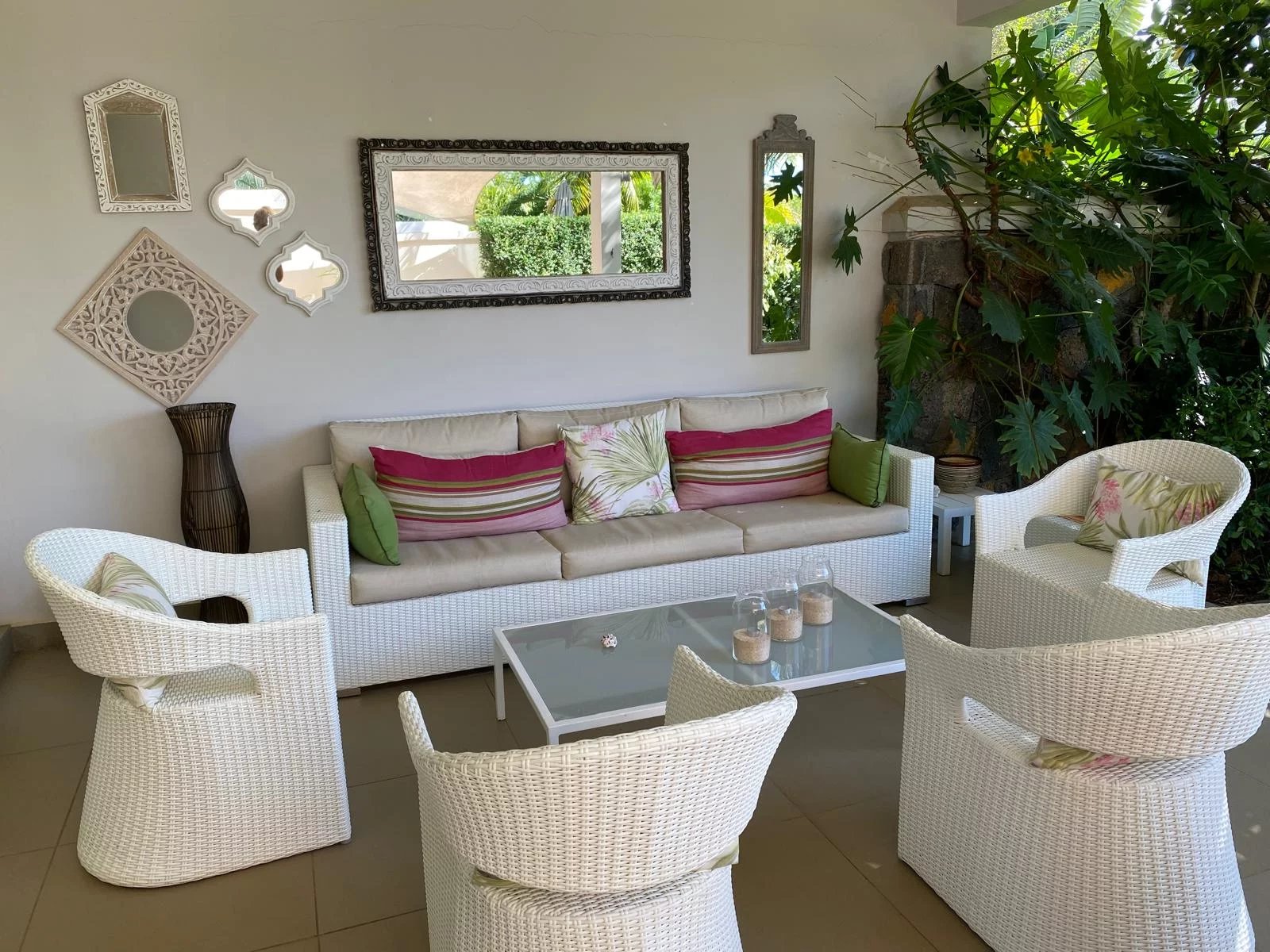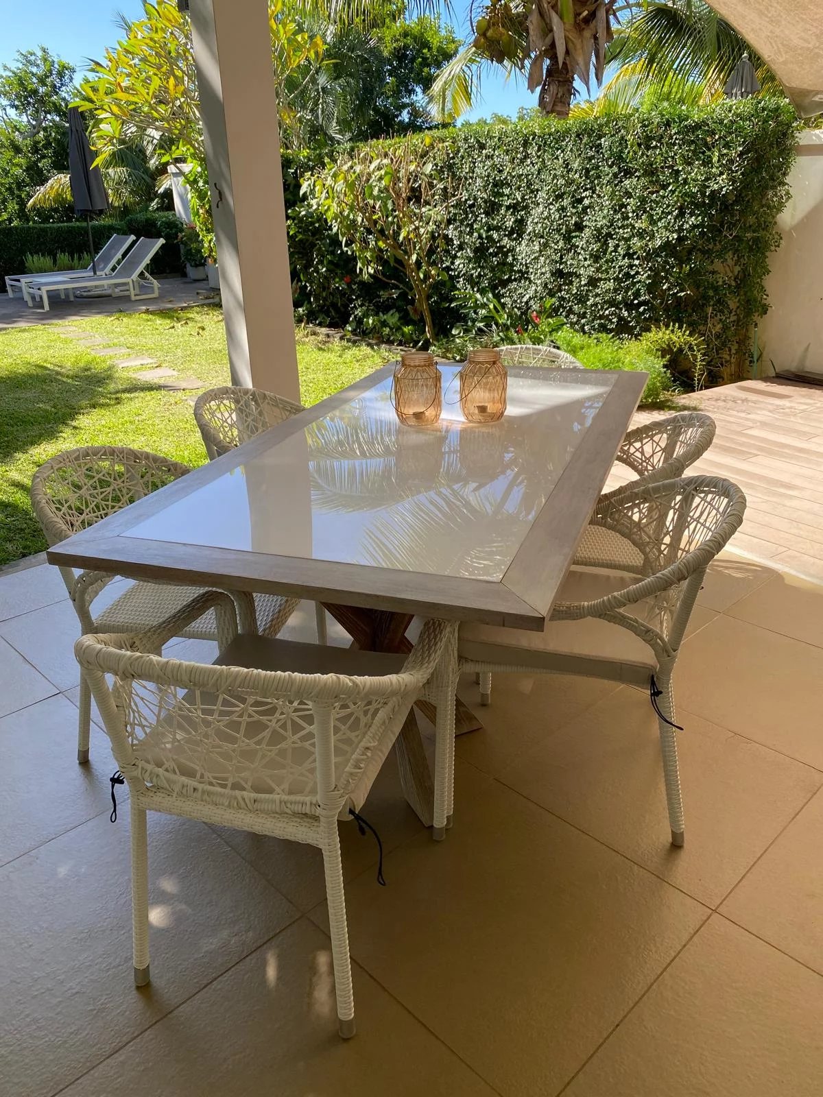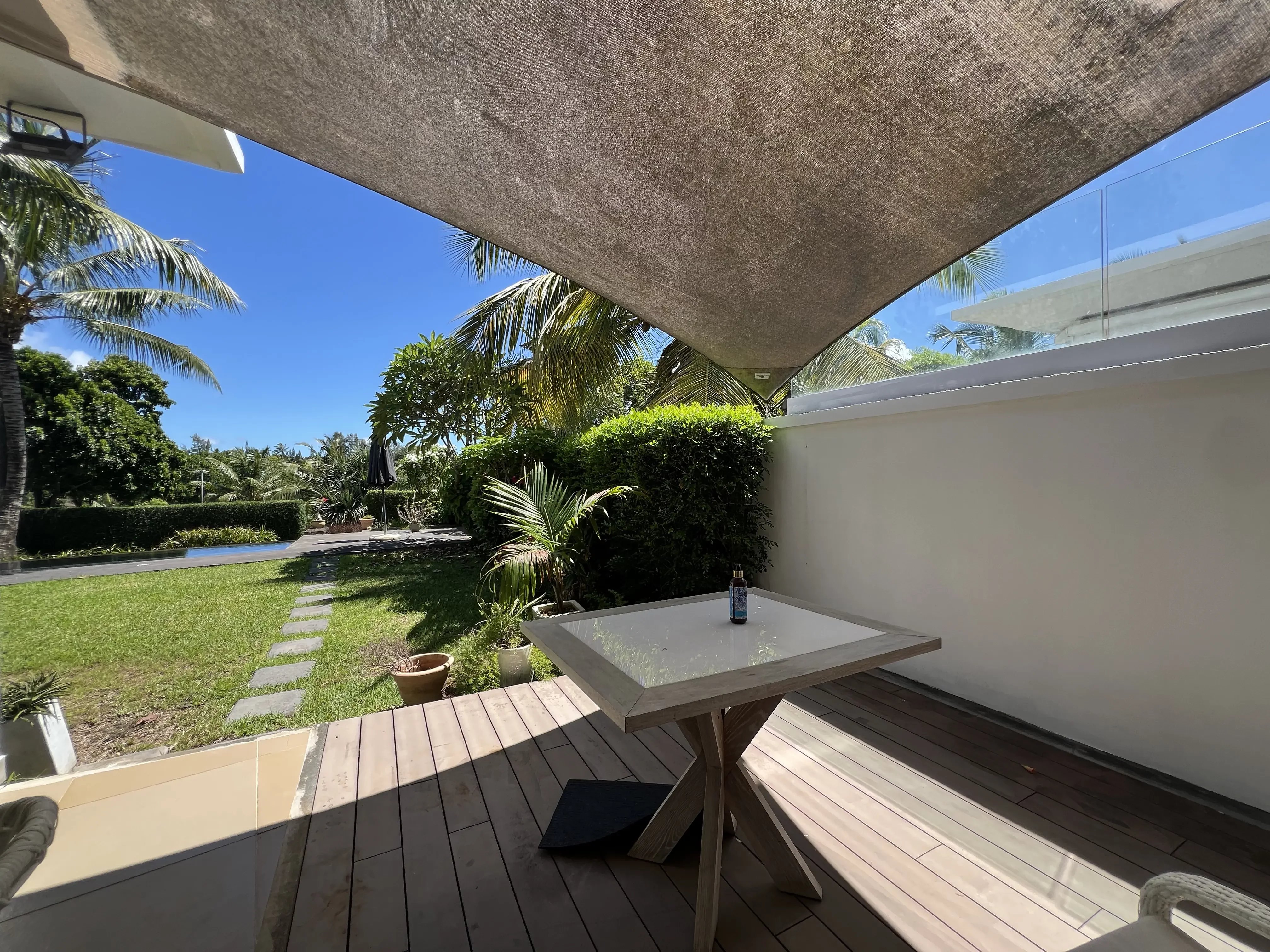 This stunning 328 m² villa offers total privacy, with no street or garden-facing views and no passing traffic nearby. Exceptionally bright and well-ventilated due to cross-ventilation and large windows, it boasts spectacular sunsets from the pool deck. The spacious living areas, large balconies, and generous covered terrace enable year-round outdoor living, sheltered from rain and wind. The villa features a cathedral-style living room, a modern open-plan kitchen with a dining area, four en-suite bedrooms including a luxurious master suite with panoramic terraces, and a carport with storage space. The beautifully landscaped garden and the large, inviting pool create an ideal setting for relaxation and entertaining. Ideally located within walking distance of the Azuri village center—shops, restaurants, and beach—this property combines high-end finishes, comfort, and convenience. Recently renovated, the villa includes roof waterproofing with a 10-year guarantee, a new solar water heater, and modern air conditioning units, making it move-in ready and perfectly maintained.